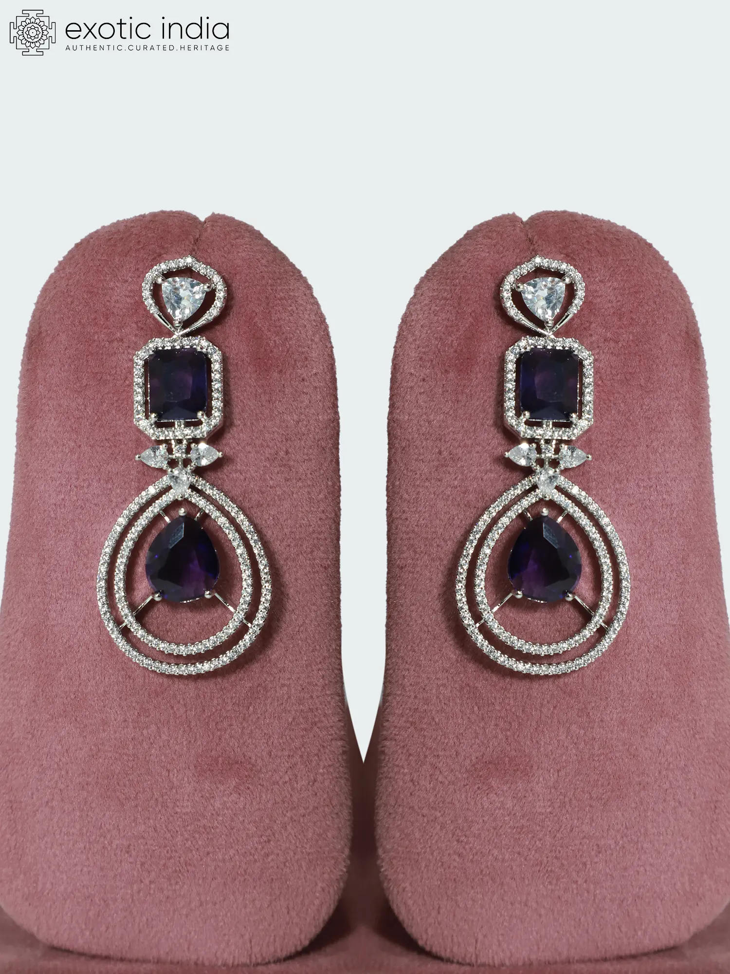 Stone Studded Beautiful Design American Diamond Necklace Set With Earrings