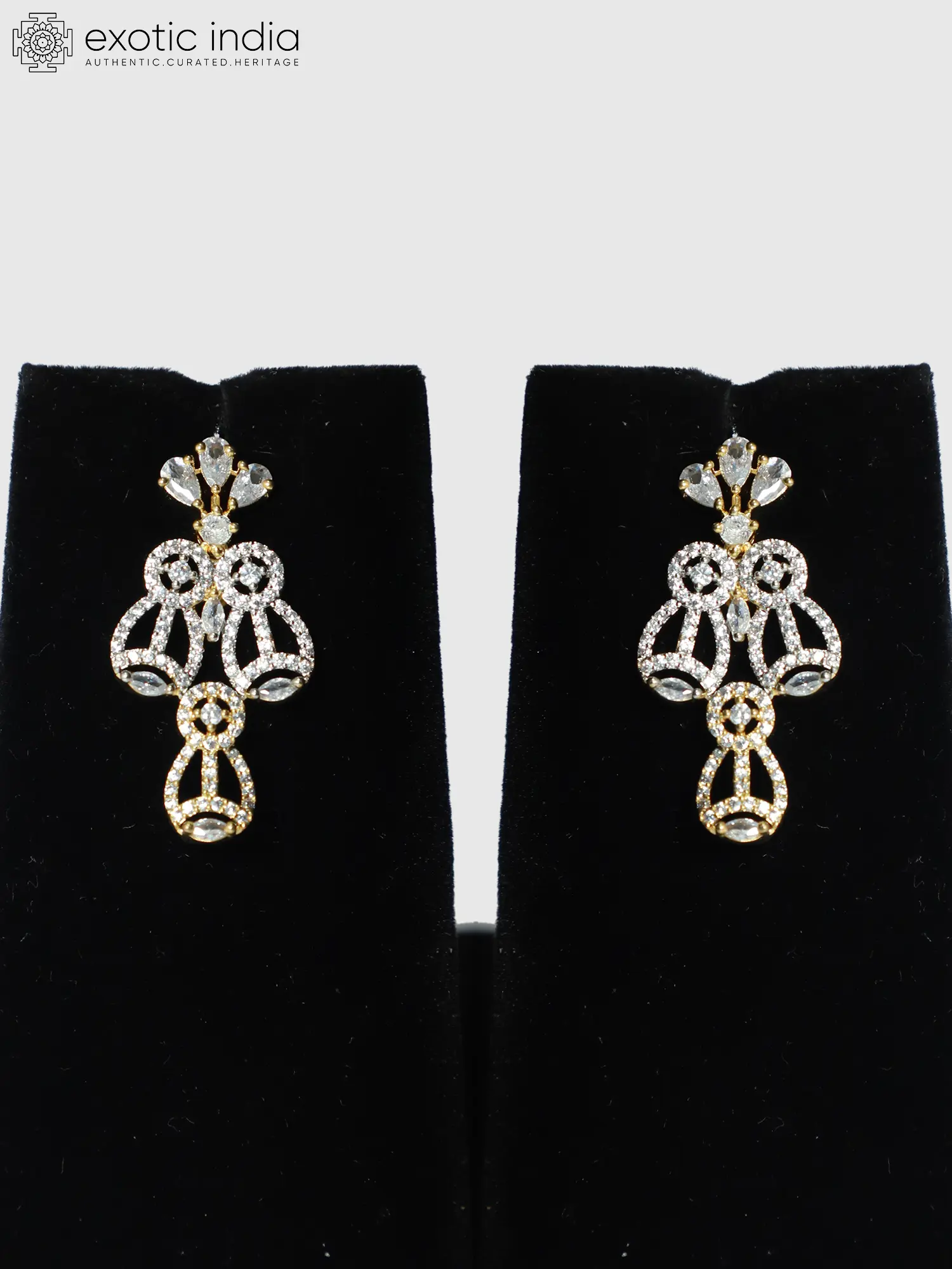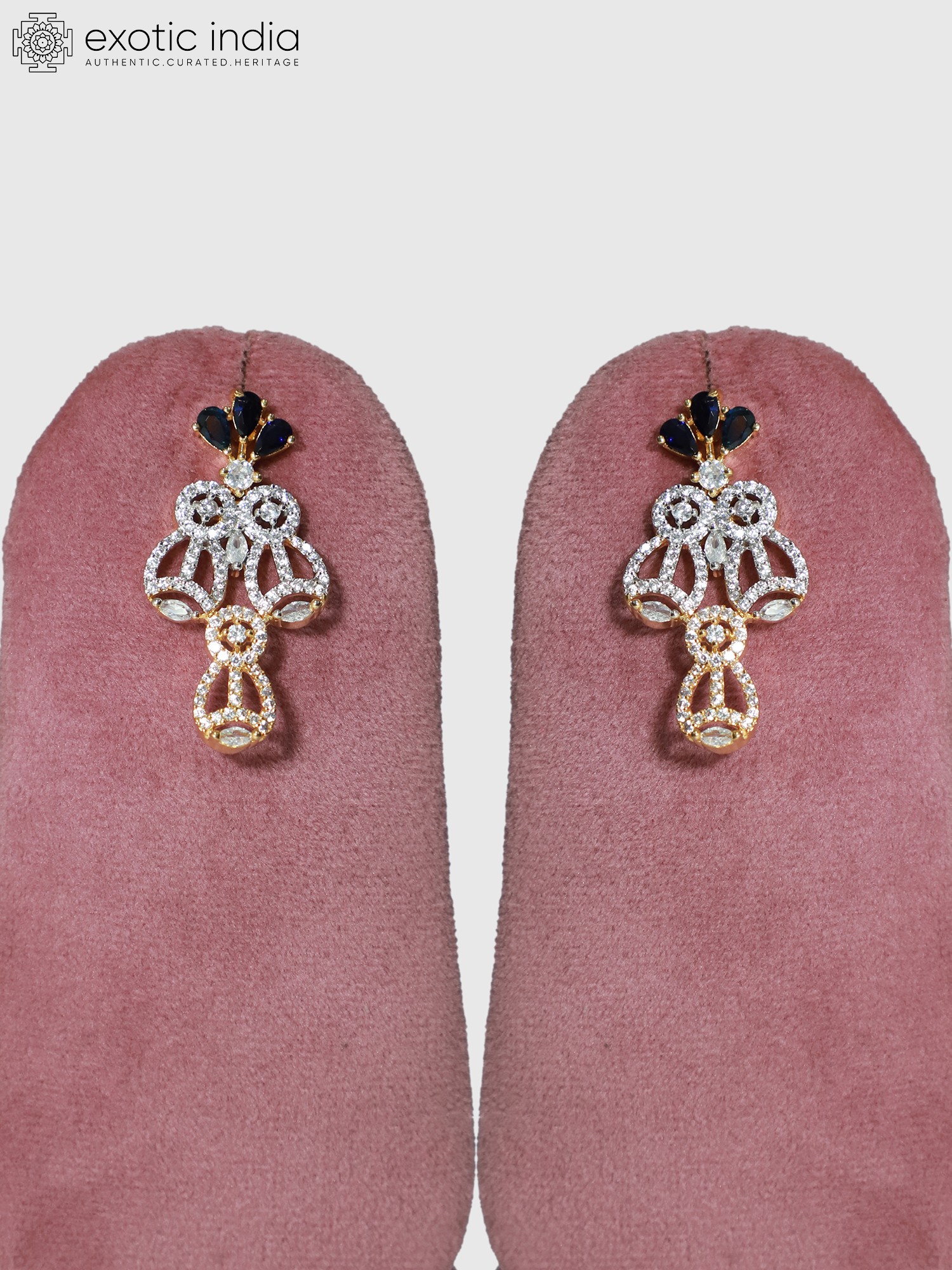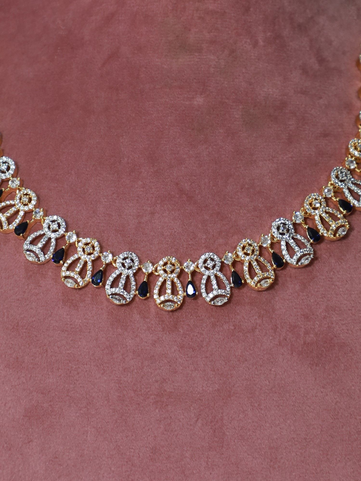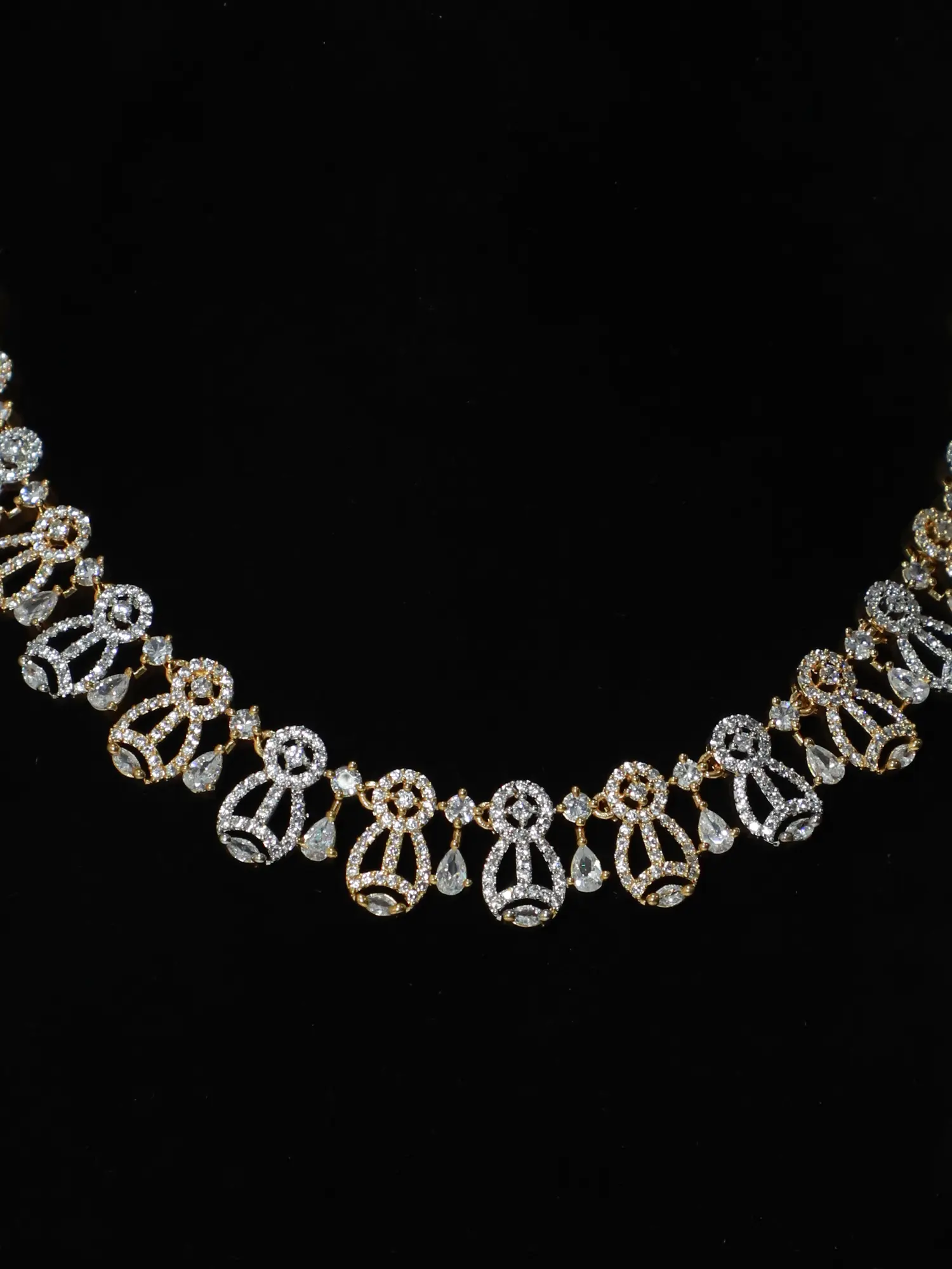 Attractive Floral Design Stone Studded American Diamond Necklace Set With Earrings