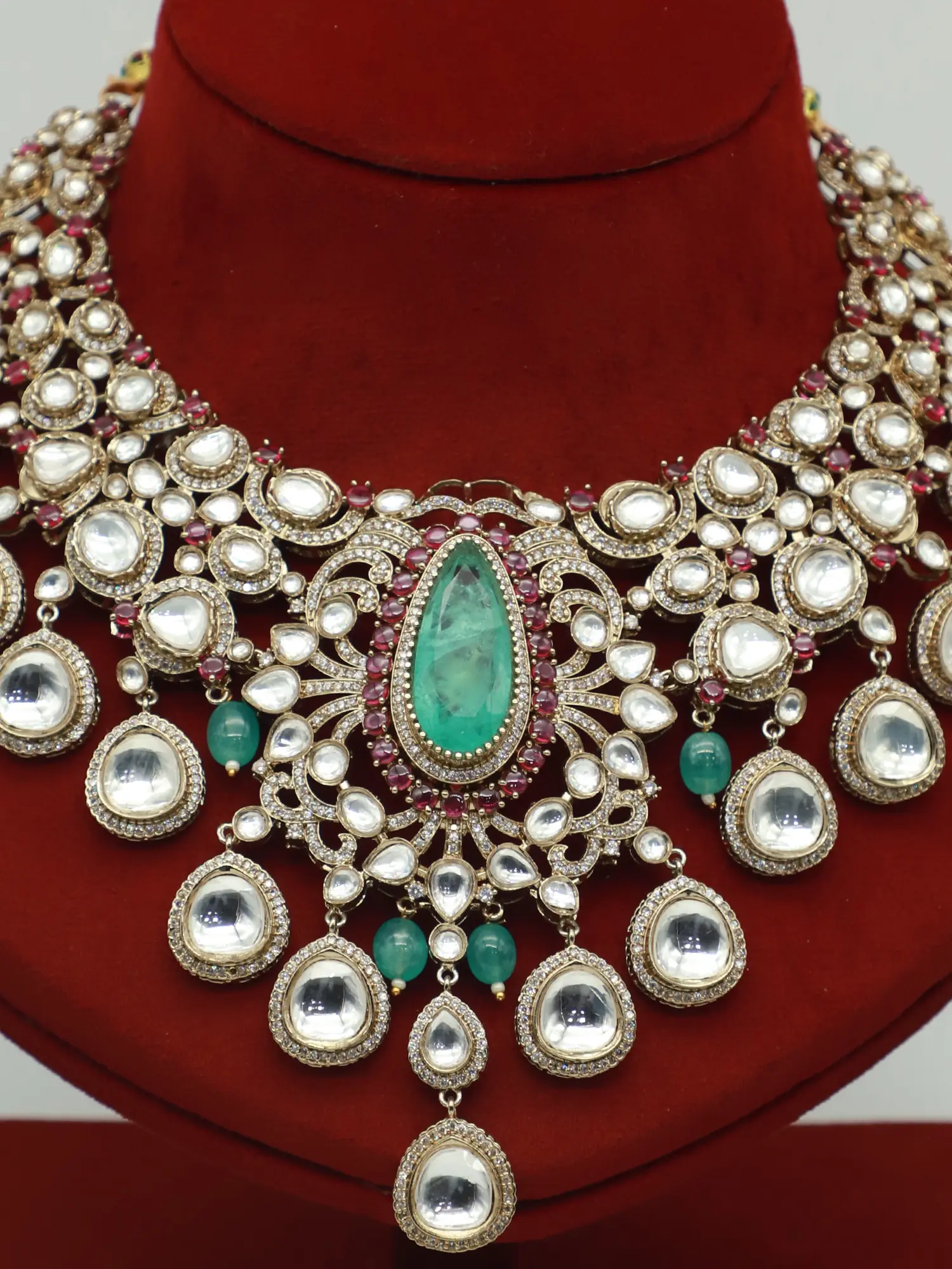Statement Necklace & Earrings with Moissanite and Kundan Work