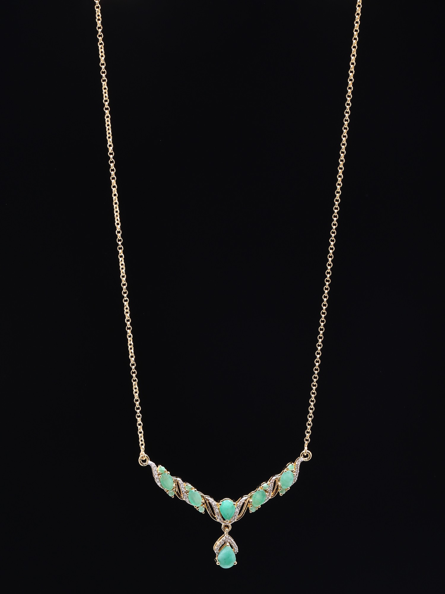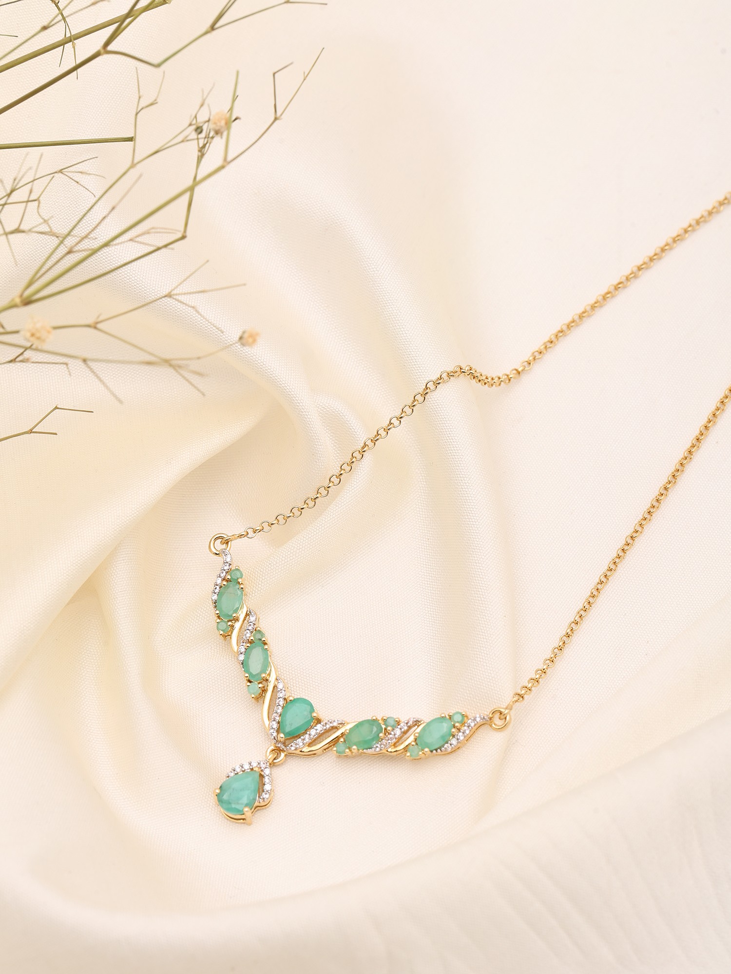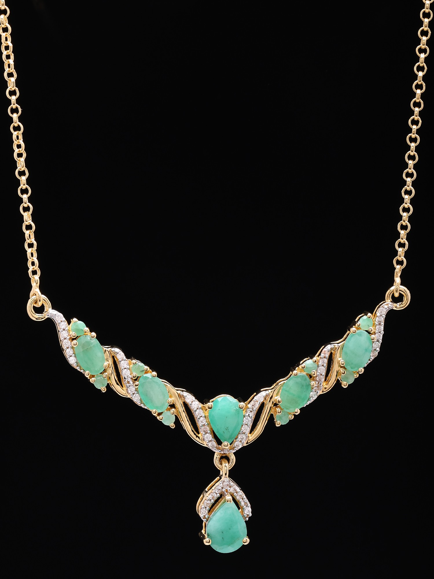 The necklace showcases a central teardrop emerald pendant for a focal point.