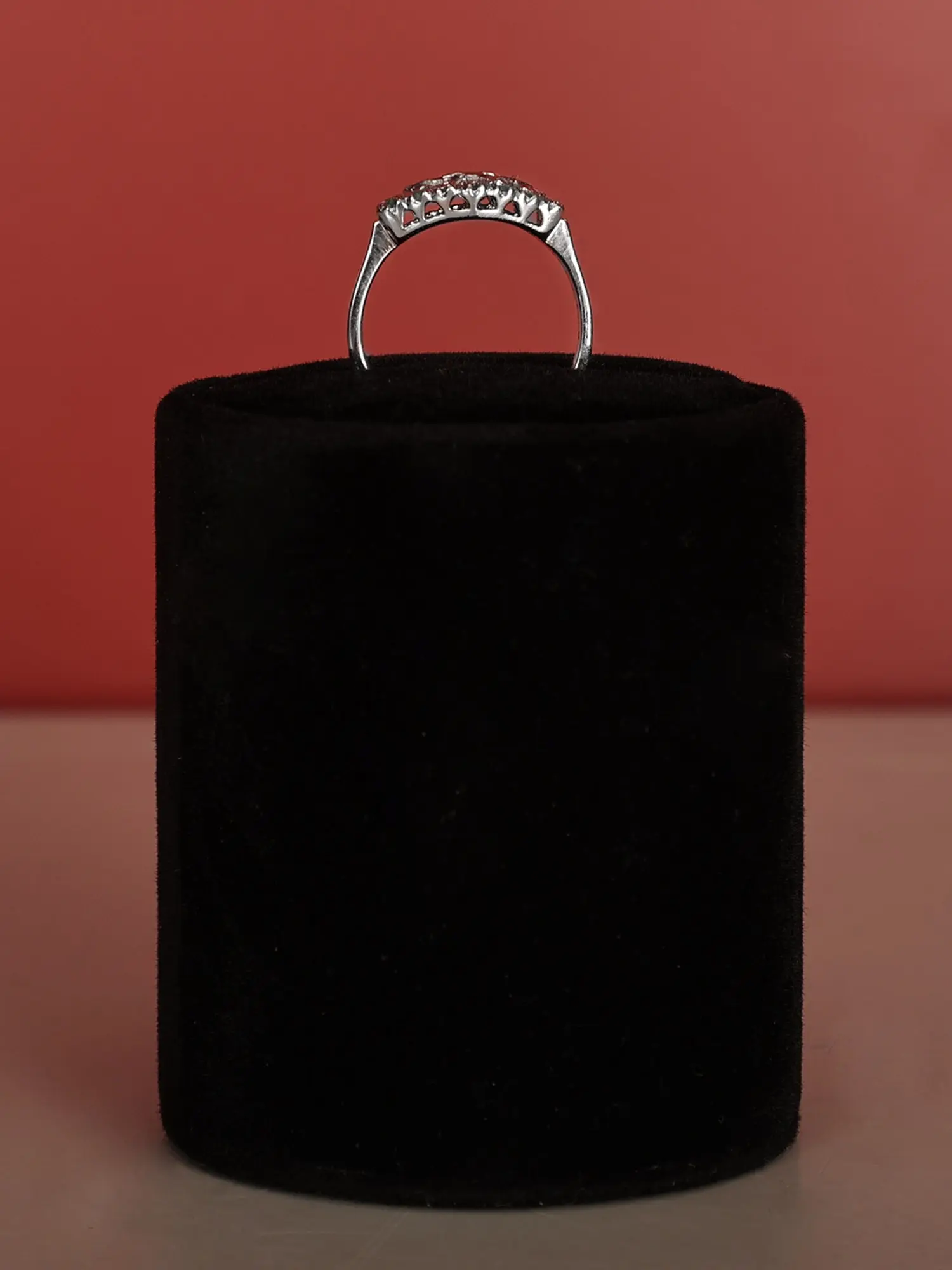 The heart of this ring lies in its stunning emerald and ruby gemstones. Deep green emeralds, known for their captivating brilliance and association with growth and renewal, flank a trio of lustrous rubies. These rich red rubies symbolize passion, energy, and vitality. Together, these gemstones create a harmonious blend of colors that exude both sophistication and vibrancy. The contrast between the cool greens and warm reds enhances their individual beauty and creates a visual feast for the eyes. The expertly crafted setting allows the gems to shine with maximum brilliance, showcasing their natural beauty and luster. This beautiful interplay of color and light guarantees that this ring will capture your attention and elicit compliments wherever you go.