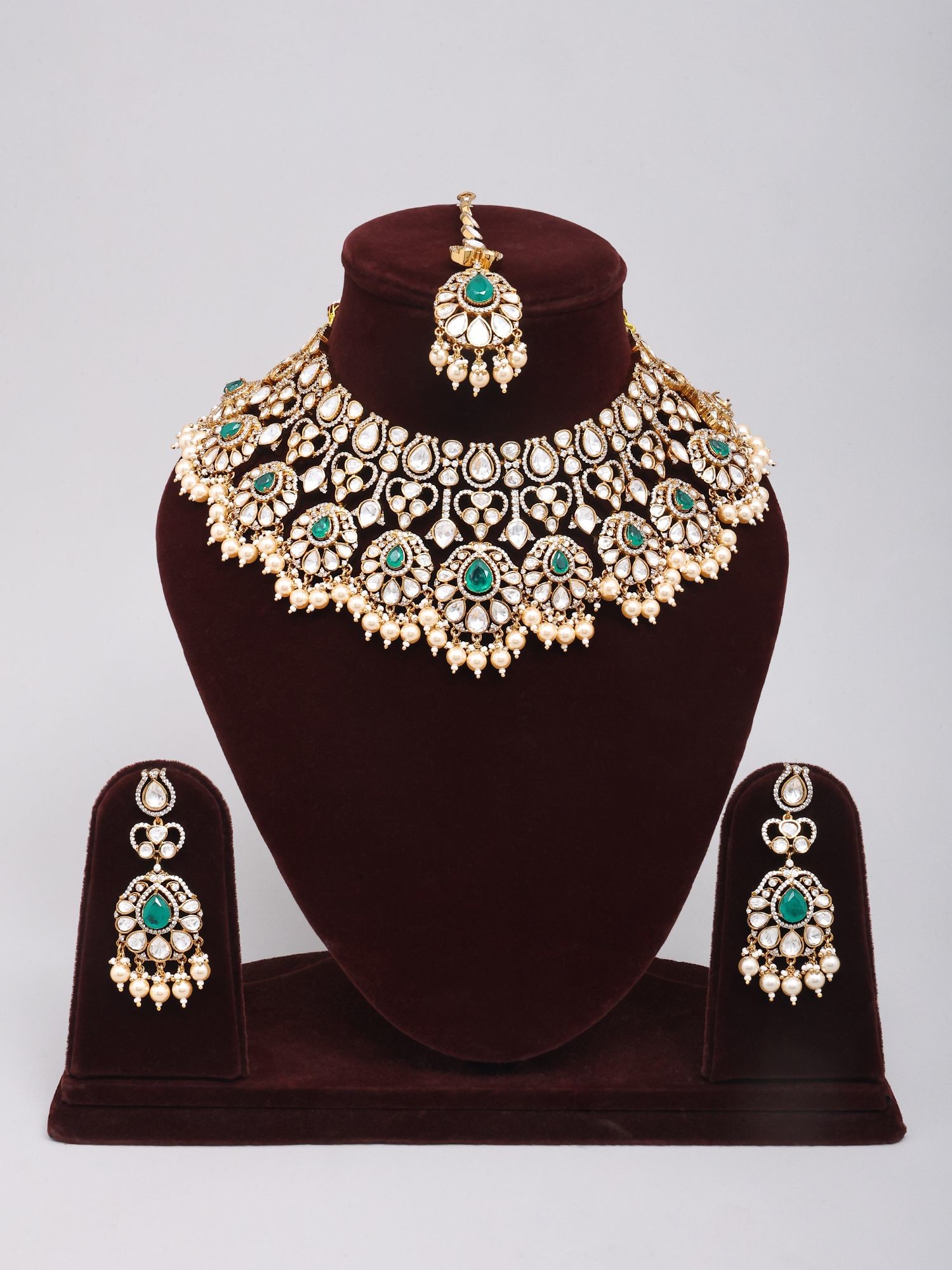 Complete Bridal Choker Set: Pear Shape Polki Necklace, Earrings, and Maang Tikka