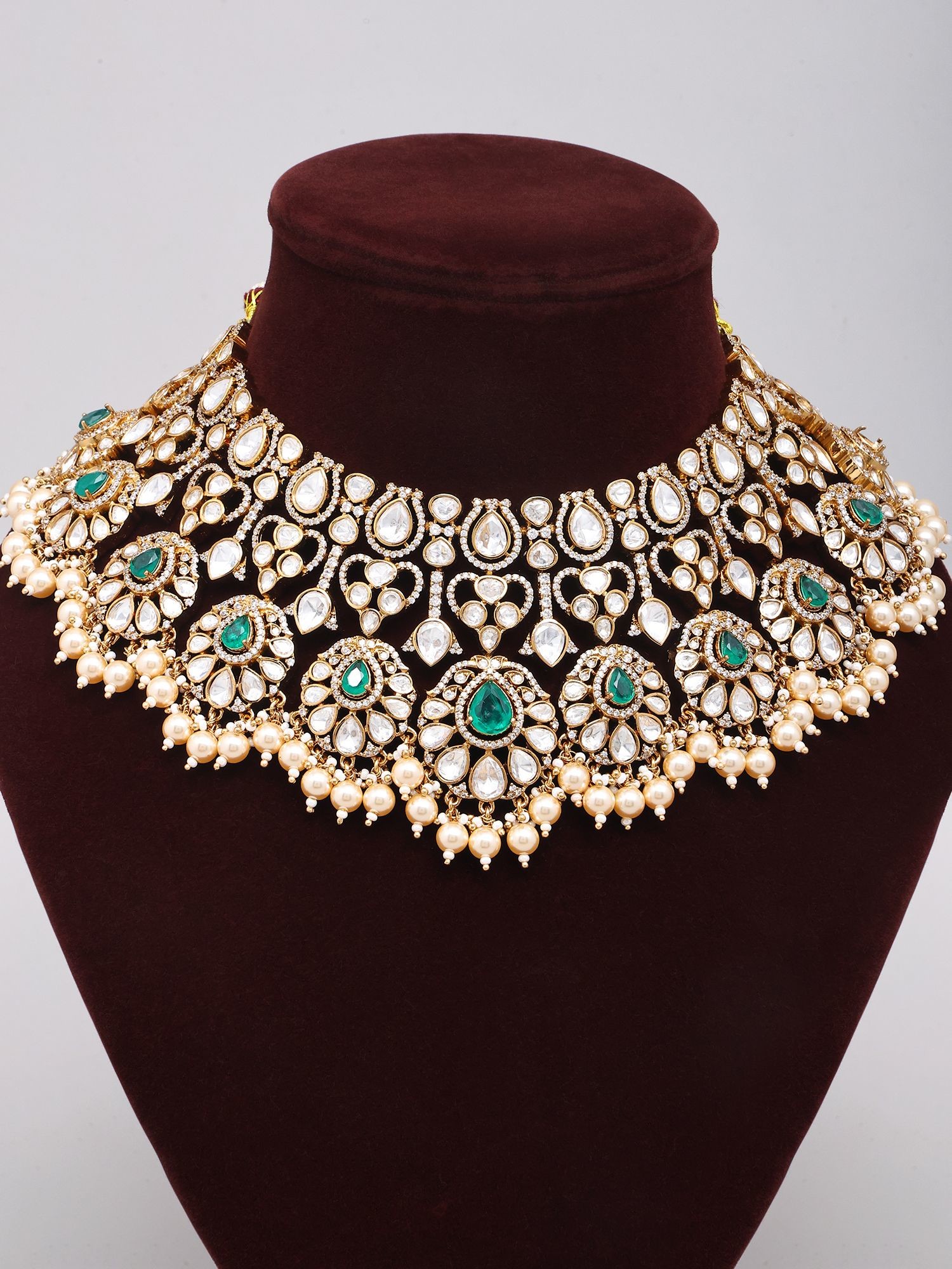 Complete Bridal Polki Jewelry Set with Choker, Haar, Sheeshpatti and Ring