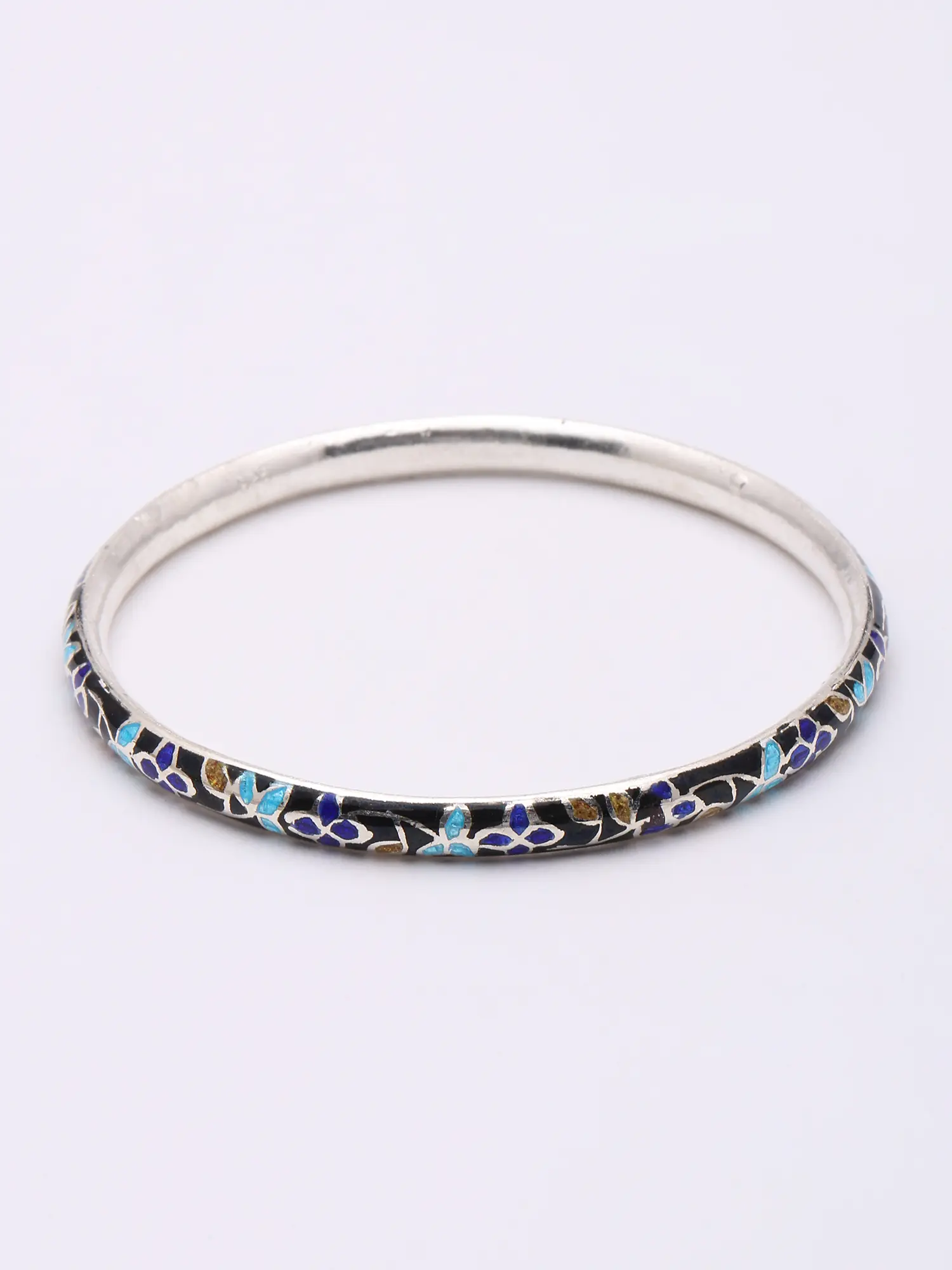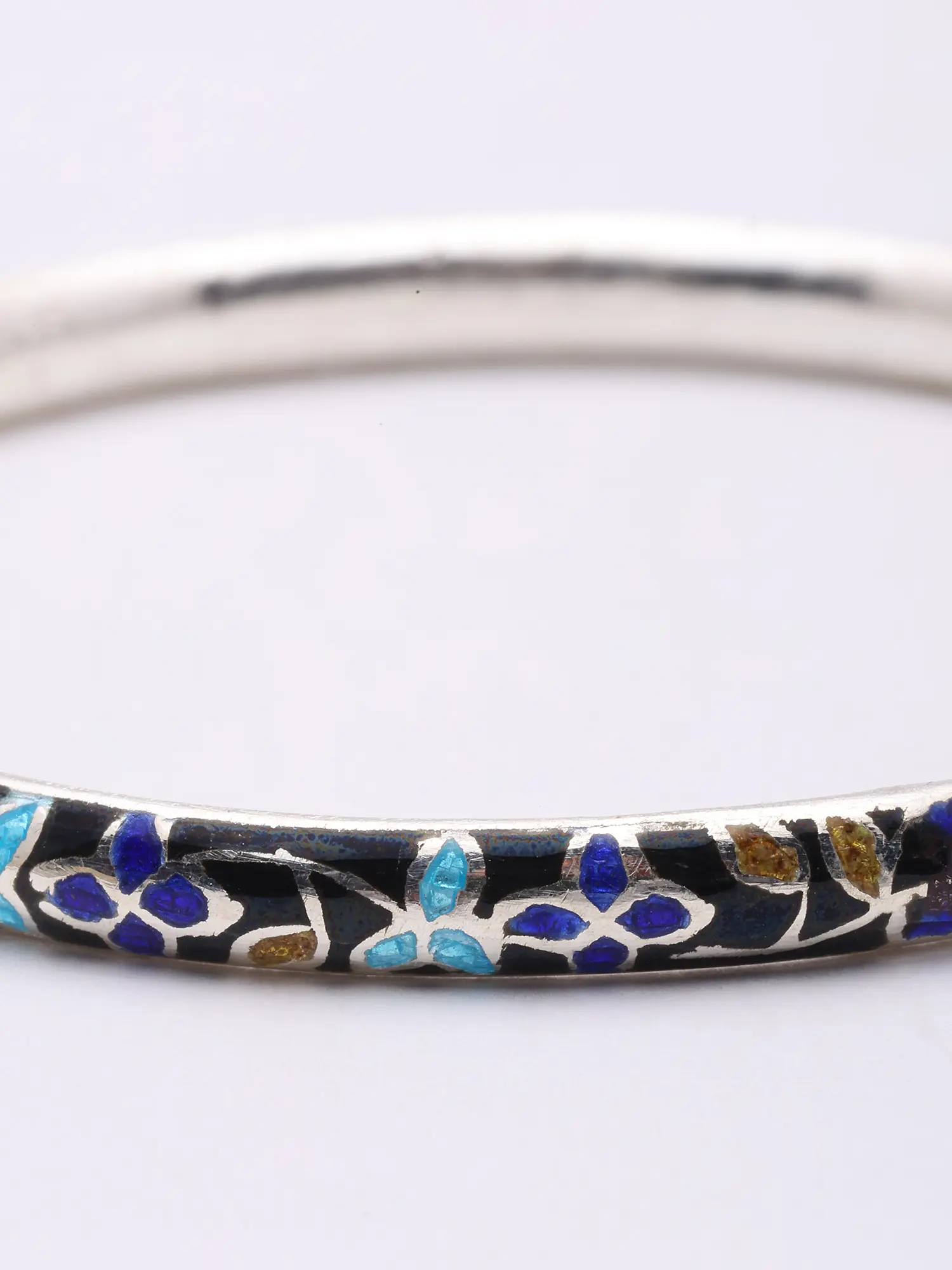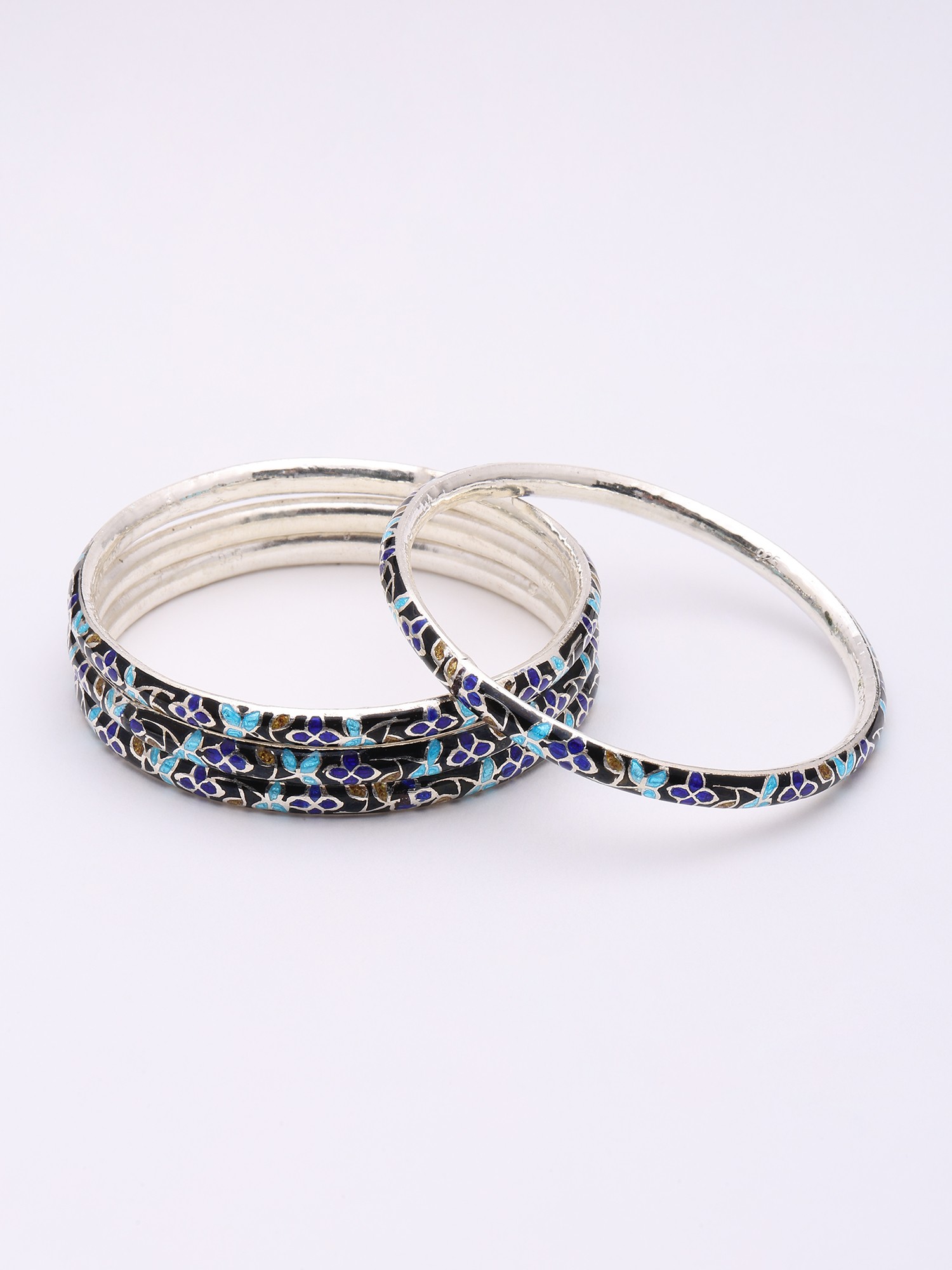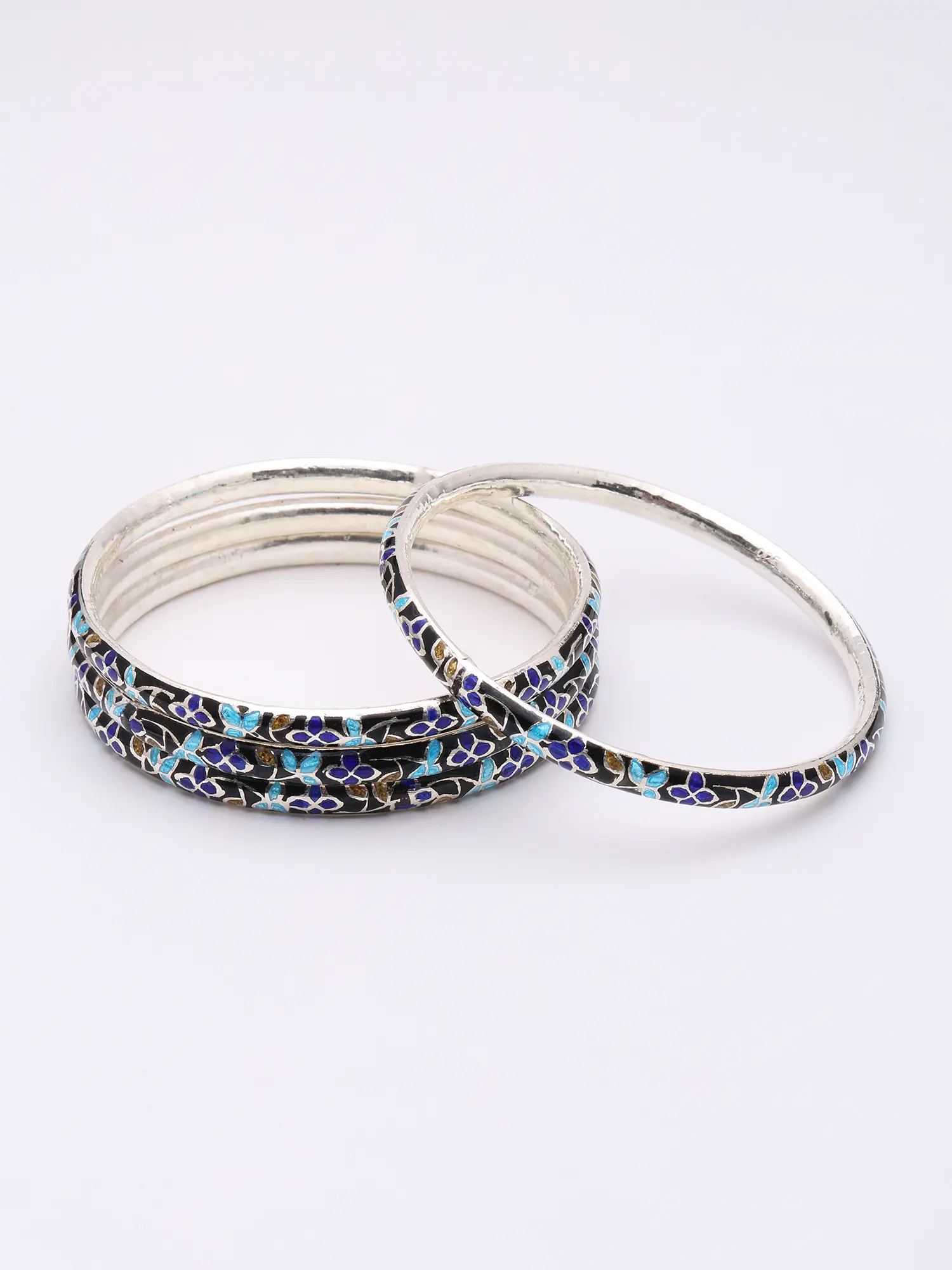 Enamel Floral Sterling Silver Bangles (Set of 4)