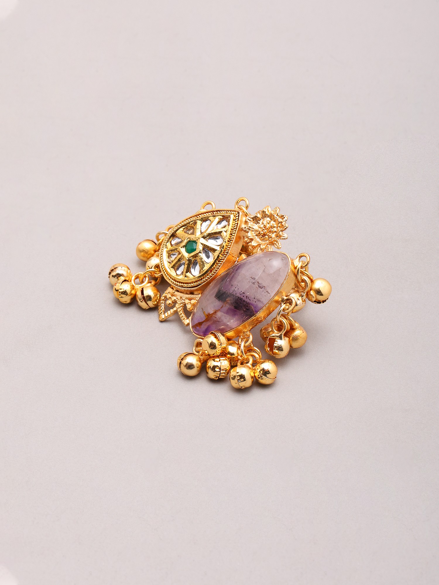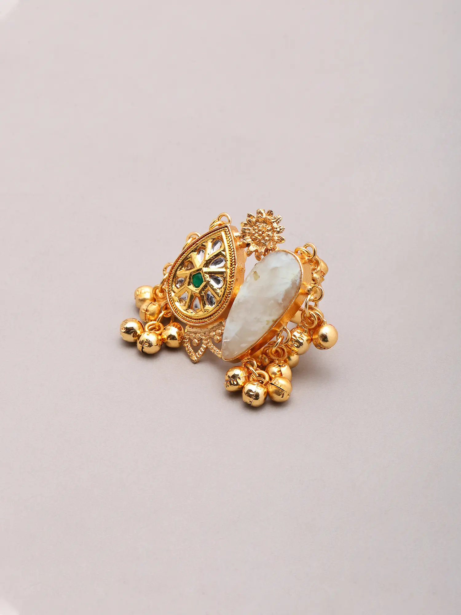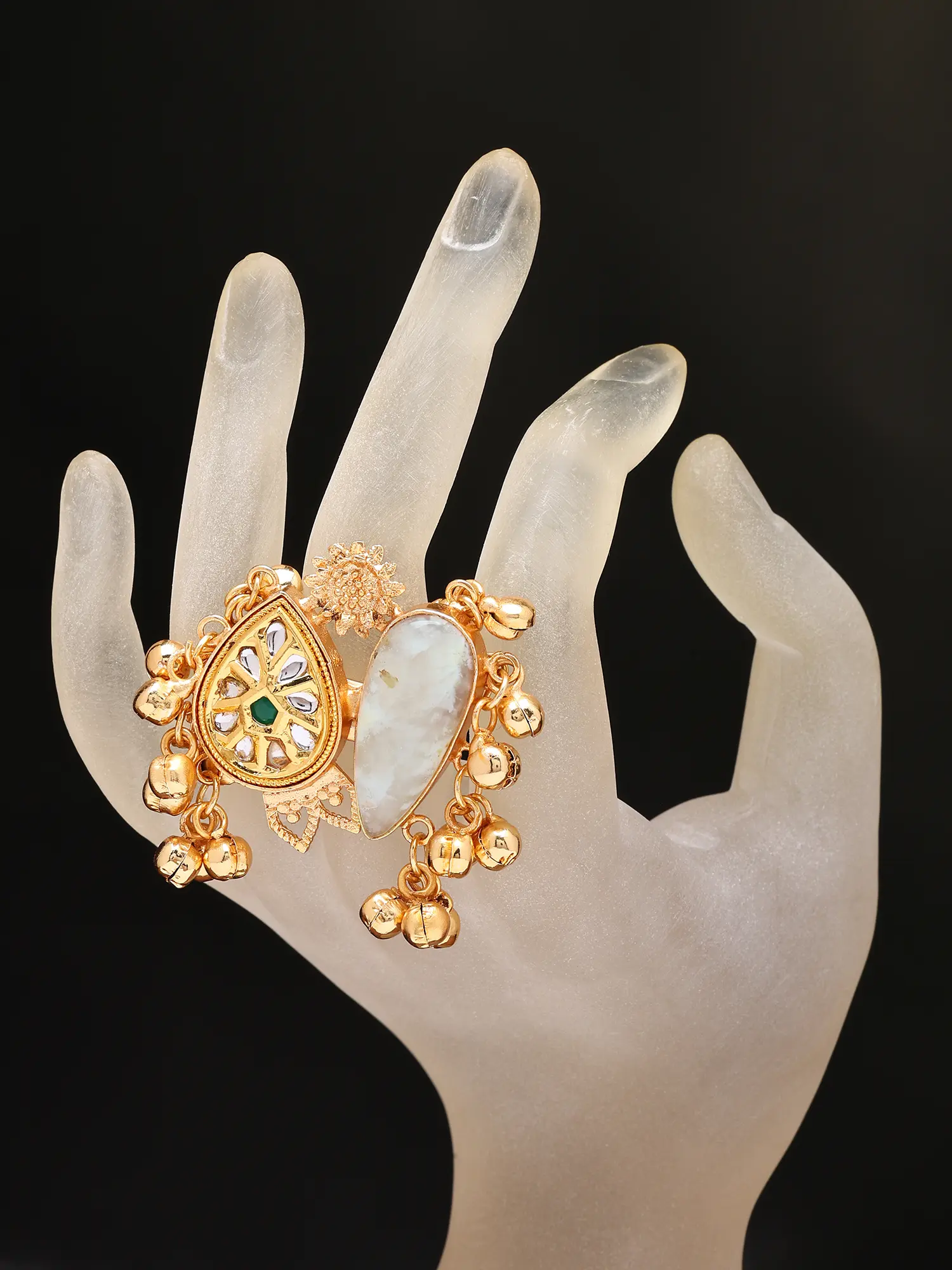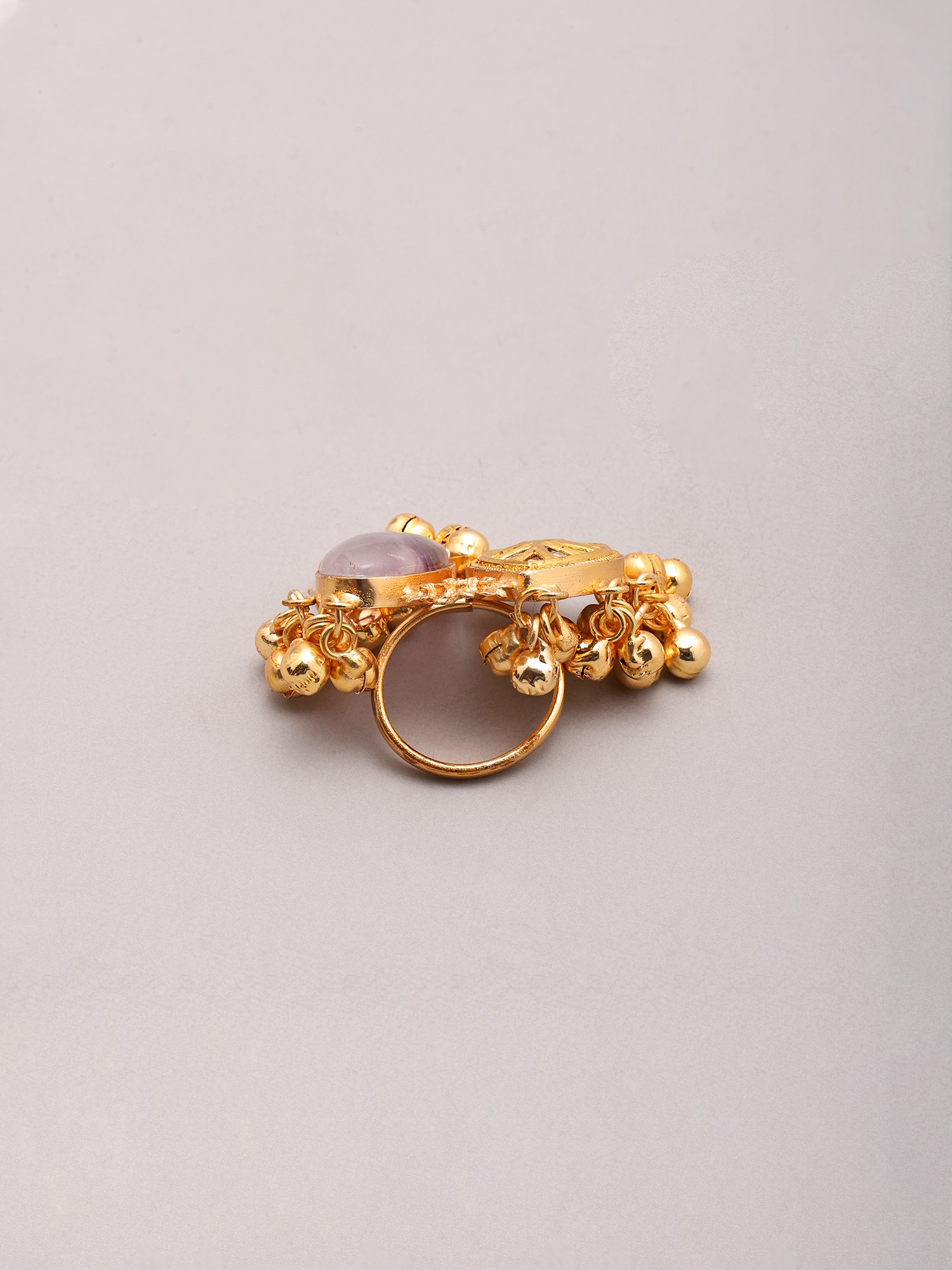 Ethnic Stone Studded Statement Ring with Ghungroo Cluster