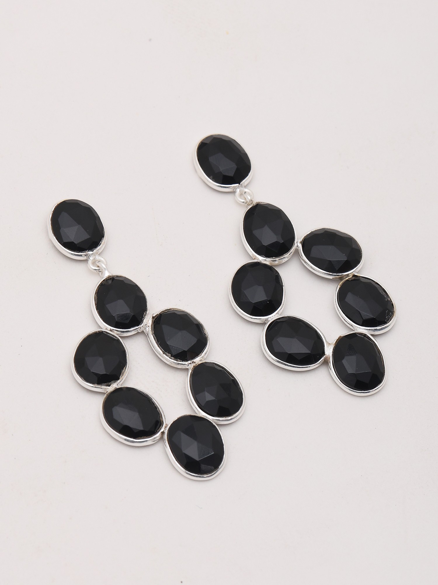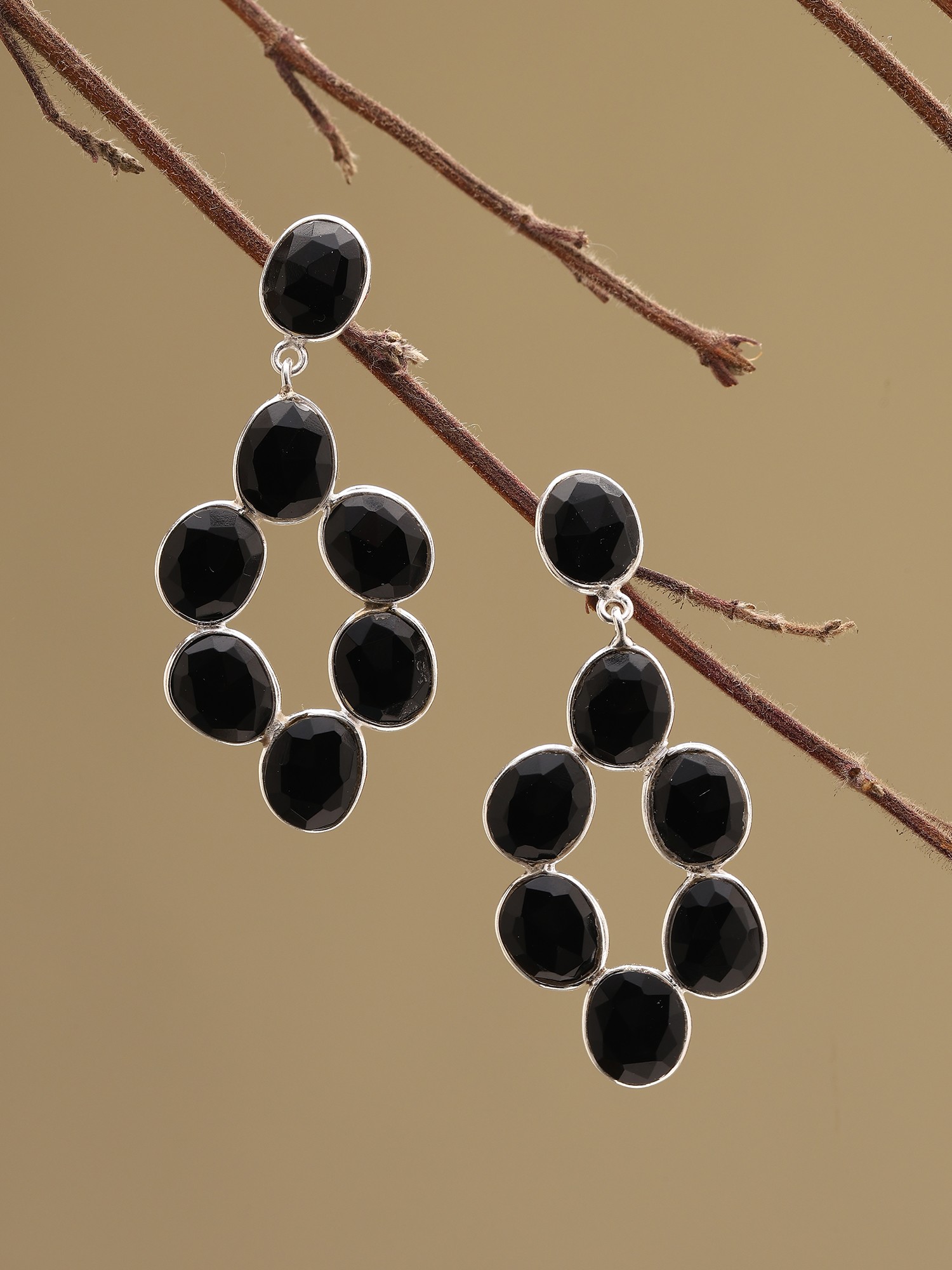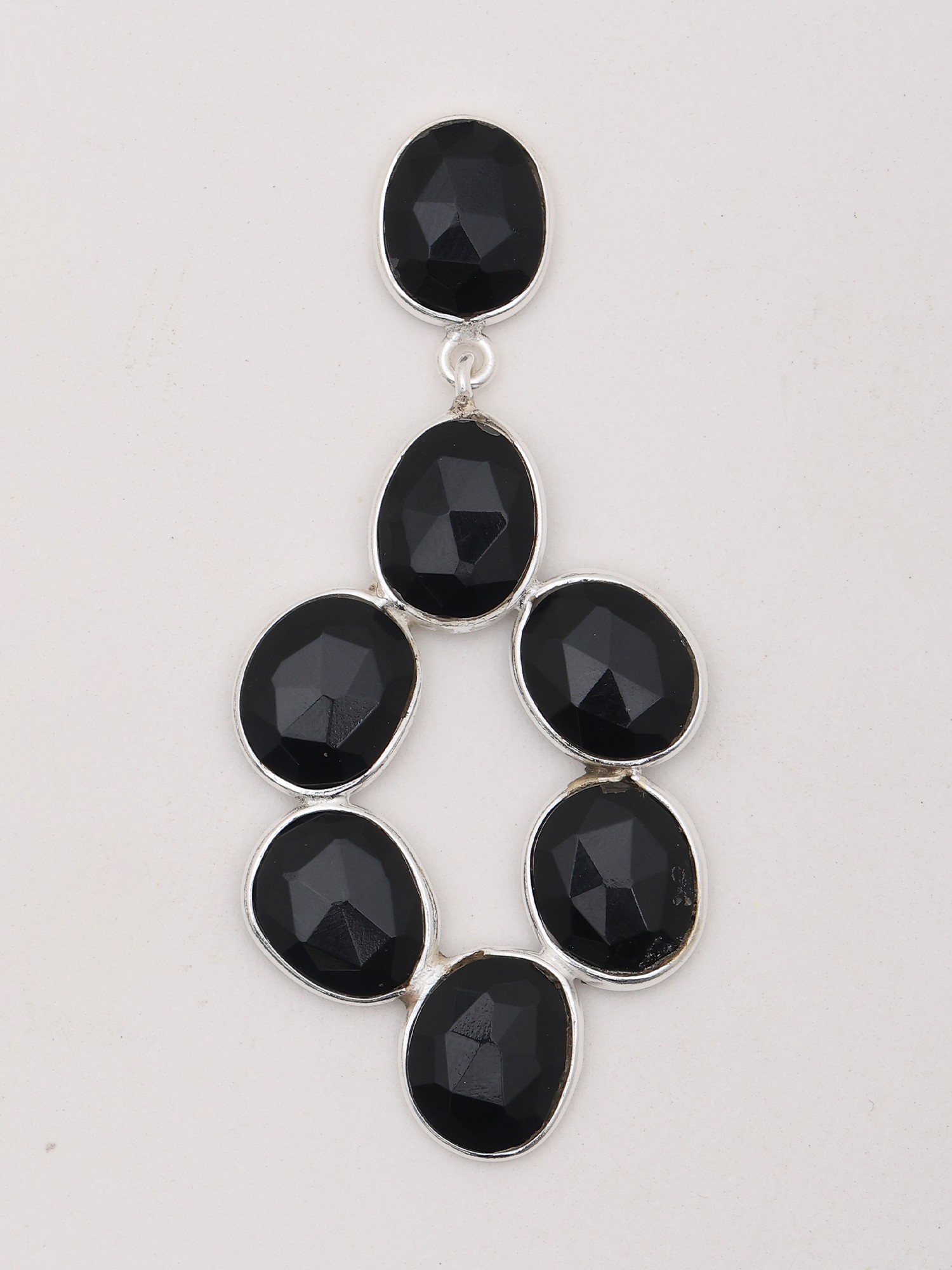 Drop Shaped Sterling Silver Earrings with Black Onyx