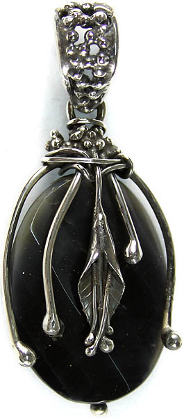 Black Onyx Pendant with Matching Earrings Set - Sterling Silver