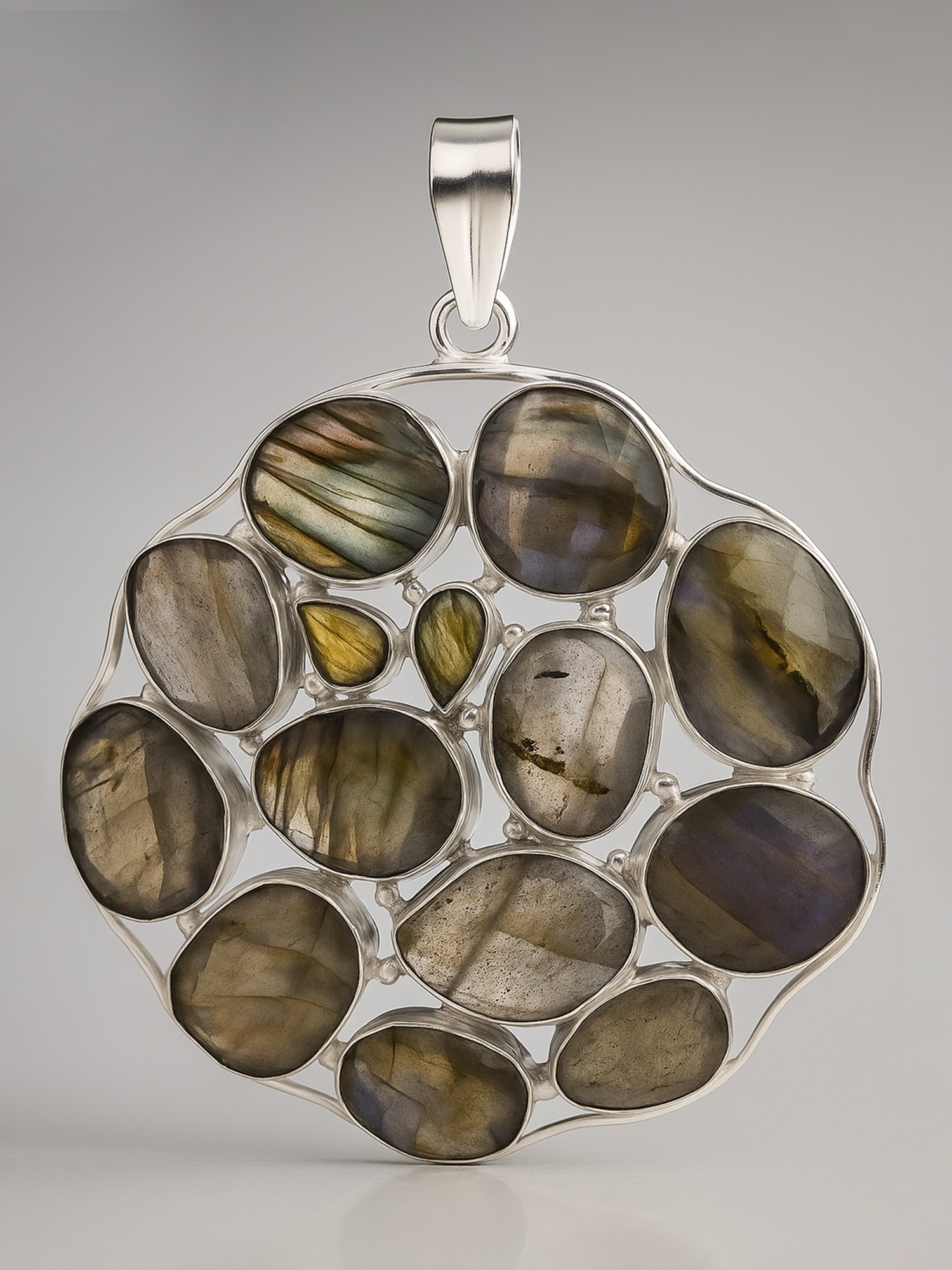 Labradorite Pendant Round in Shape with Twisted Rope Design