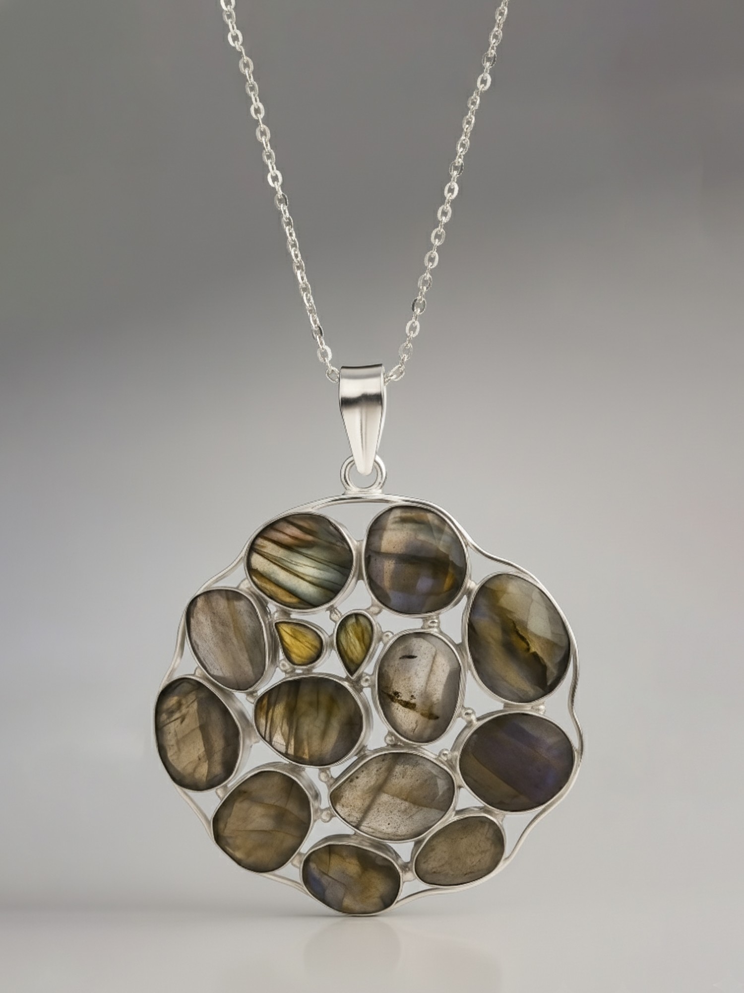 Labradorite Oval Pendant with Earrings Set | Indian Jewelry Sets