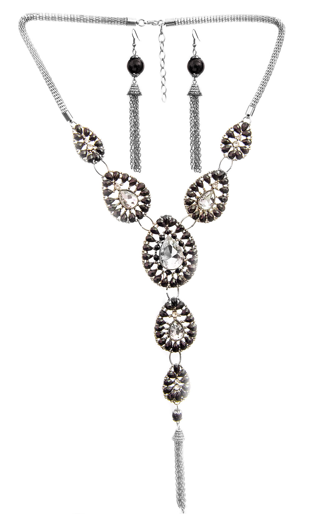 Wrap yourself in the seductive charm of a long tassel necklace with facets that combine classic beauty with contemporary design. The tassel is a lovely cascade of faceted stones that adds sophistication and movement. Put these gorgeous earrings on to elevate your attire with a dash of uniqueness and sophistication while making a big fashion statement.