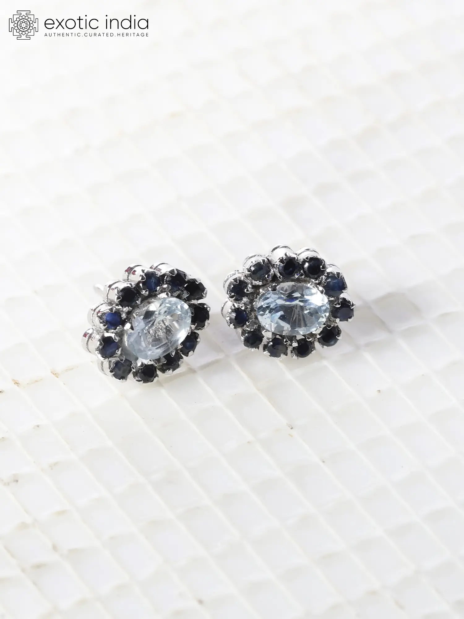 These timeless earpieces feature beautifully faceted oval-cut blue topaz stones, accented by sparkling sapphire gemstones.