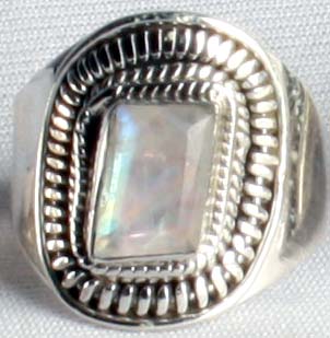 At its heart lies a magnificent, custom-cut faceted stone, a phenomenon of natural beauty. Its substantial presence, measuring a striking 20 mm in height, is a focal point that commands attention without being ostentatious. As light plays upon its surface, you'll witness a breathtaking display of adularescence, a spectral ballet of blues, greens, and golds that shifts with every movement, making each moment a unique visual symphony.