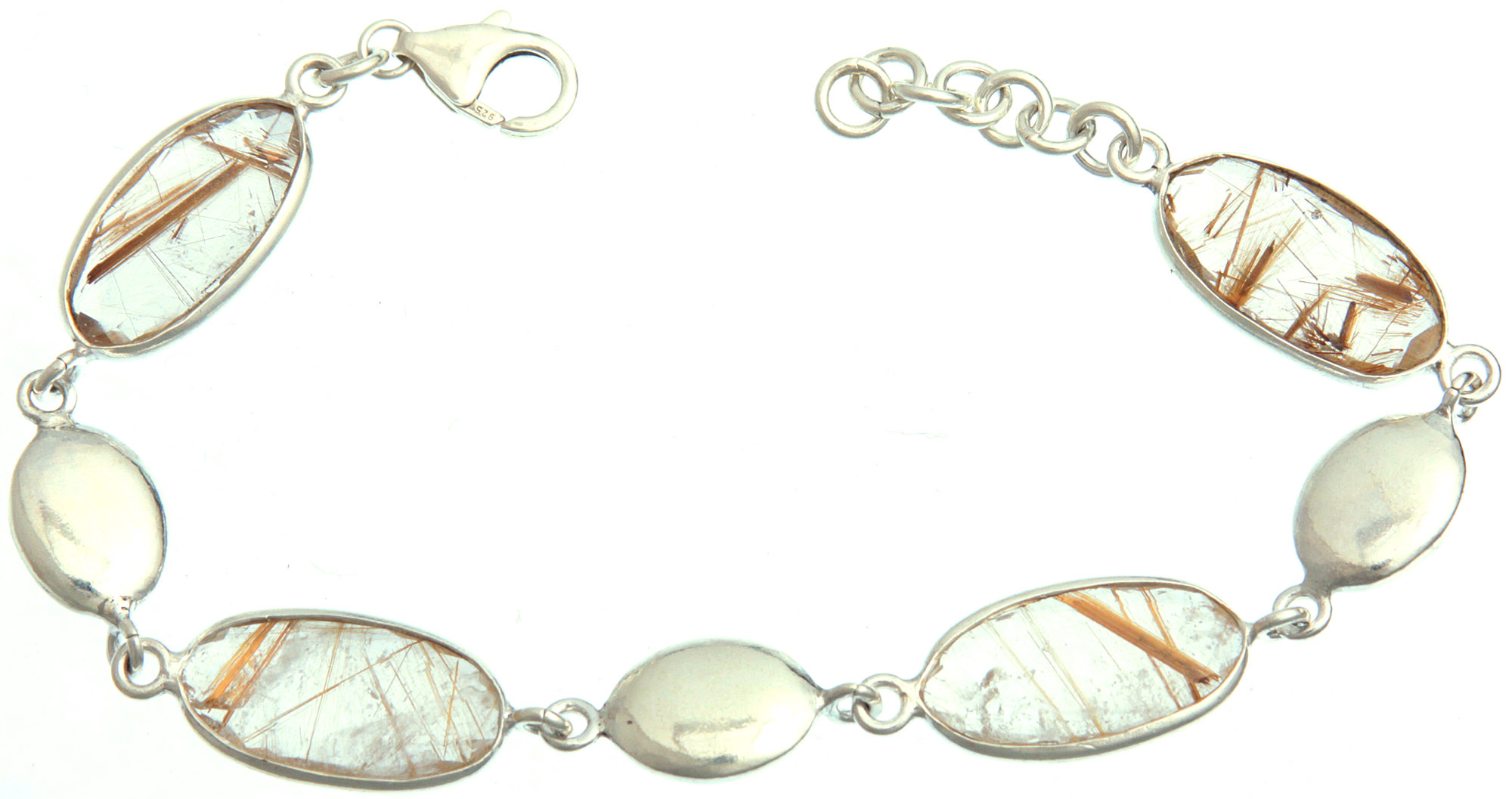 Sterling Silver Bracelet with Rutilated Quartz Detailing