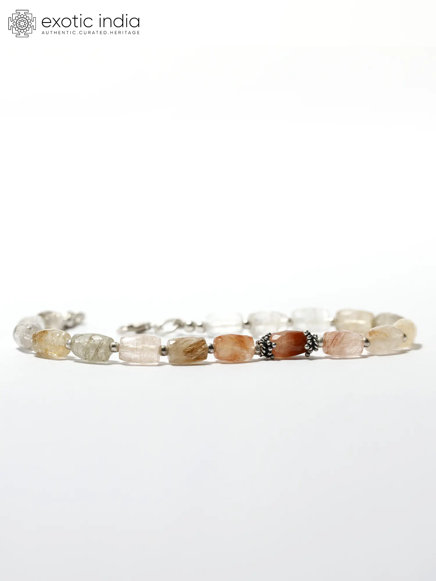 This charming bracelet features faceted rutilated quartz, a stone known for its captivating golden needles.