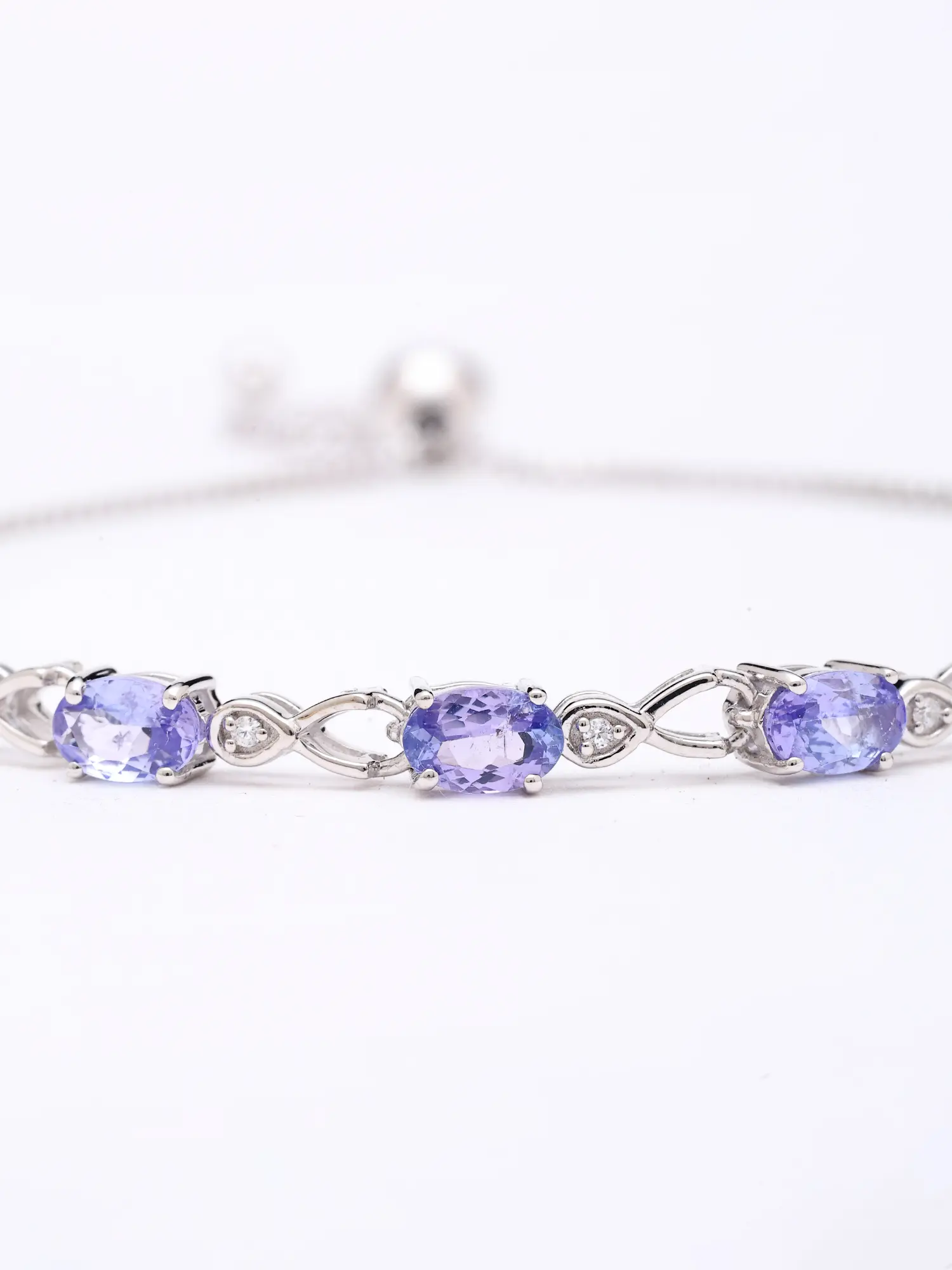 Oval Shape Faceted Tanzanite Gemstone Tennis Bracelet