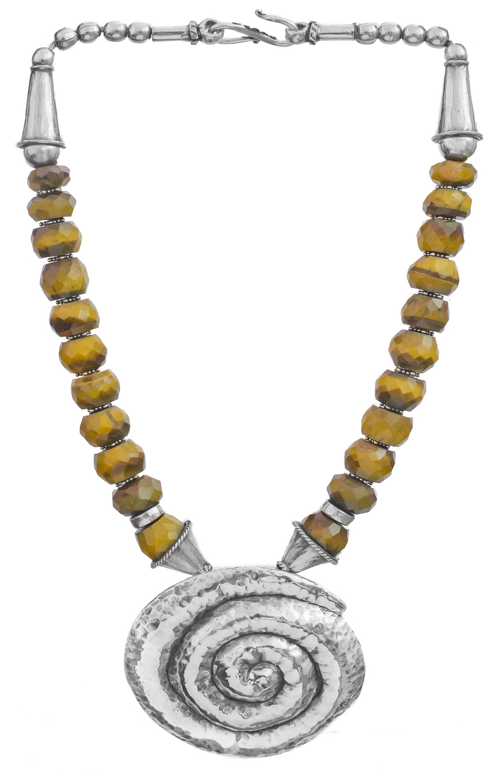 Sterling Silver Pendant with Large Tiger-Eye Gemstone