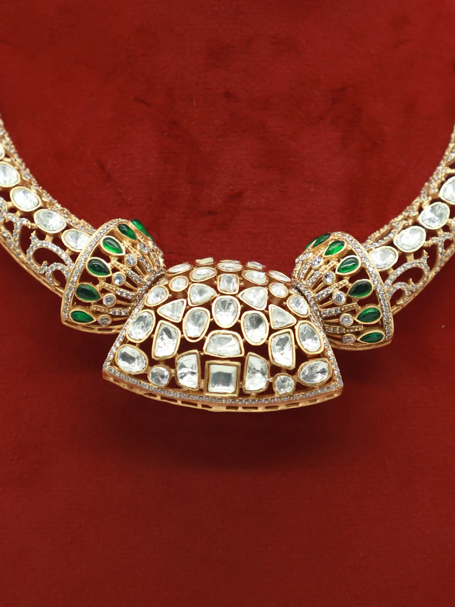 Fancy Moissanite Kundan With Matt Polish Stone Studded Necklace Set For Party Occasion