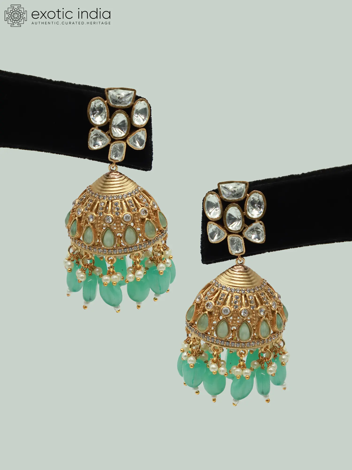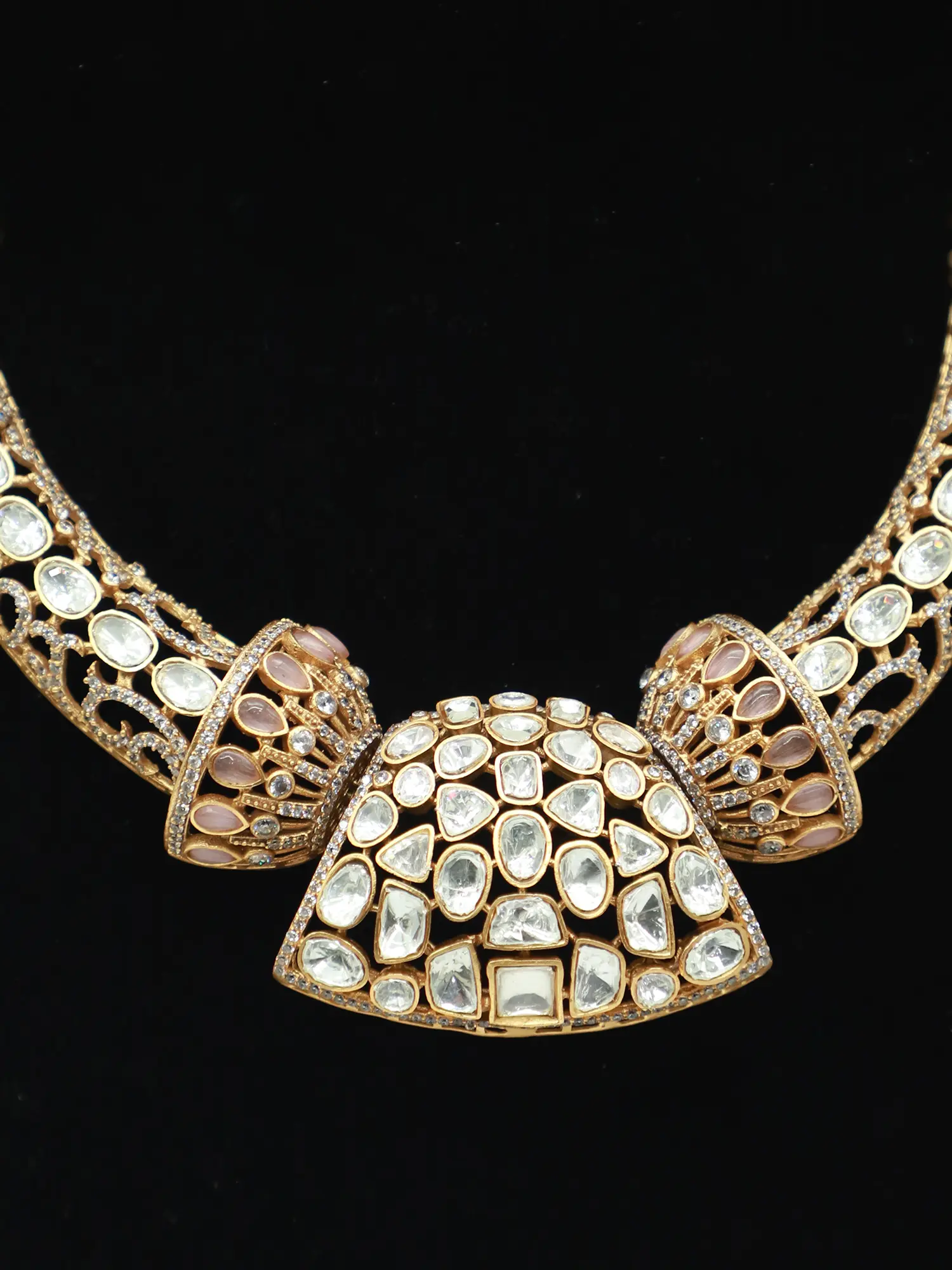 Fancy Moissanite Kundan With Matt Polish Stone Studded Necklace Set For Party Occasion