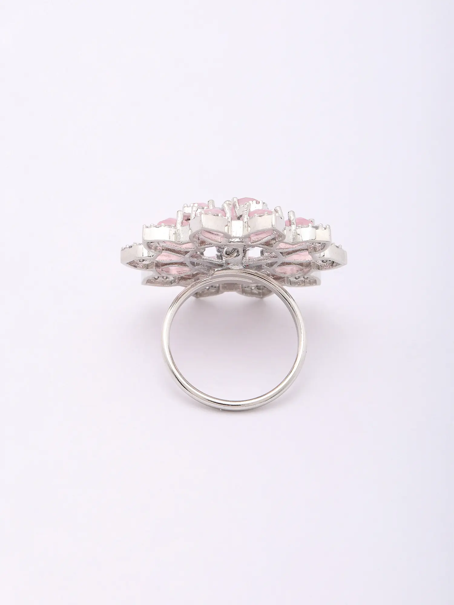 Pink Stone Studded Adjustable American-Diamond Statement Ring
