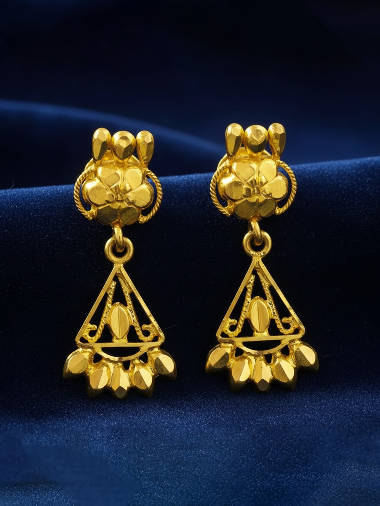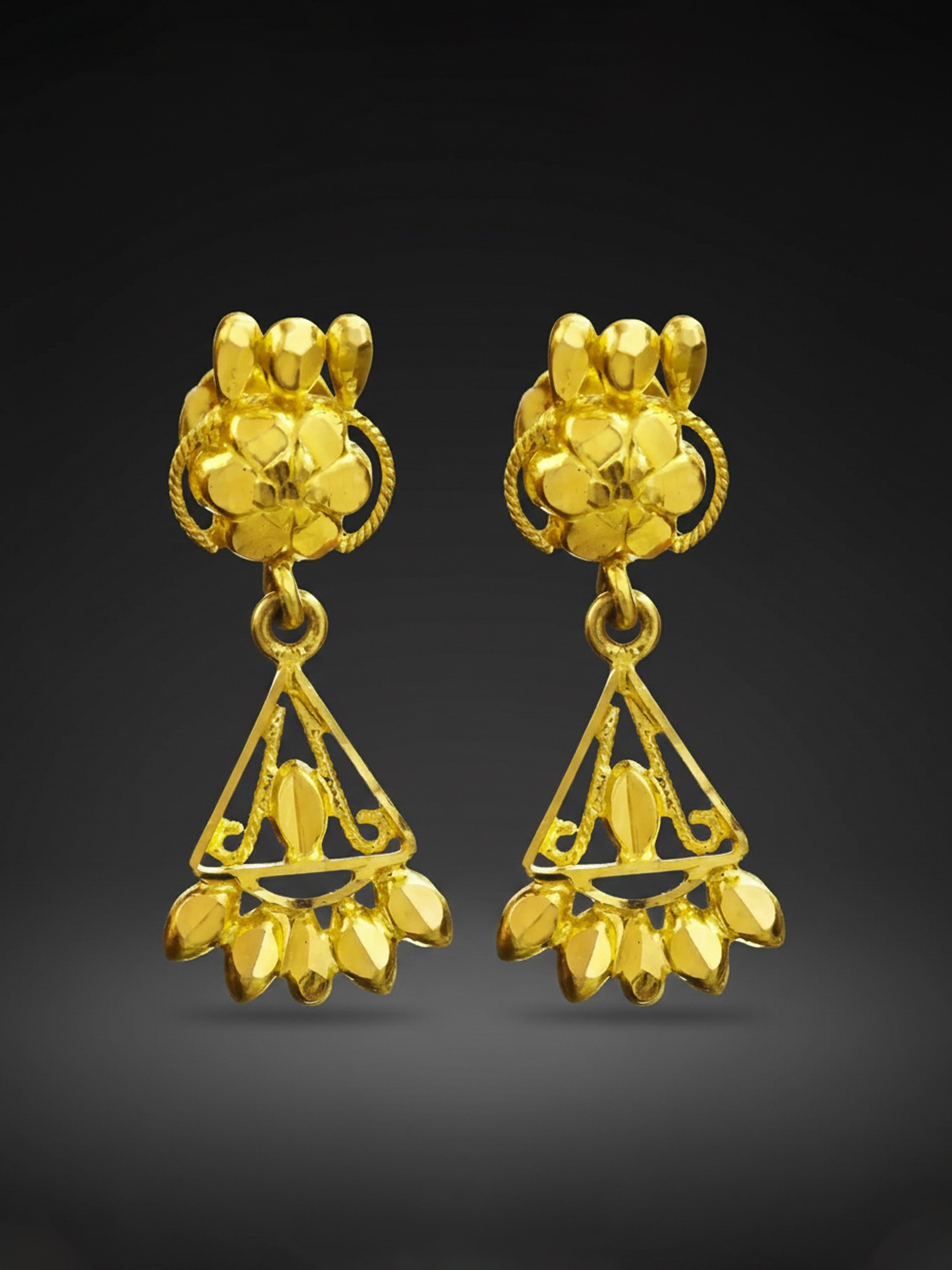 Carved Citrine Leaves Bunch Earrings | Sparkling Gold Earrings