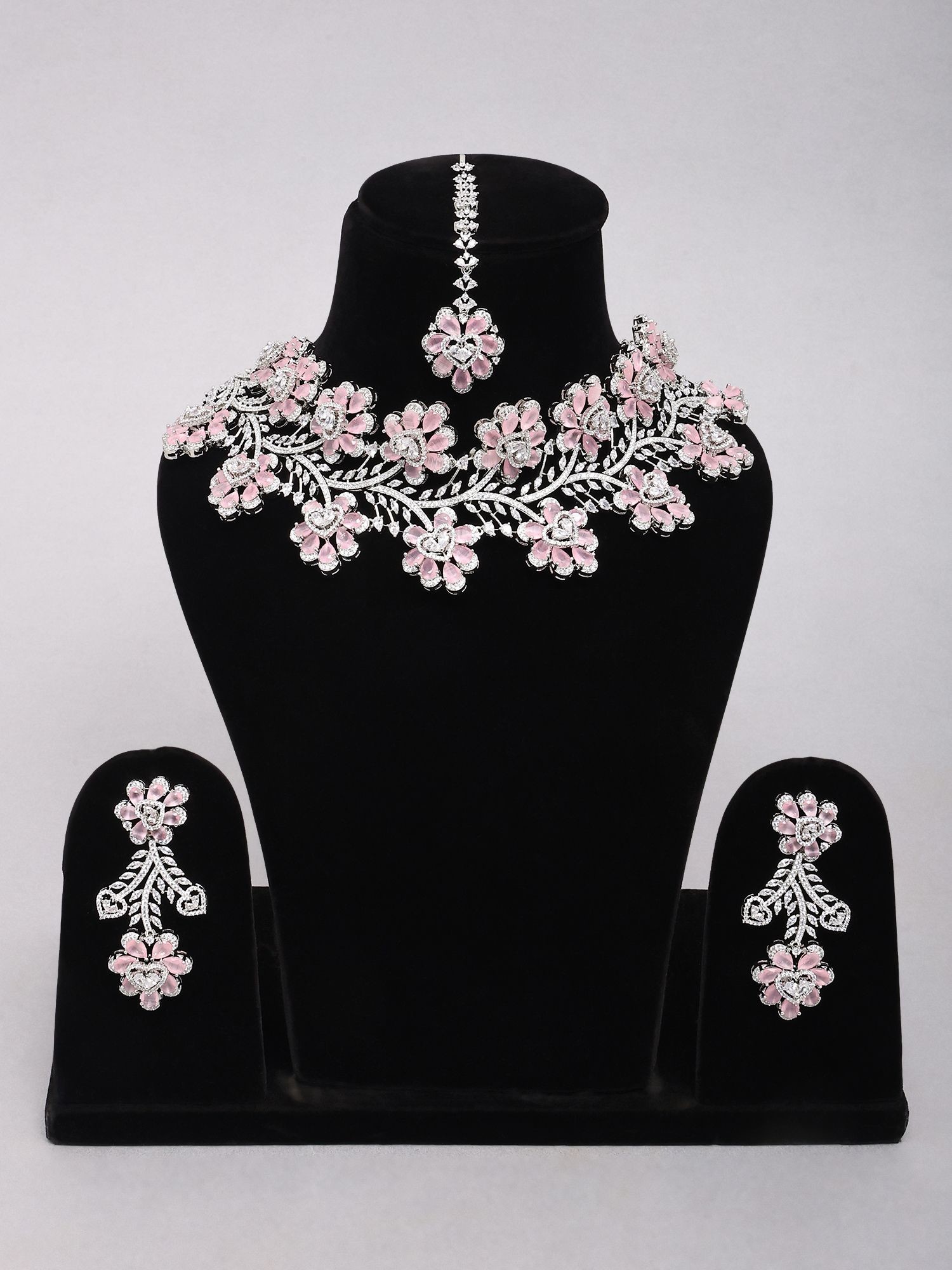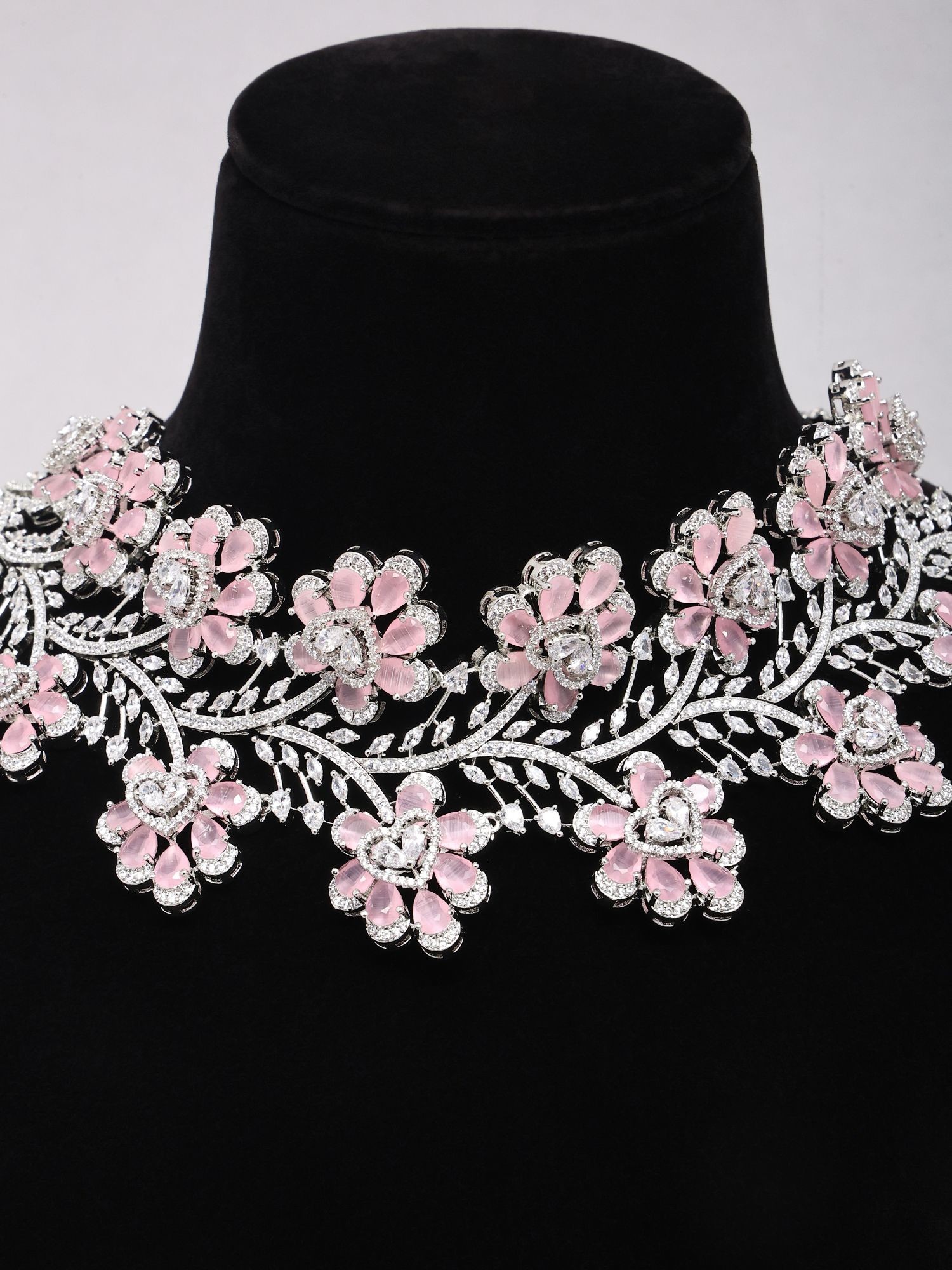 Features a delicate pink floral design intricately set with sparkling American diamonds.