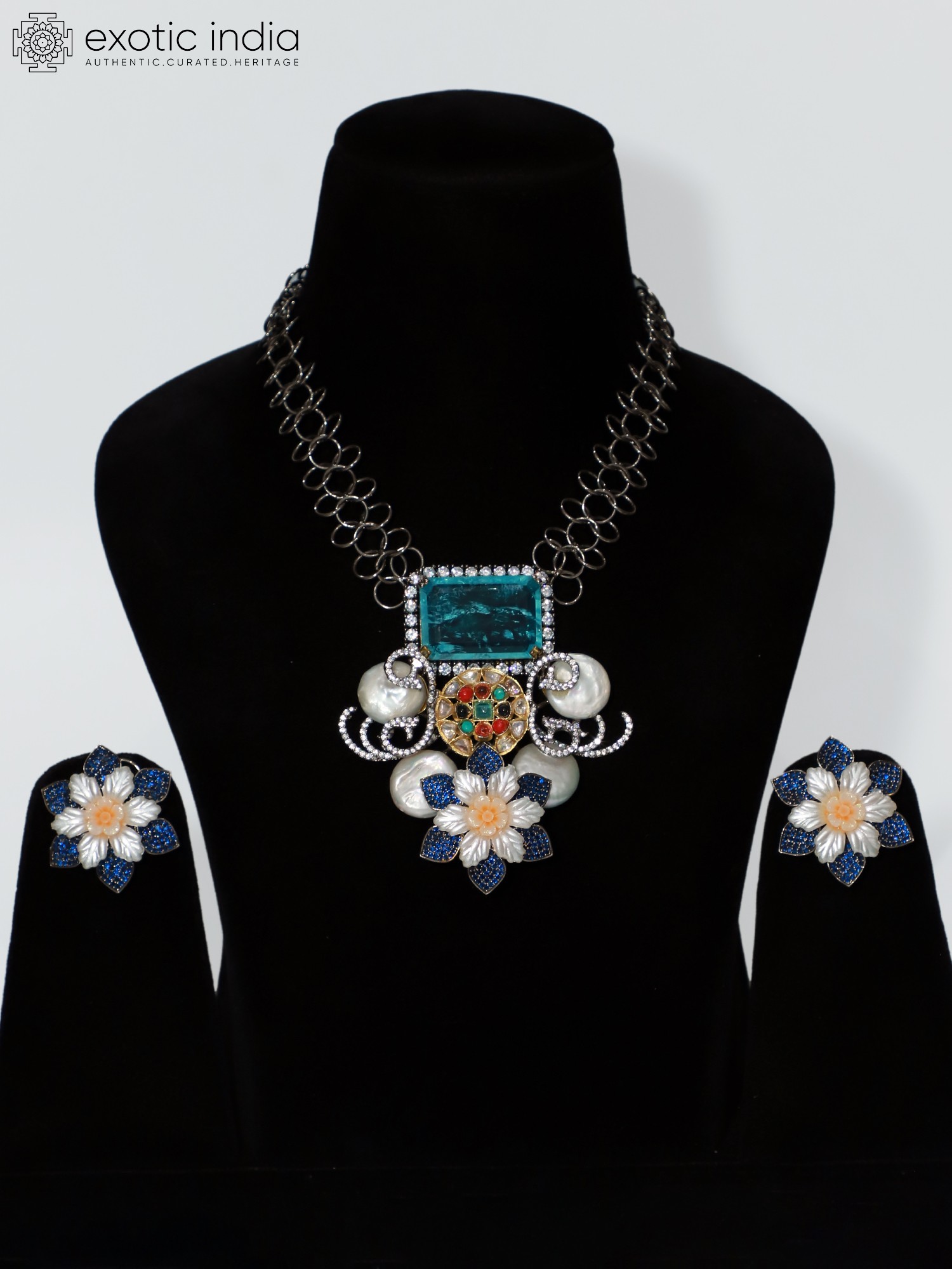 Inlay Pencil Pendant with Matching Drop Earrings Set - Sterling Silver
