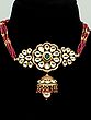 Beaded And Stone Studded Elegant Monalisa Bandhai Necklace Set With Matching Earrings