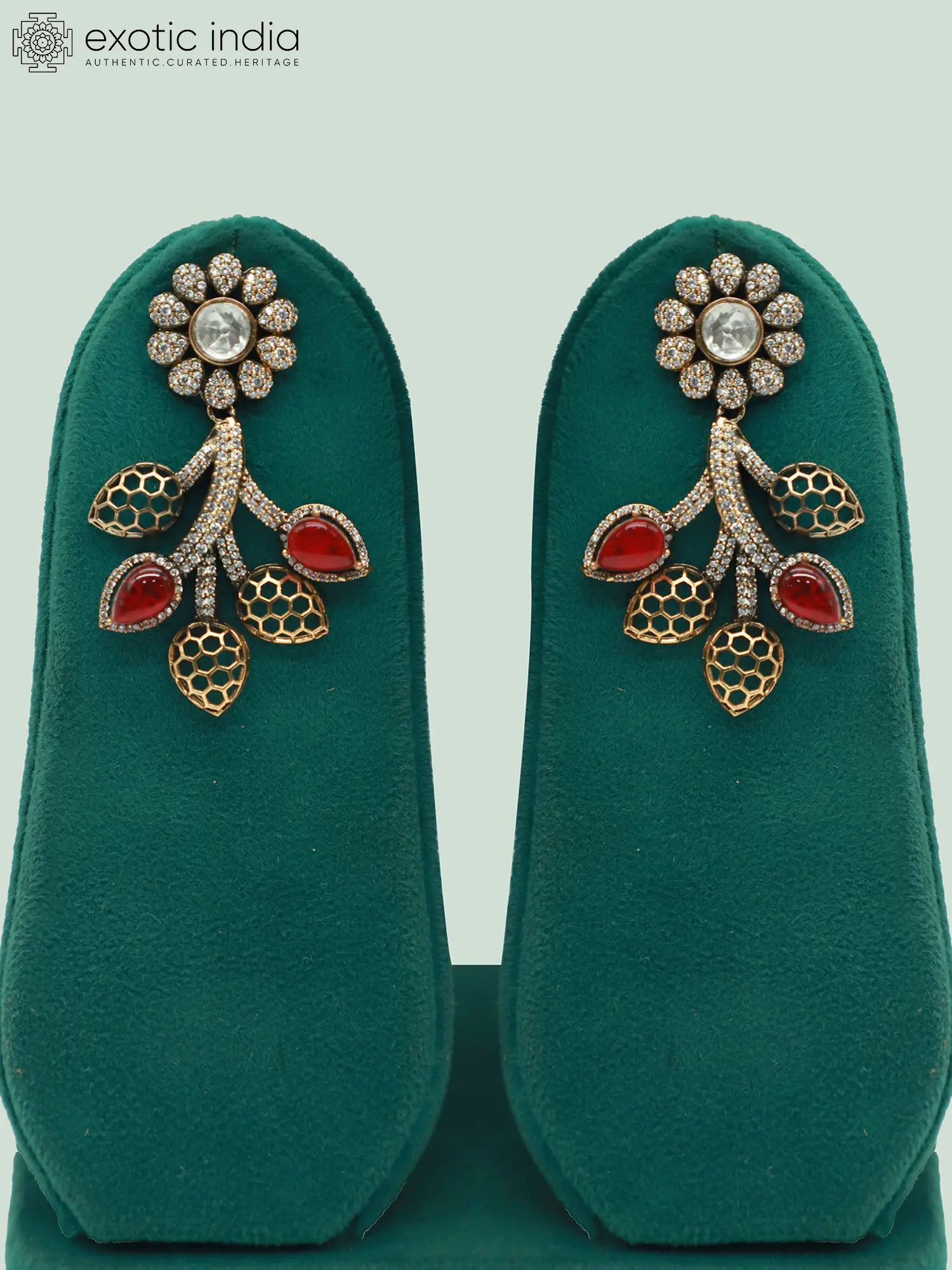 Floral Design Embellished Moissanite Kundan With Matt Polish Necklace With Earrings
