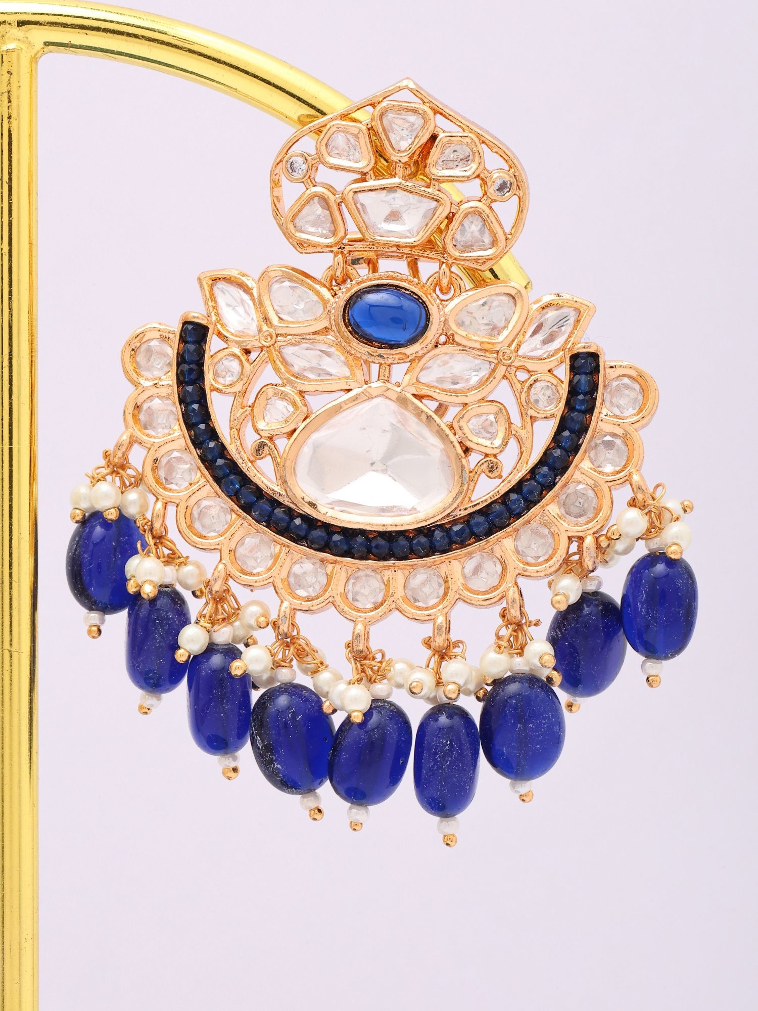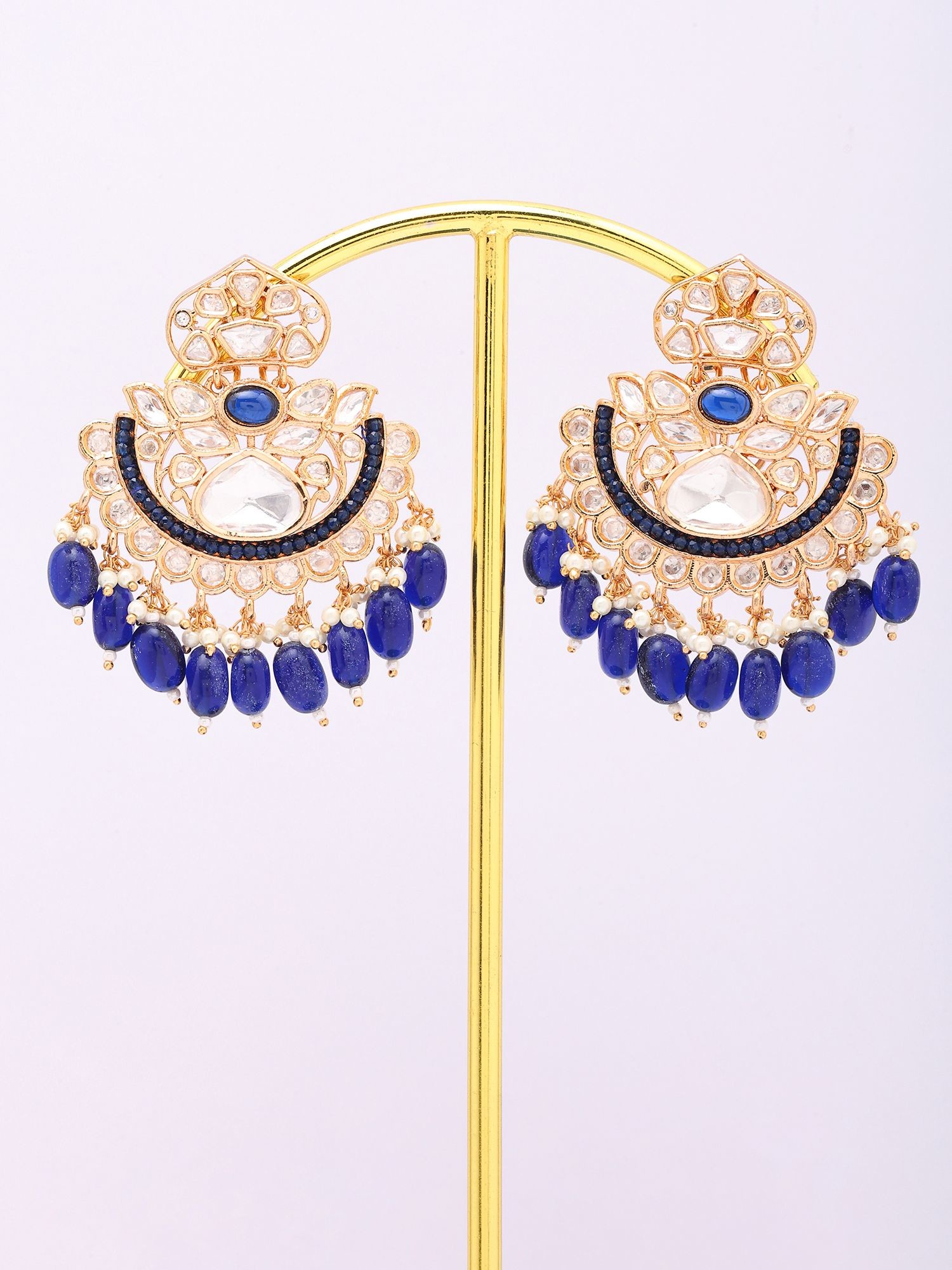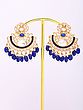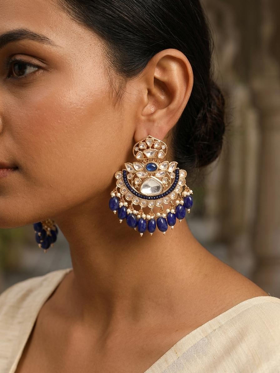 Statement Kundan Earrings with Cascading Blue Beads