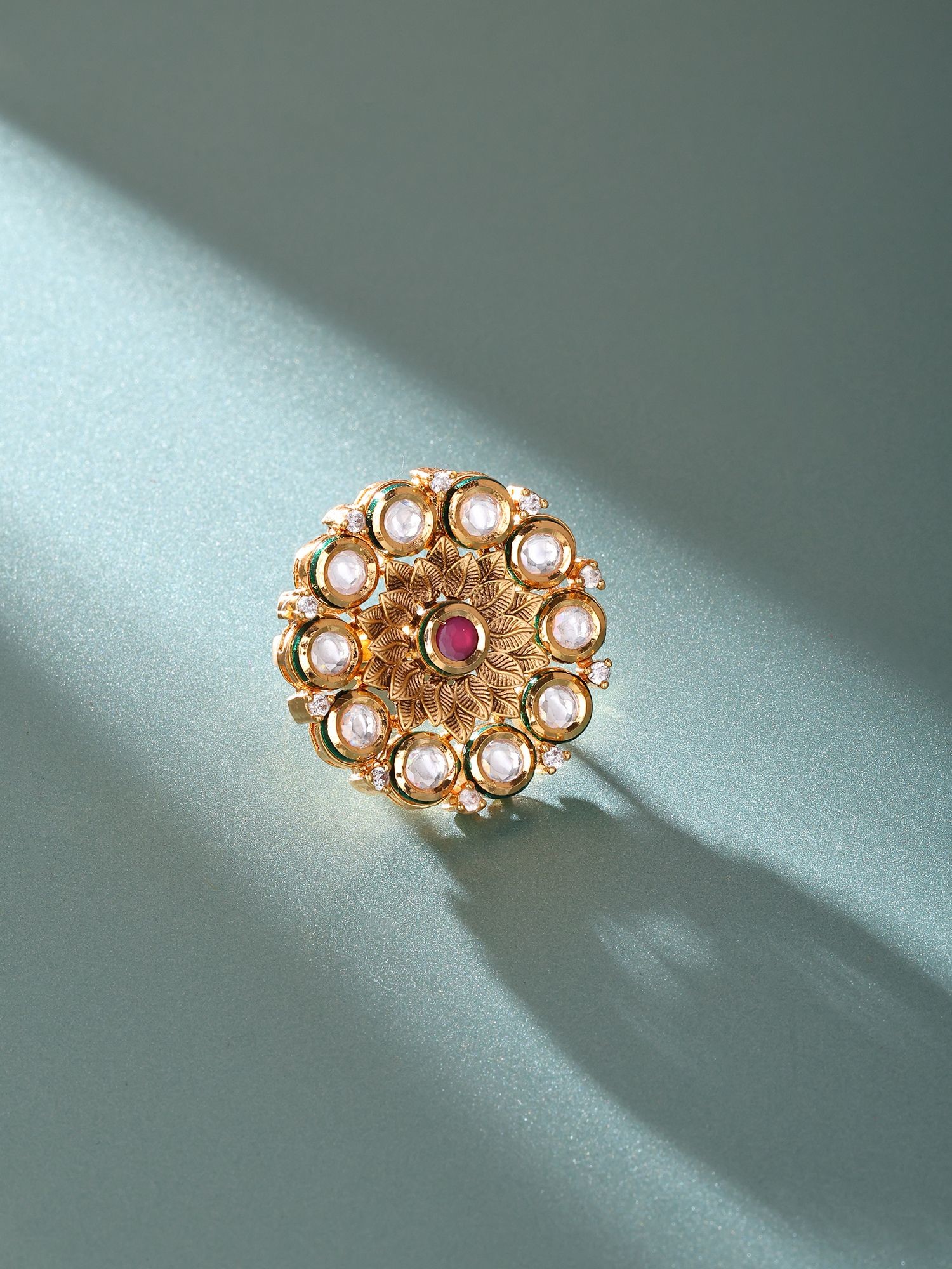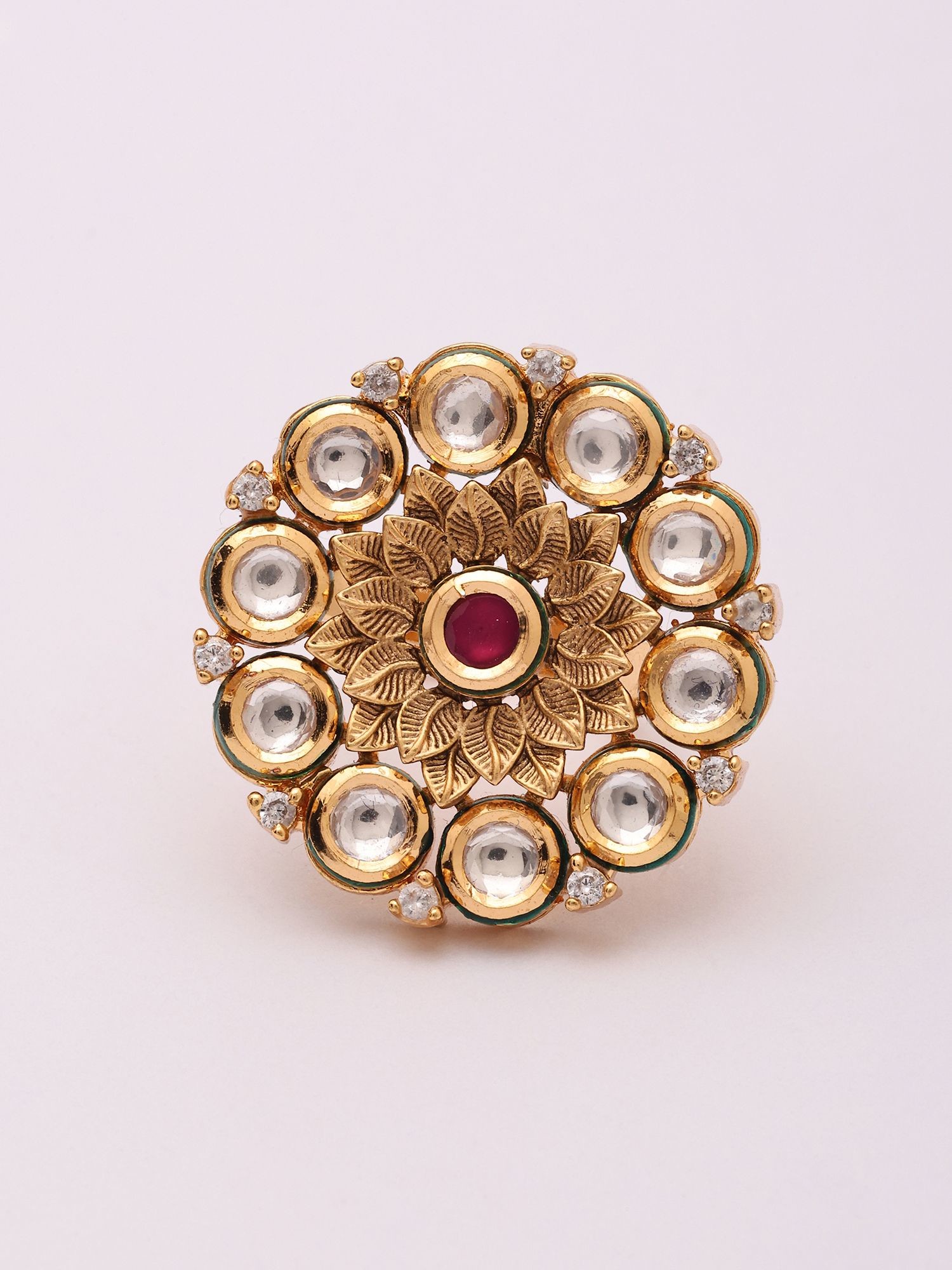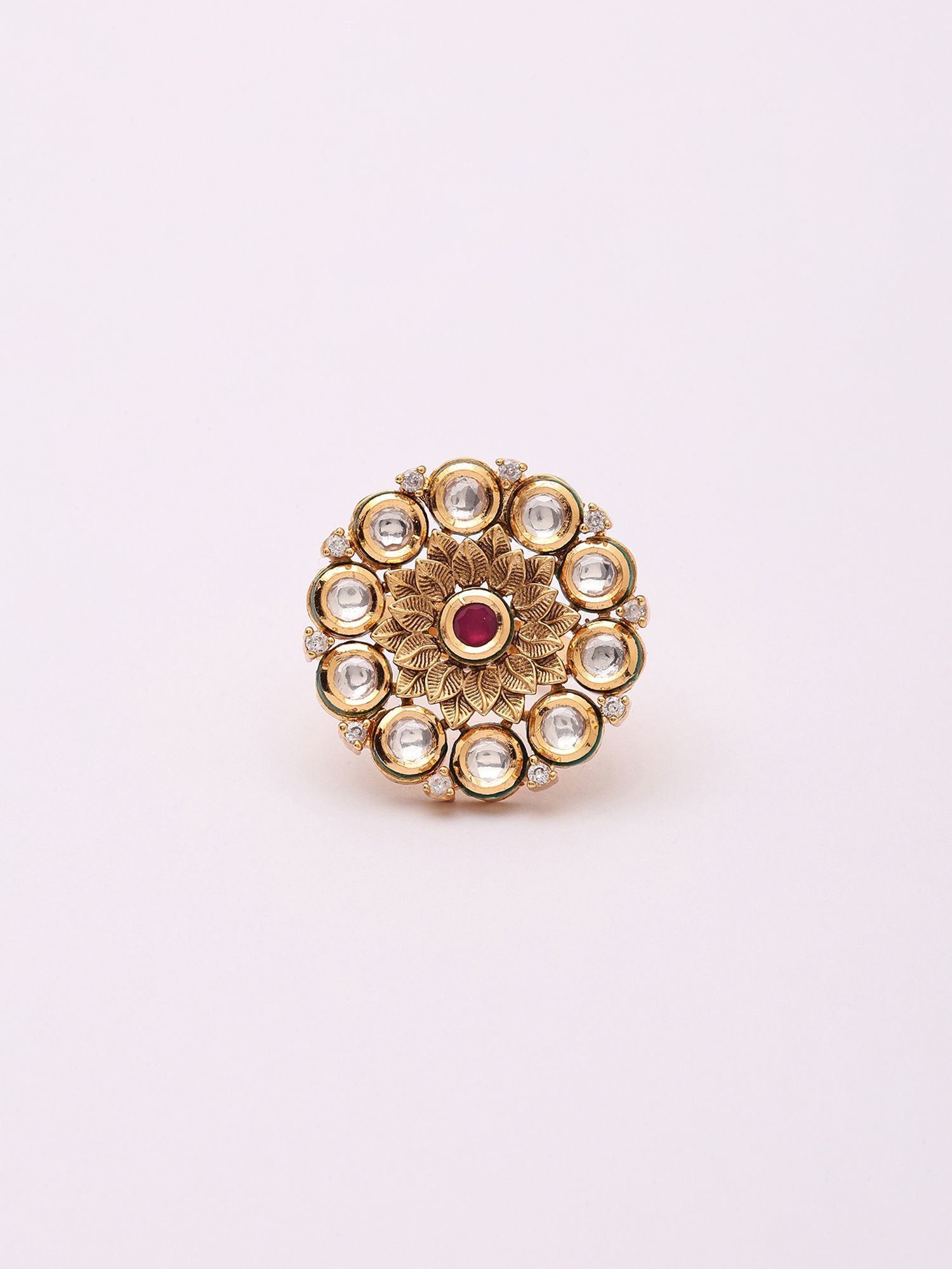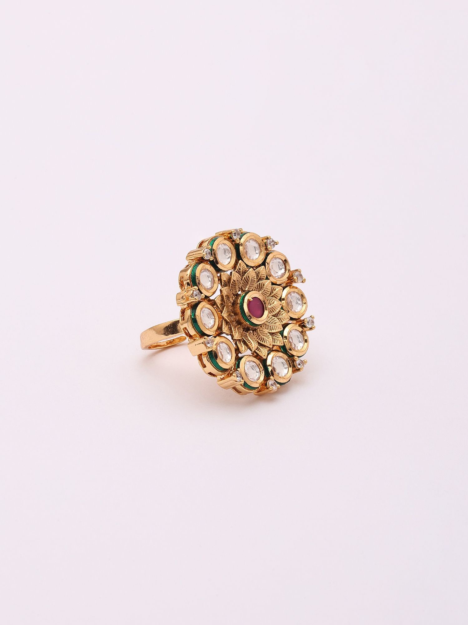 Kundan Style Round Stone Studded Adjustable Ring