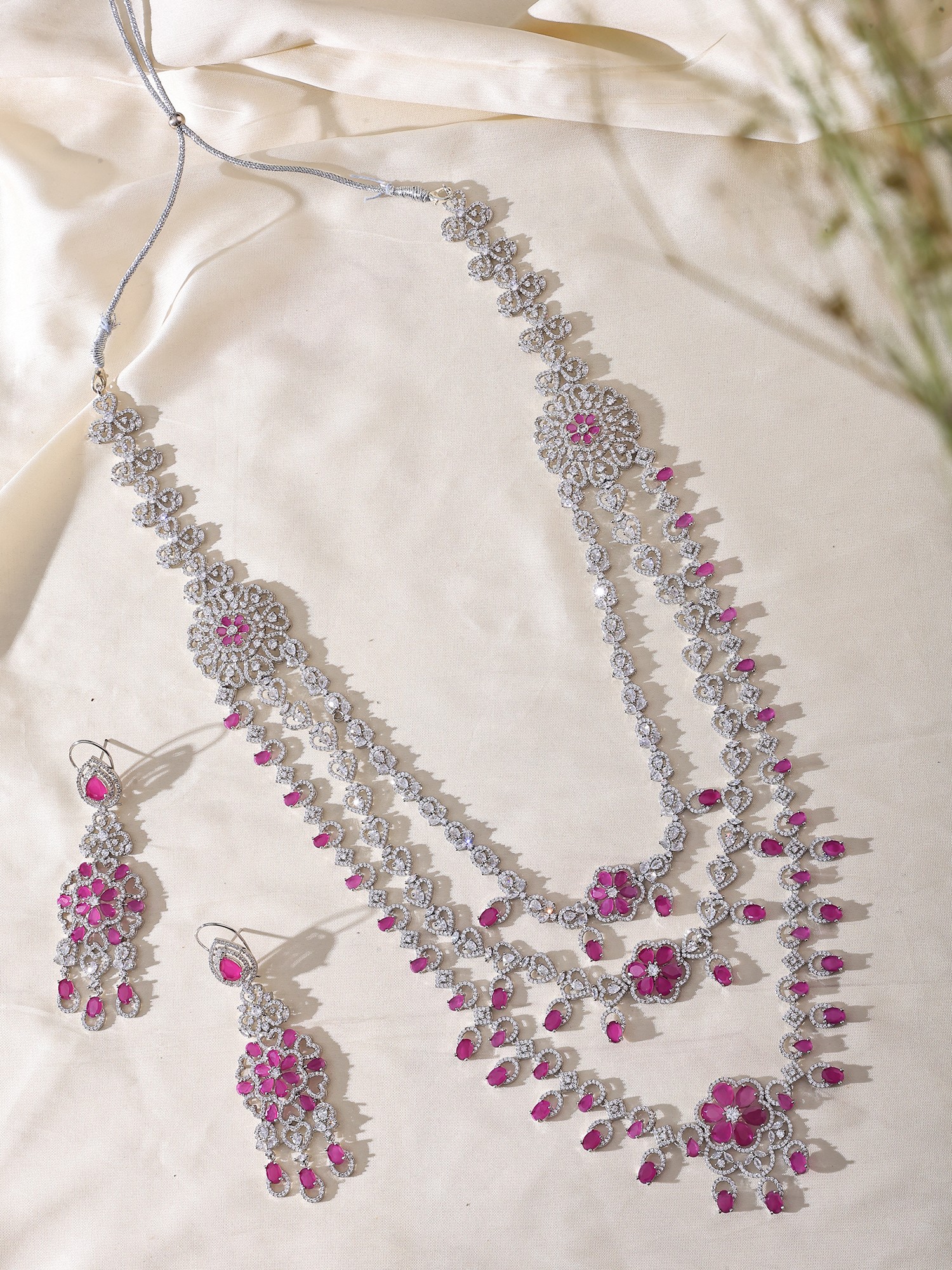Floral Design Multi Strand American-Diamond Bridal Necklace Set