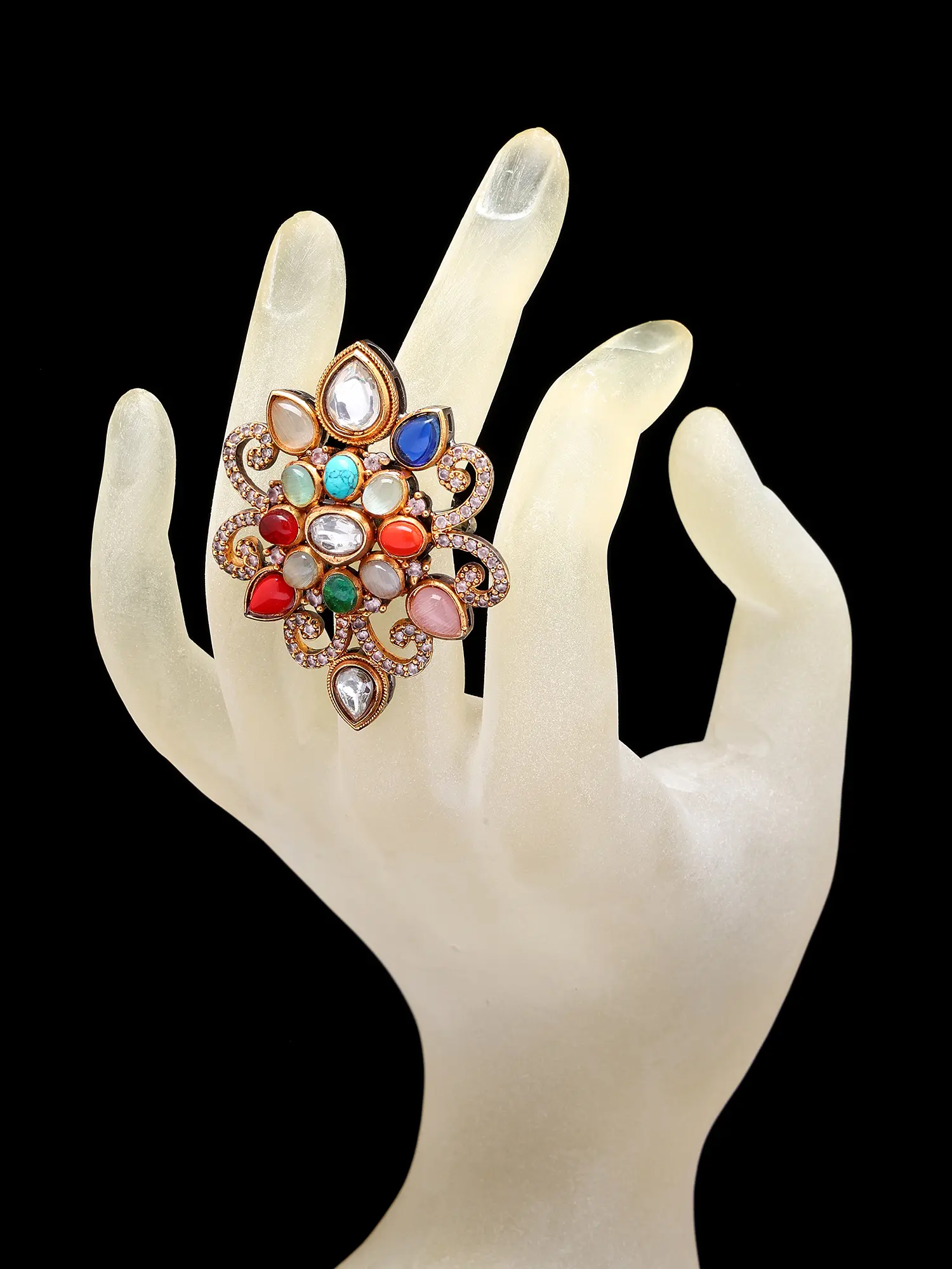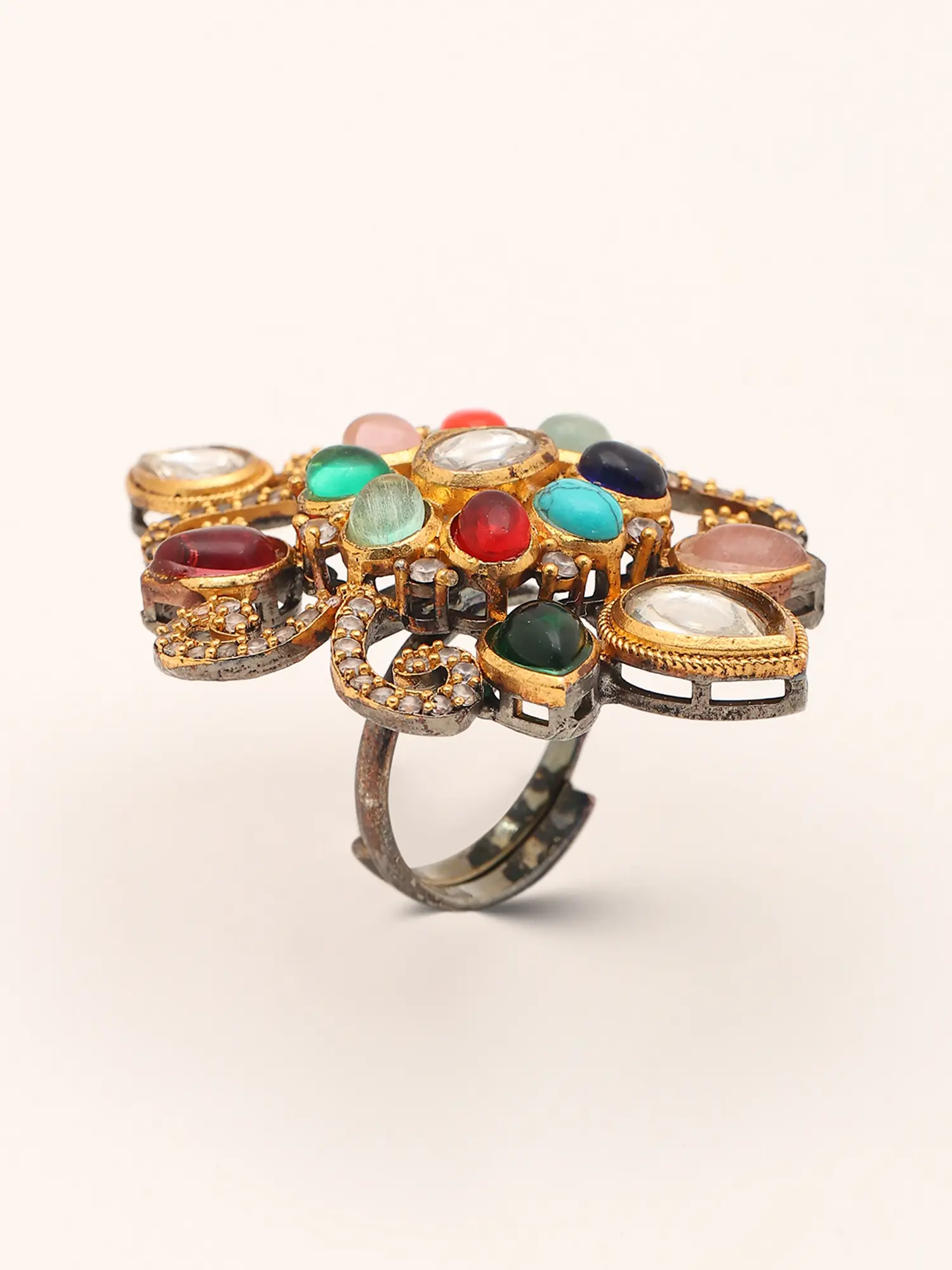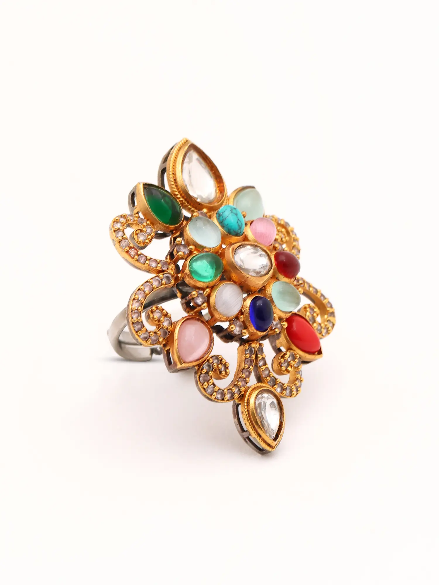 Blue, White and Turquoise Inlay Stone Ring Made in Sterling Silver