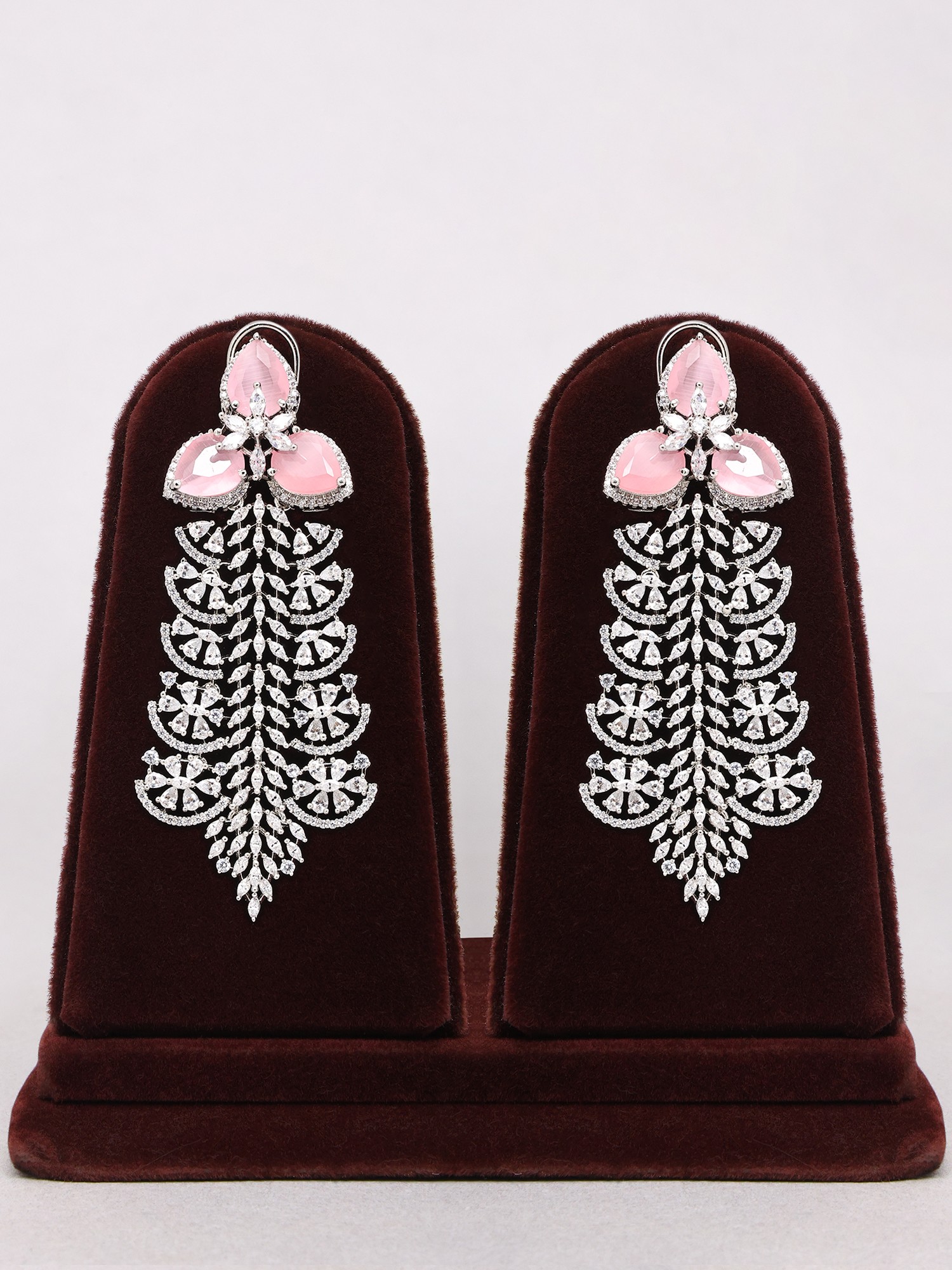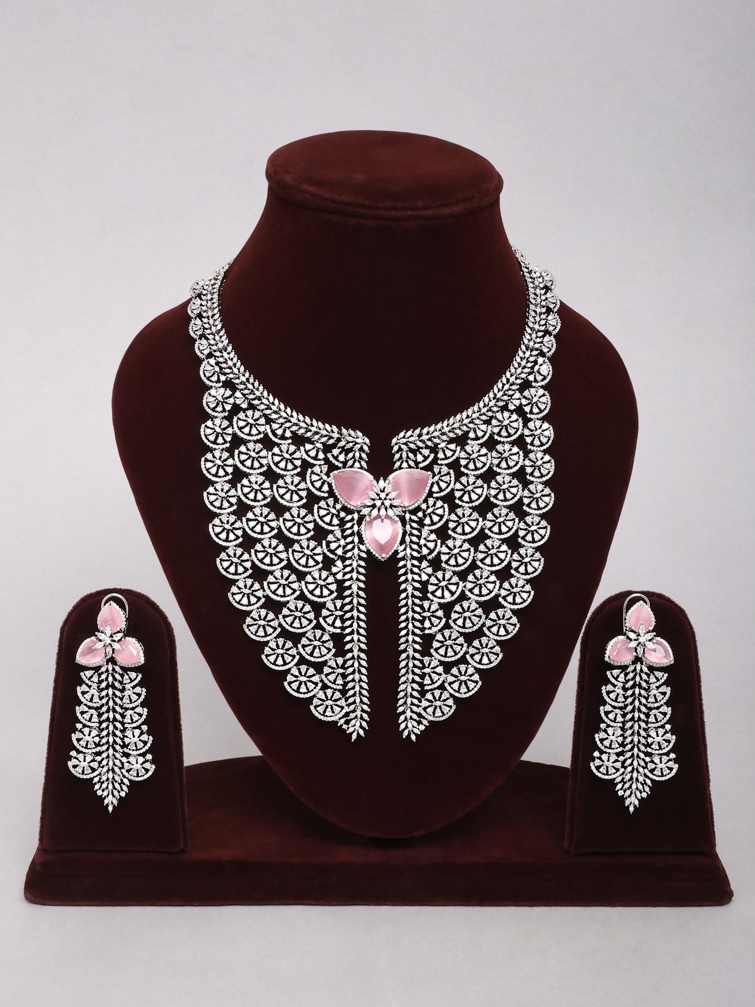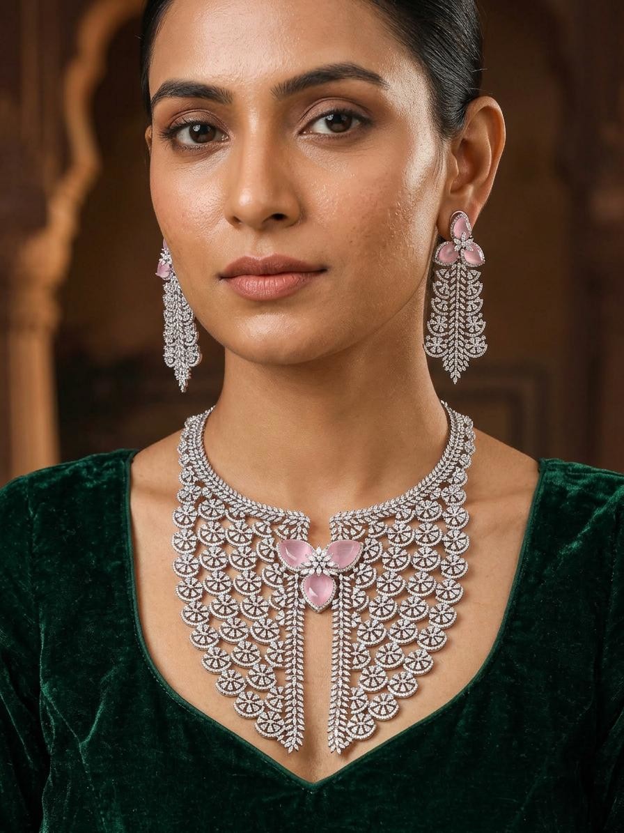 Pink American Diamond Stone Studded Necklace and Earring Set
