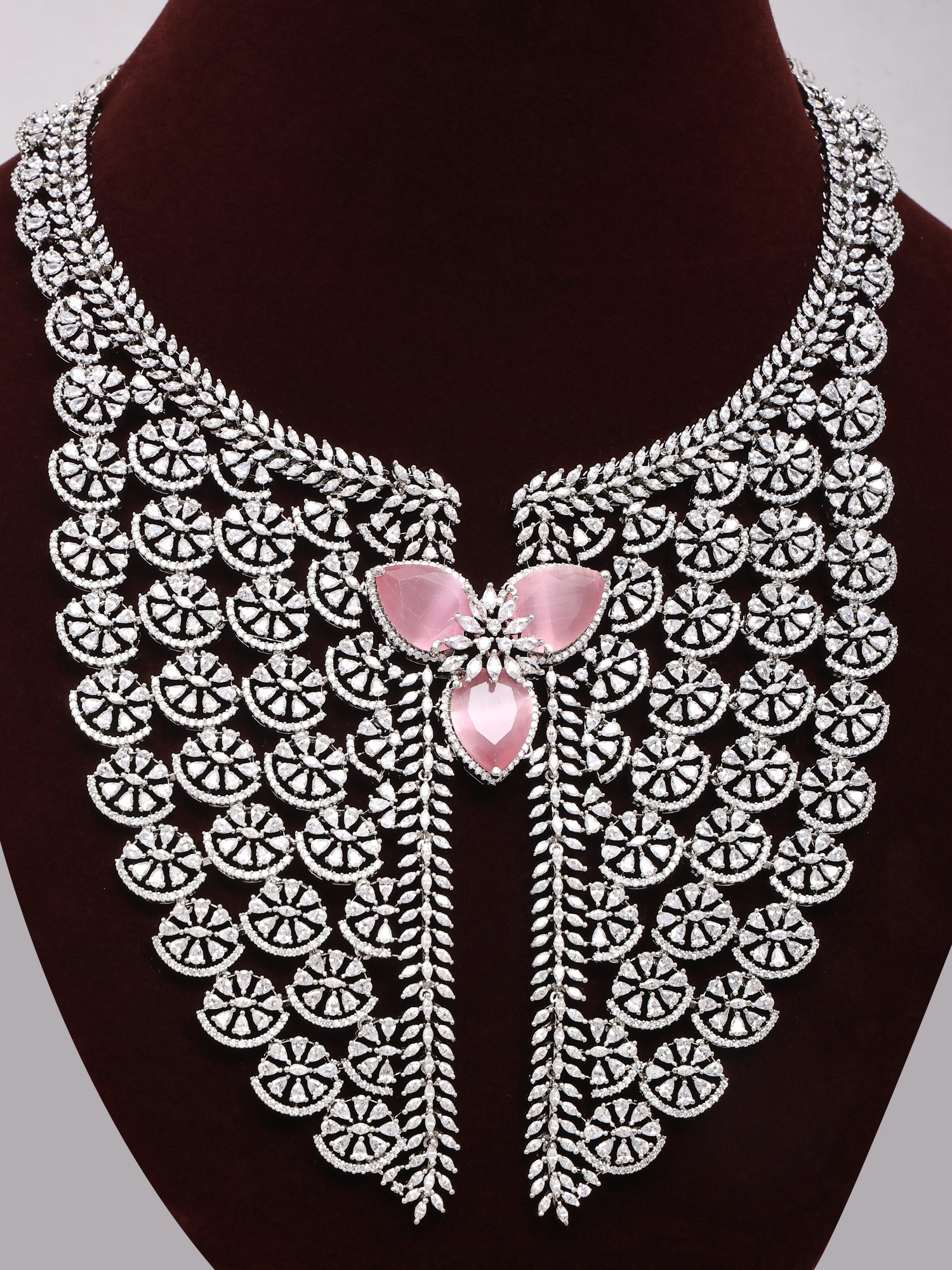 Floral American Diamond Bridal Statement Necklace Set with Stud Earrings