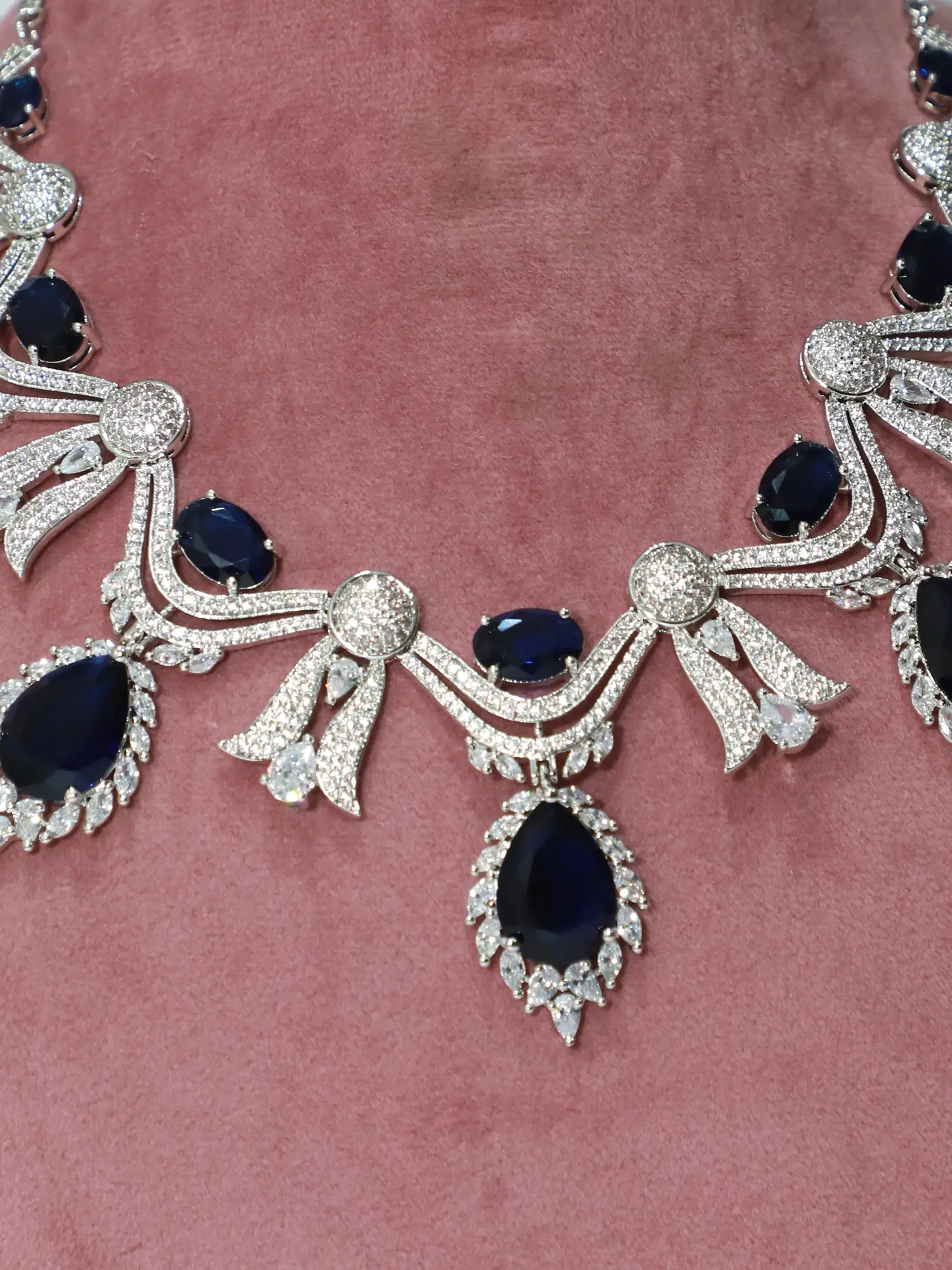 Floral Design Multi Strand American-Diamond Bridal Necklace Set