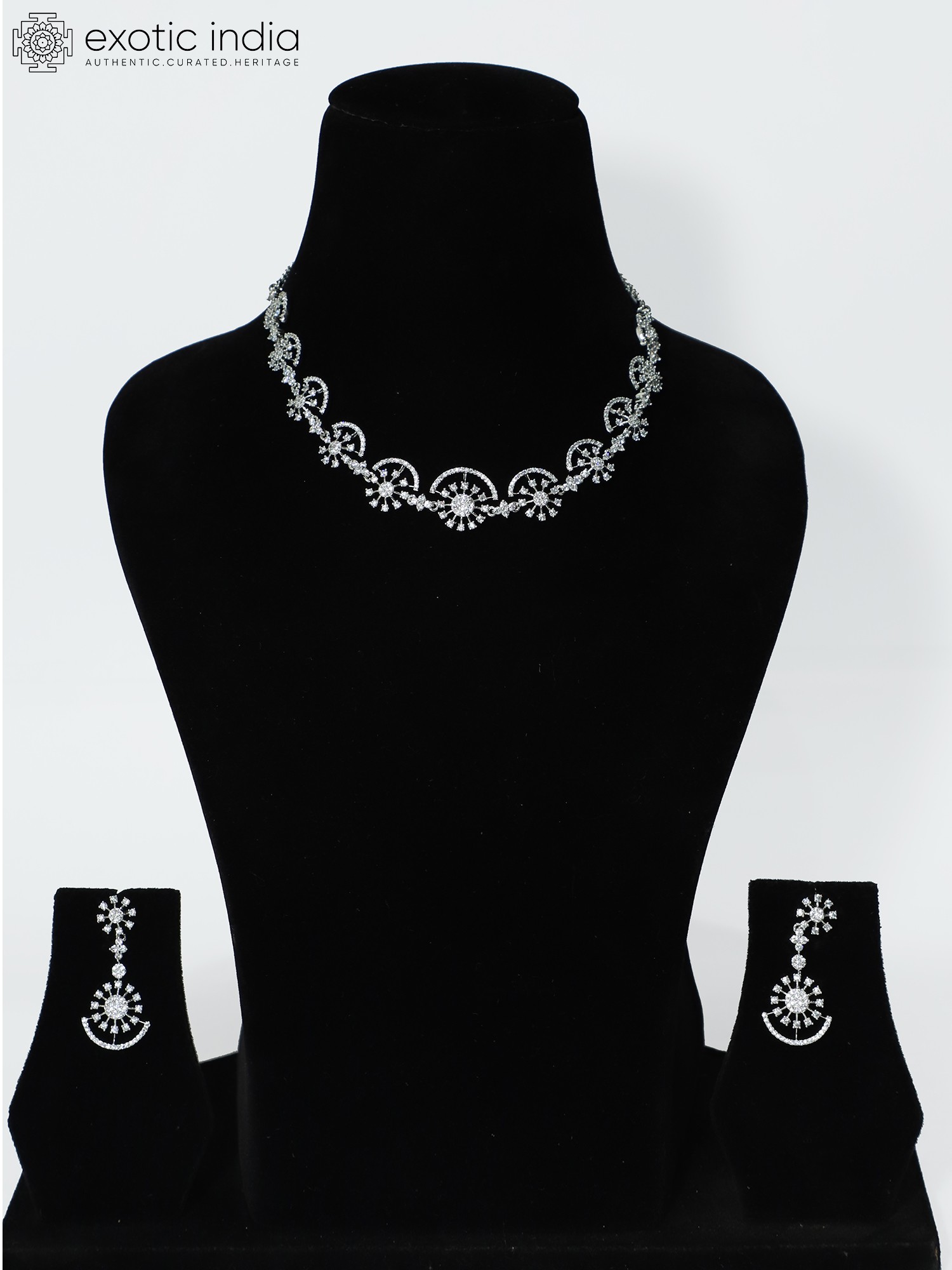 Floral Design Stunning Embellished American Diamond Necklace Set With Earrings