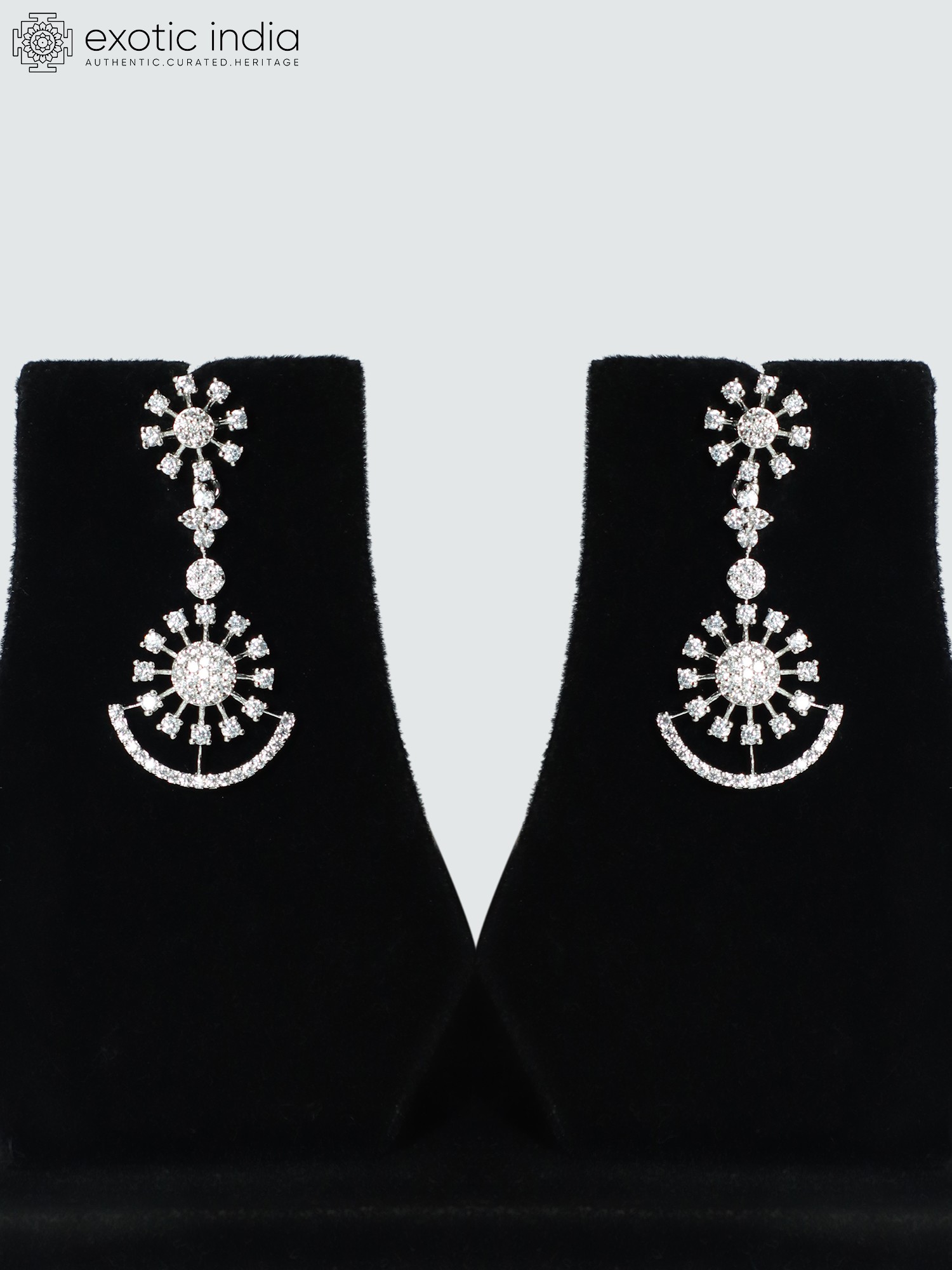 The necklace measures 10.5 inches in length, sitting gracefully around the neckline. The earrings measure 1.6 inches in height and 0.7 inches in width, offering a delicate and balanced complement to the necklace. The set is made with high-quality American Diamonds, ensuring a brilliant sparkle and long-lasting beauty.