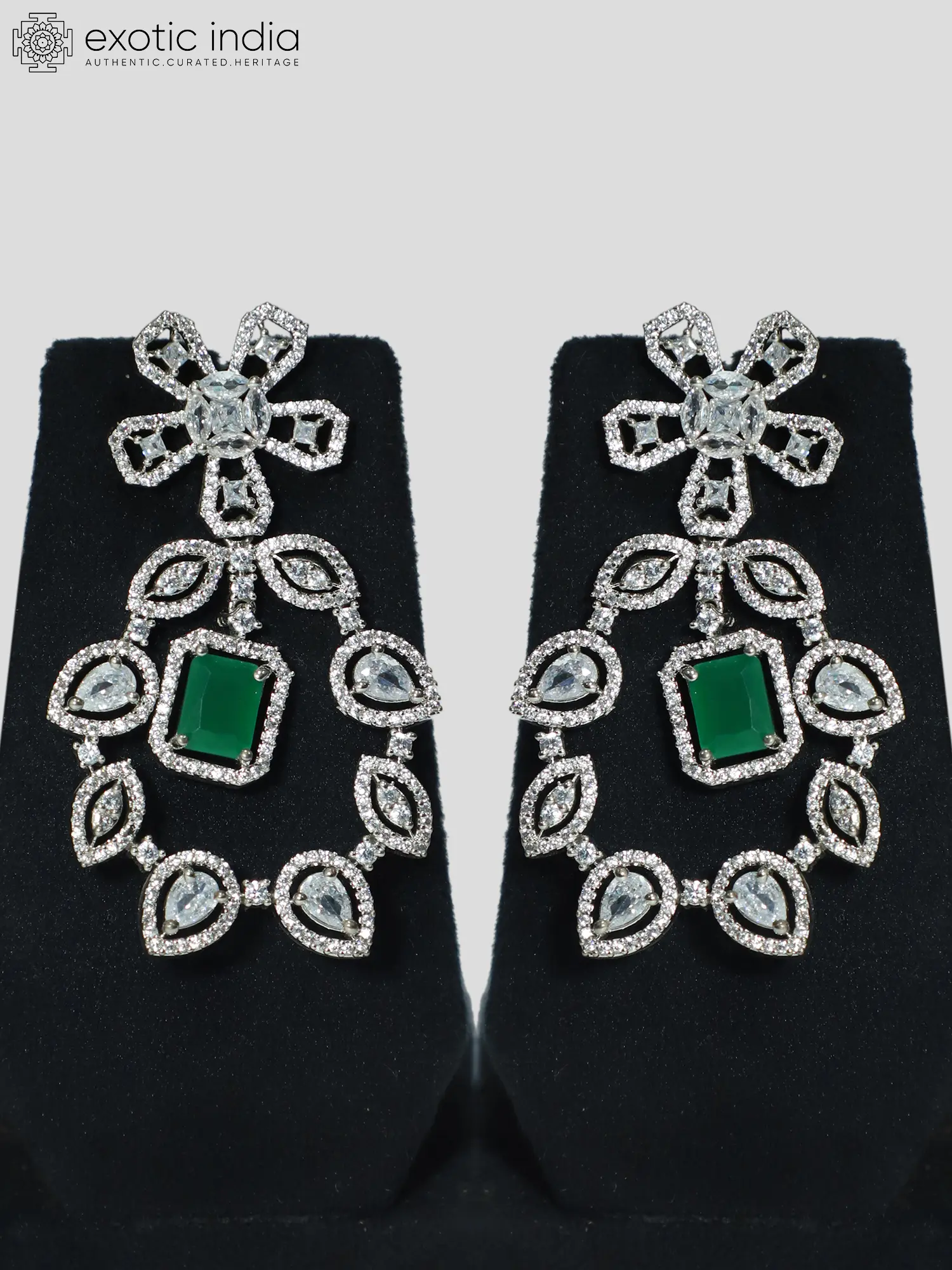 The necklace and earrings are constructed with meticulous attention to detail. Each American Diamond is carefully set to maximize its brilliance and sparkle. The three-layered design of the necklace allows for dynamic movement and catches the light from every angle, ensuring you radiate elegance with every turn. The complementary earrings echo the floral design of the necklace, creating a harmonious and cohesive look. The secure and comfortable clasps ensure that the jewelry sits perfectly and stays in place, allowing you to wear it with confidence.
