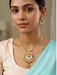Brass Long Pendant Necklace Set In Premium Quality Kundan With Beads Earrings