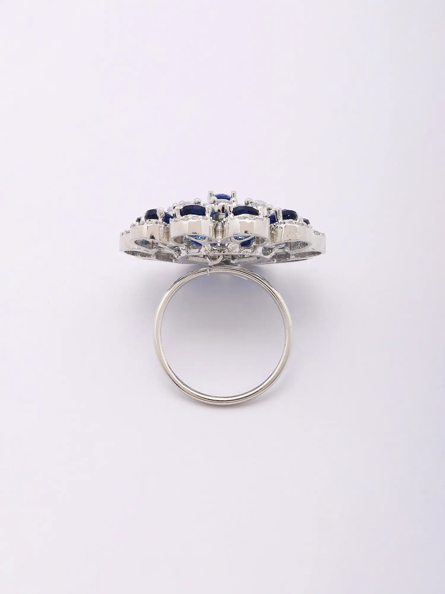 Multi Floral Cluster Adjustable American-Diamond Cocktail Ring