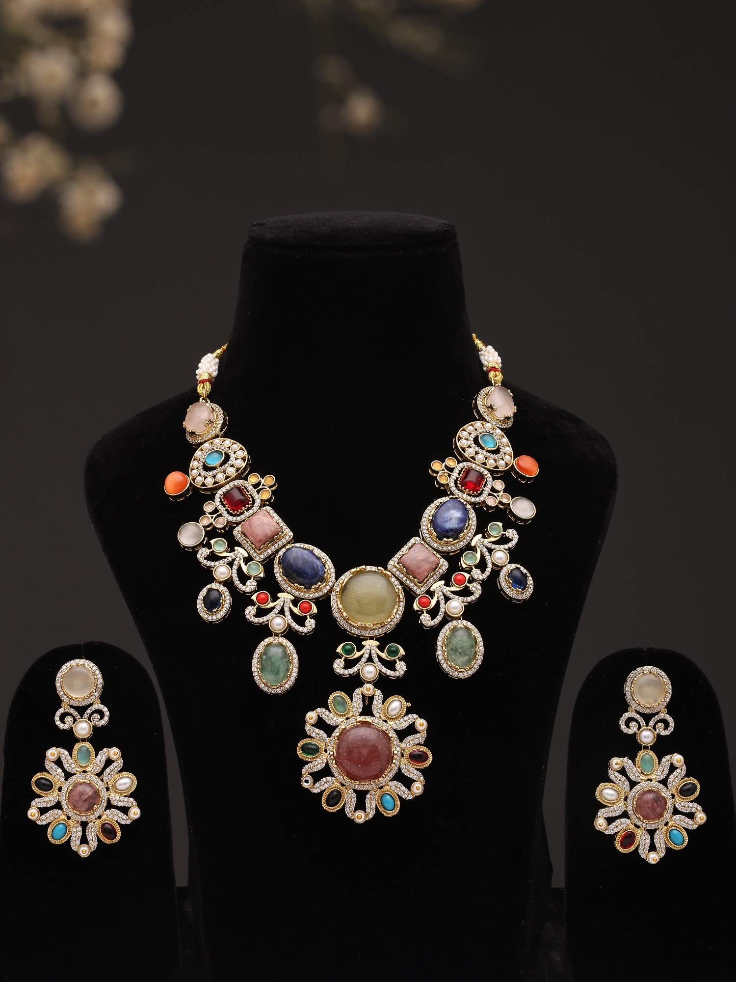 Multicolor Floral Design Necklace Set With Earrings | Indian Fashion Jewelry