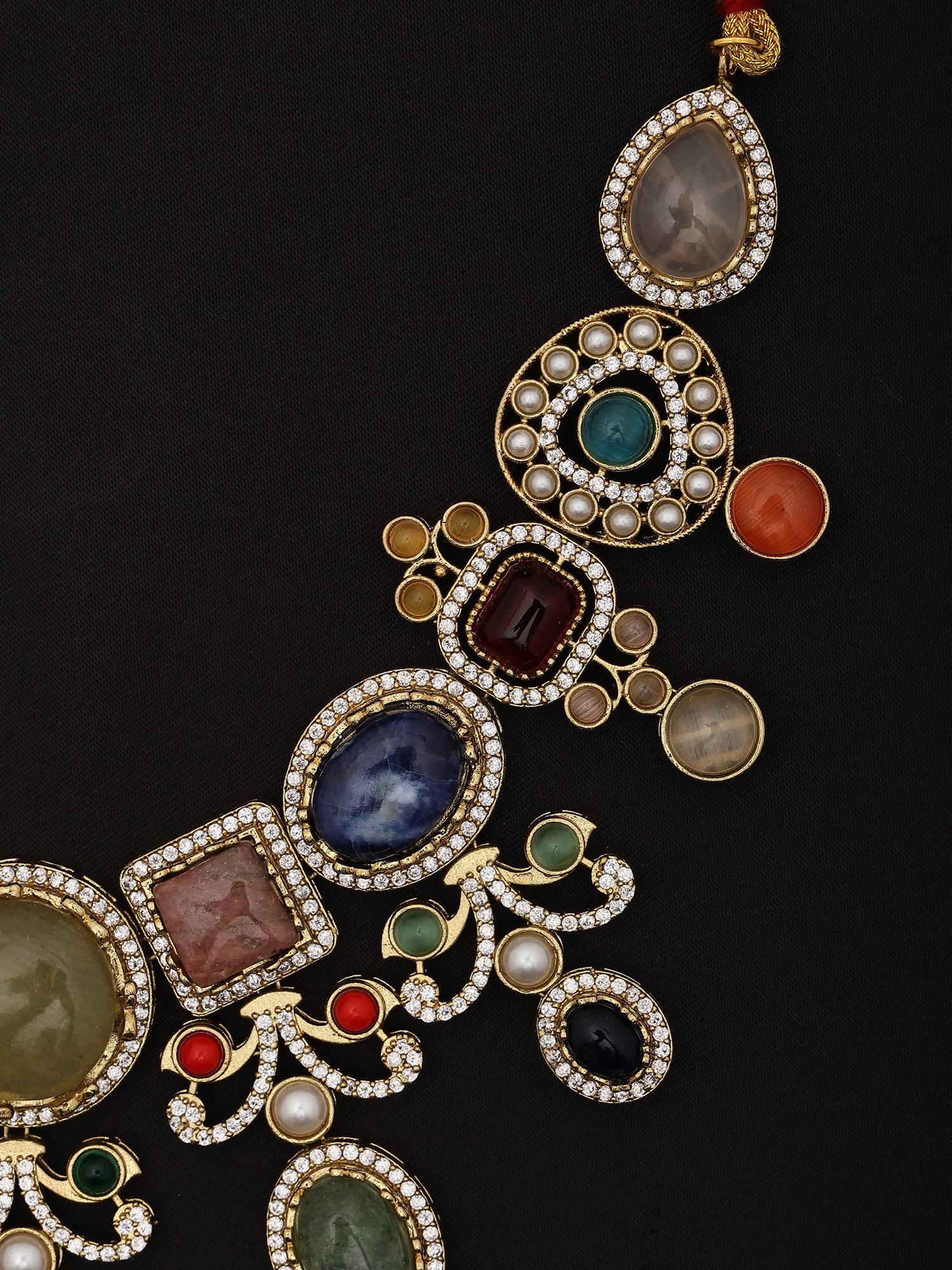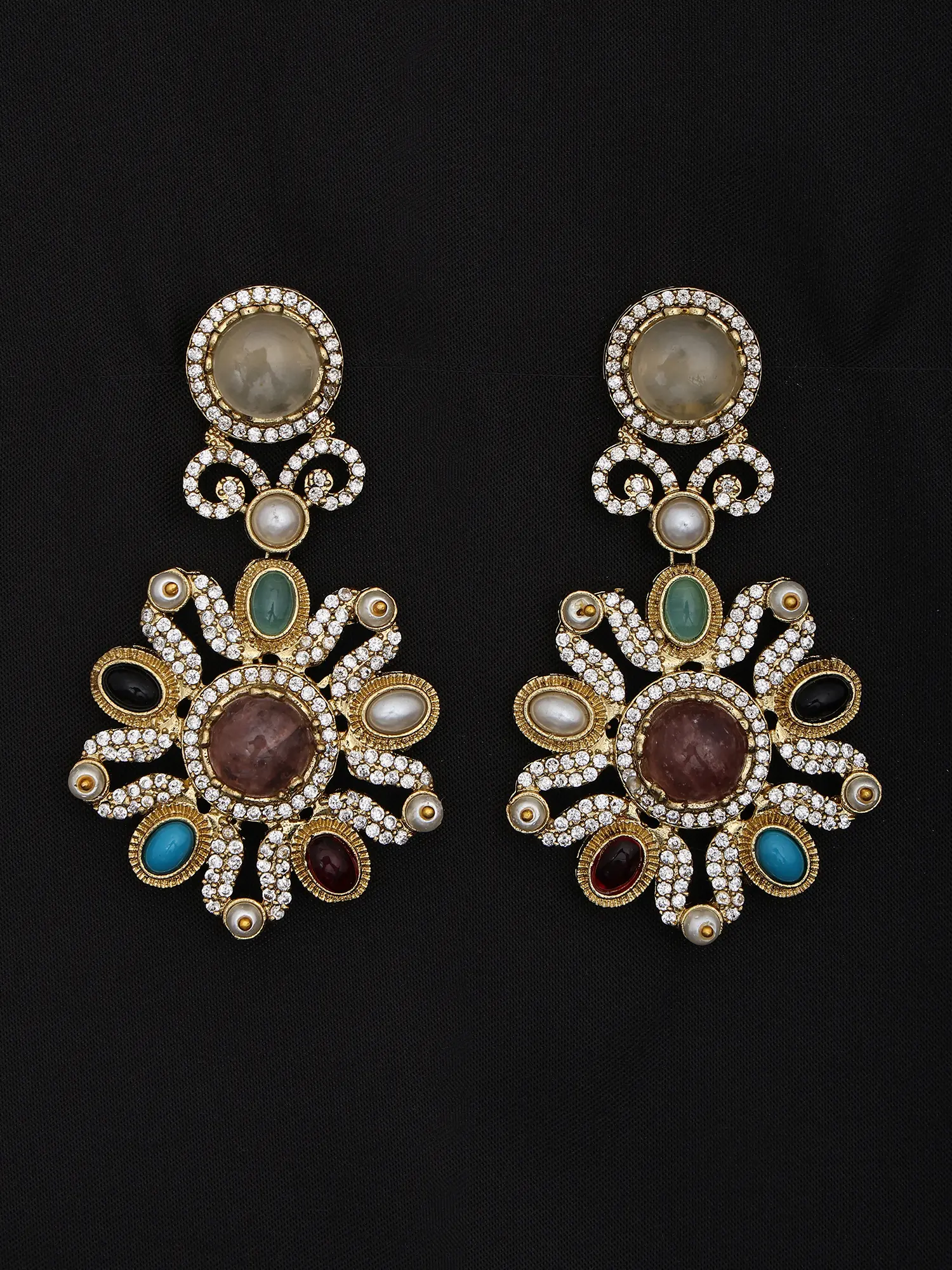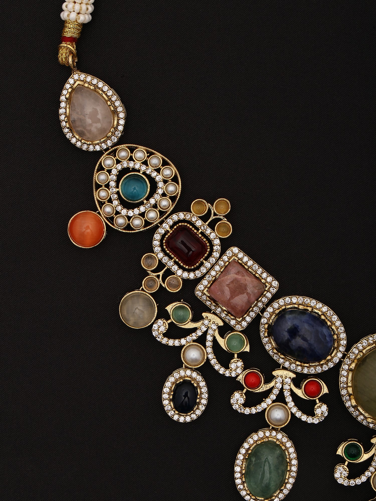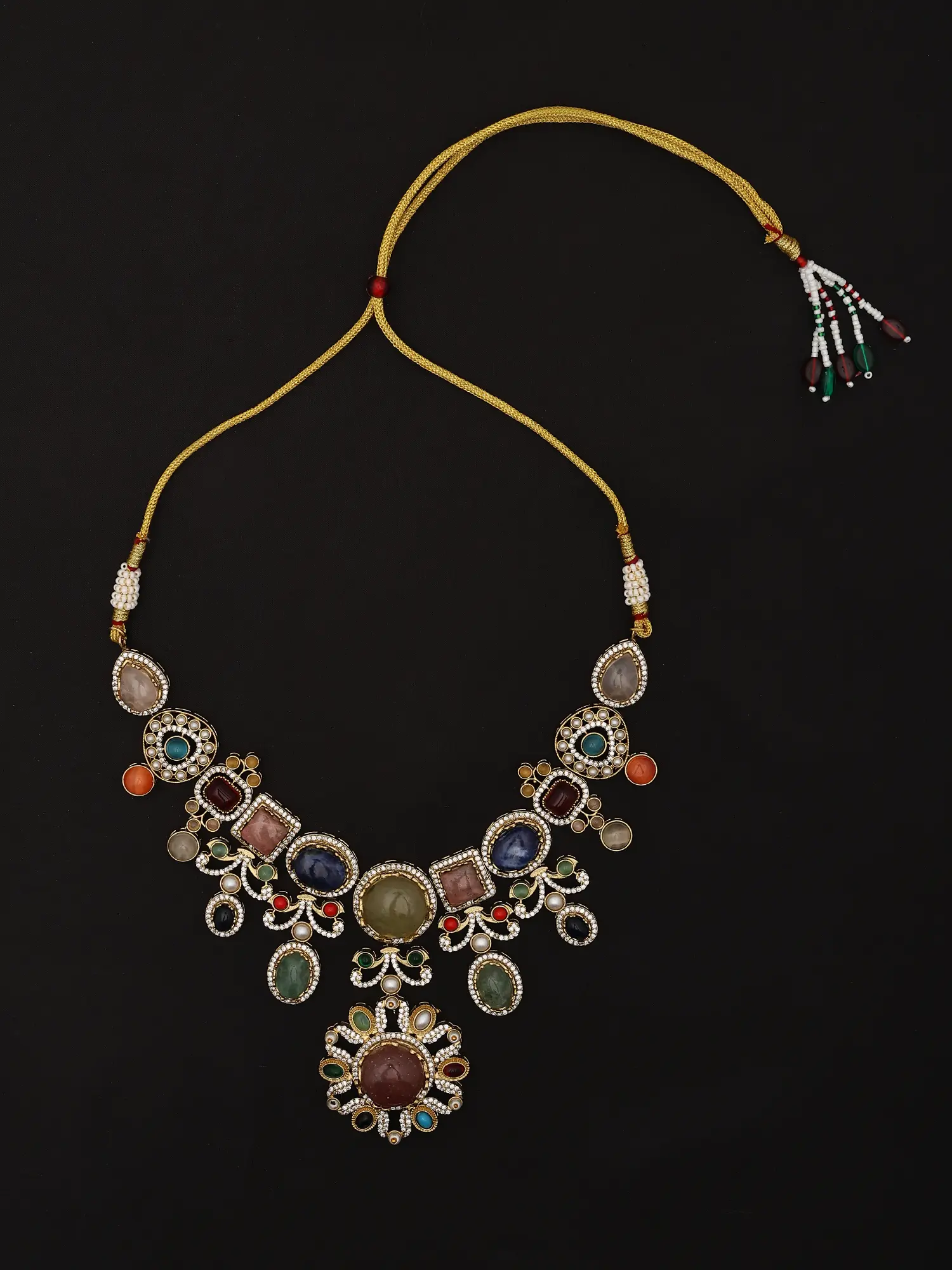 Multicolor Stone Studded Necklace Set With Designer Earrings