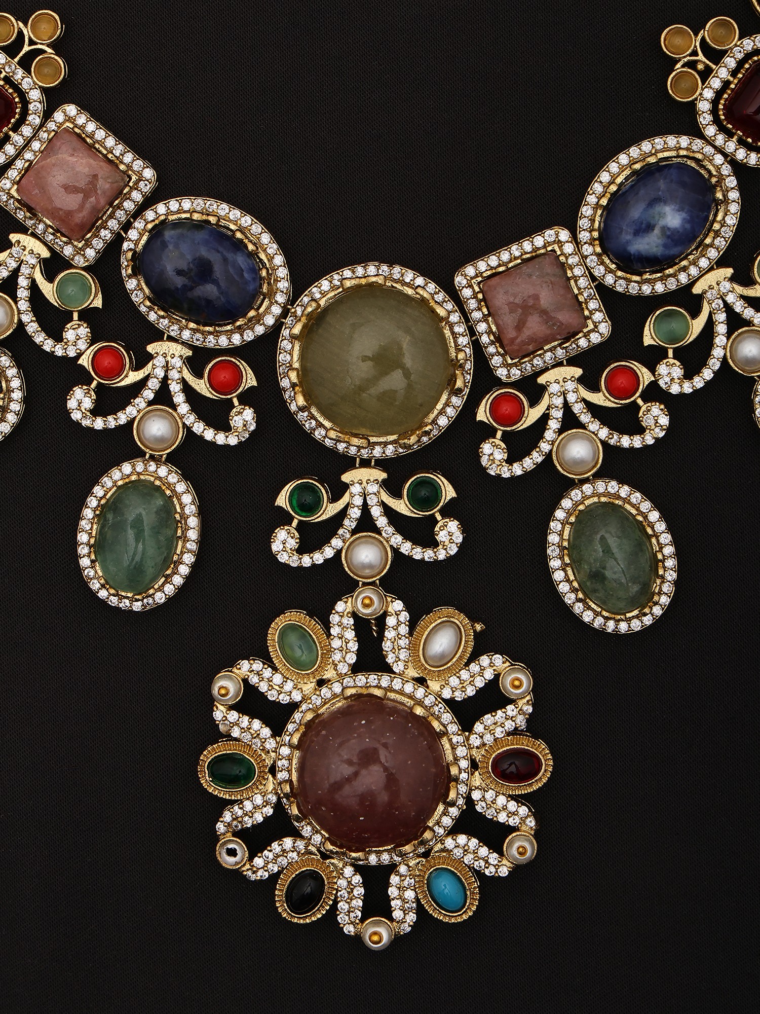 Stunning Stone Studded Embellished American Diamond Necklace Set With Earrings