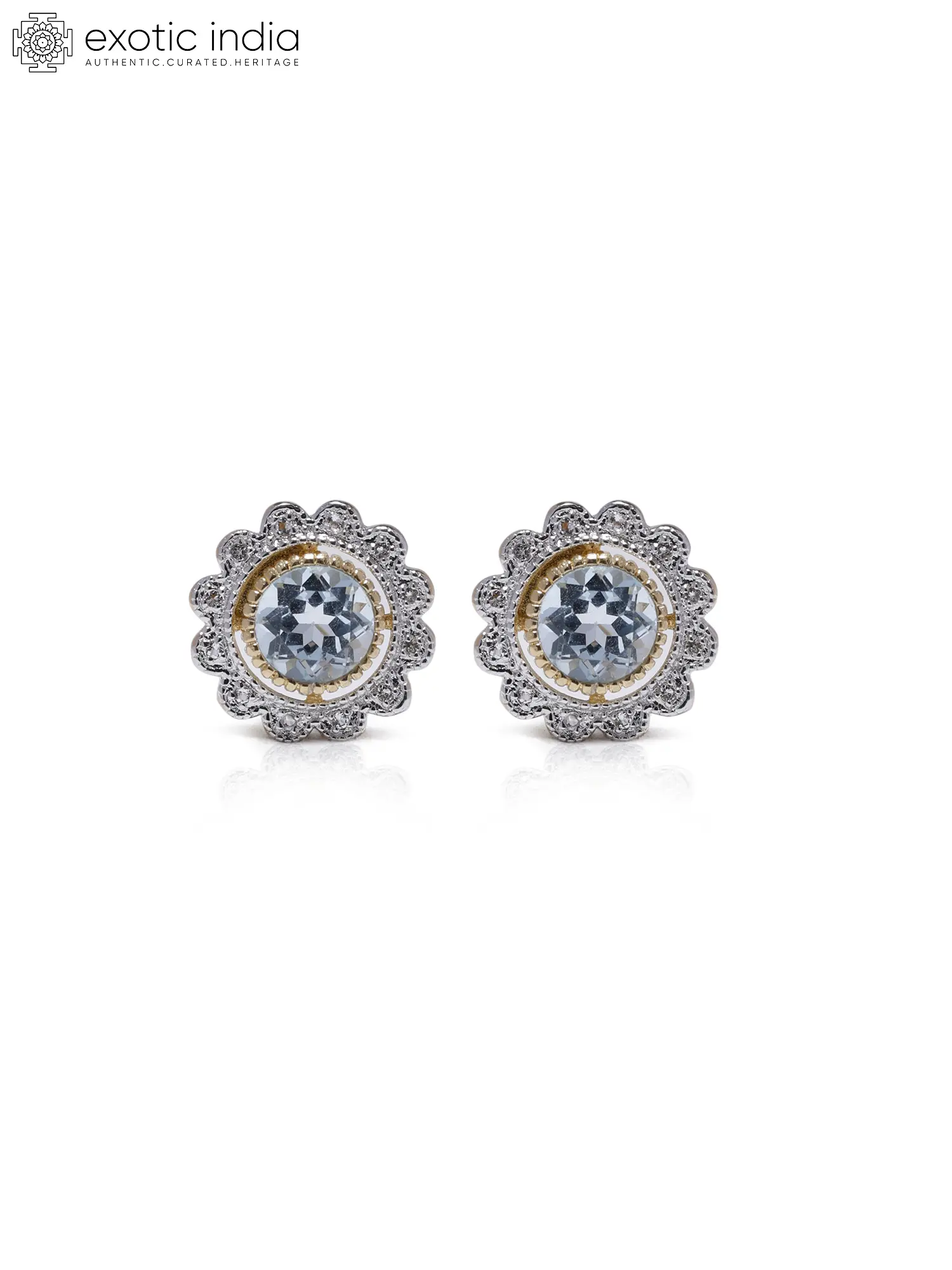 Blue Topaz is believed to bring peace, communication, and creativity. Express your inner artist with these sterling silver studs, with faceted blue topaz at their heart- a hint of glamor for your formal and casual attires.