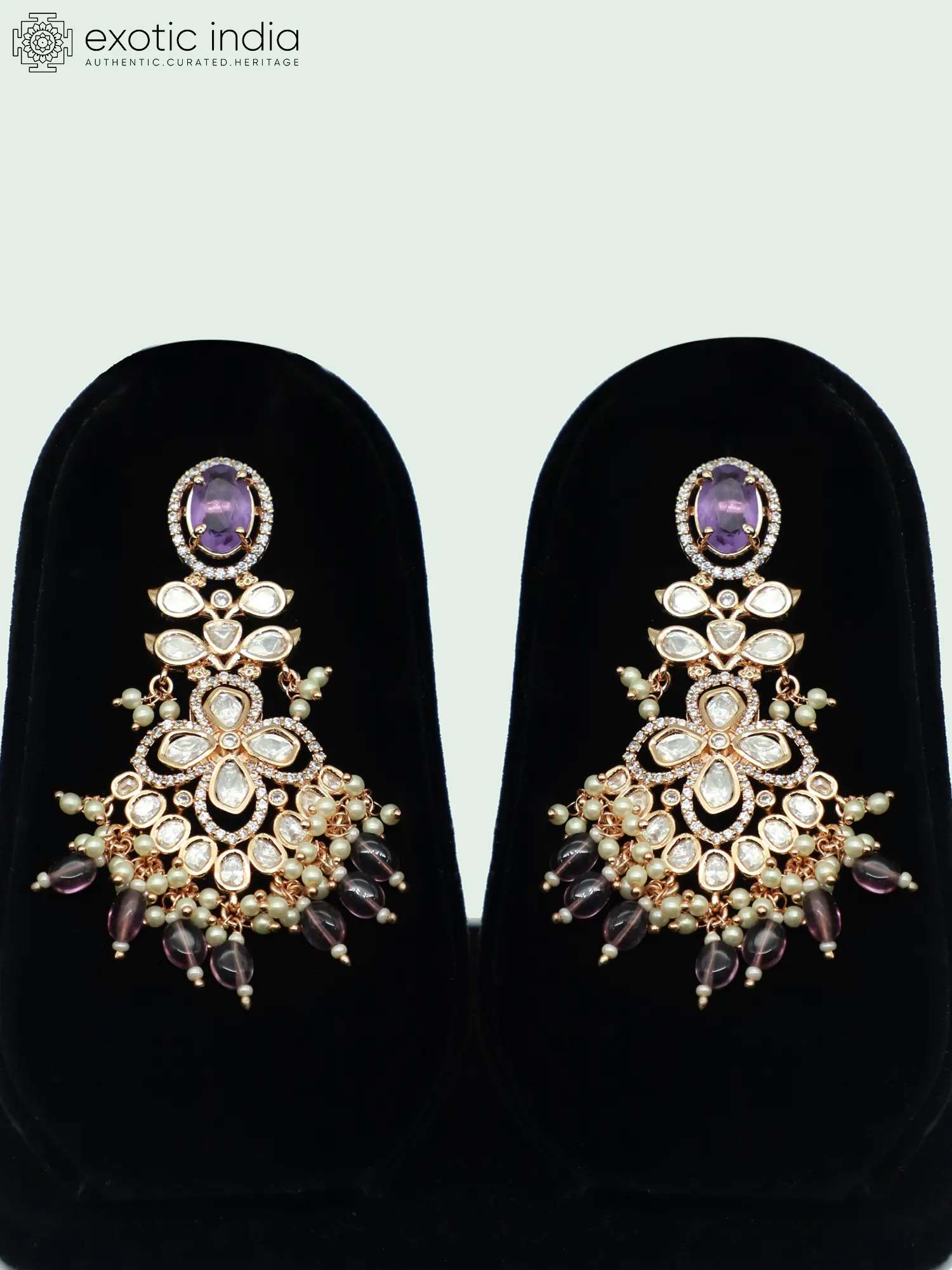 Moissanite Kundan Embellished Necklace & Earring Set with Teardrop Pendant