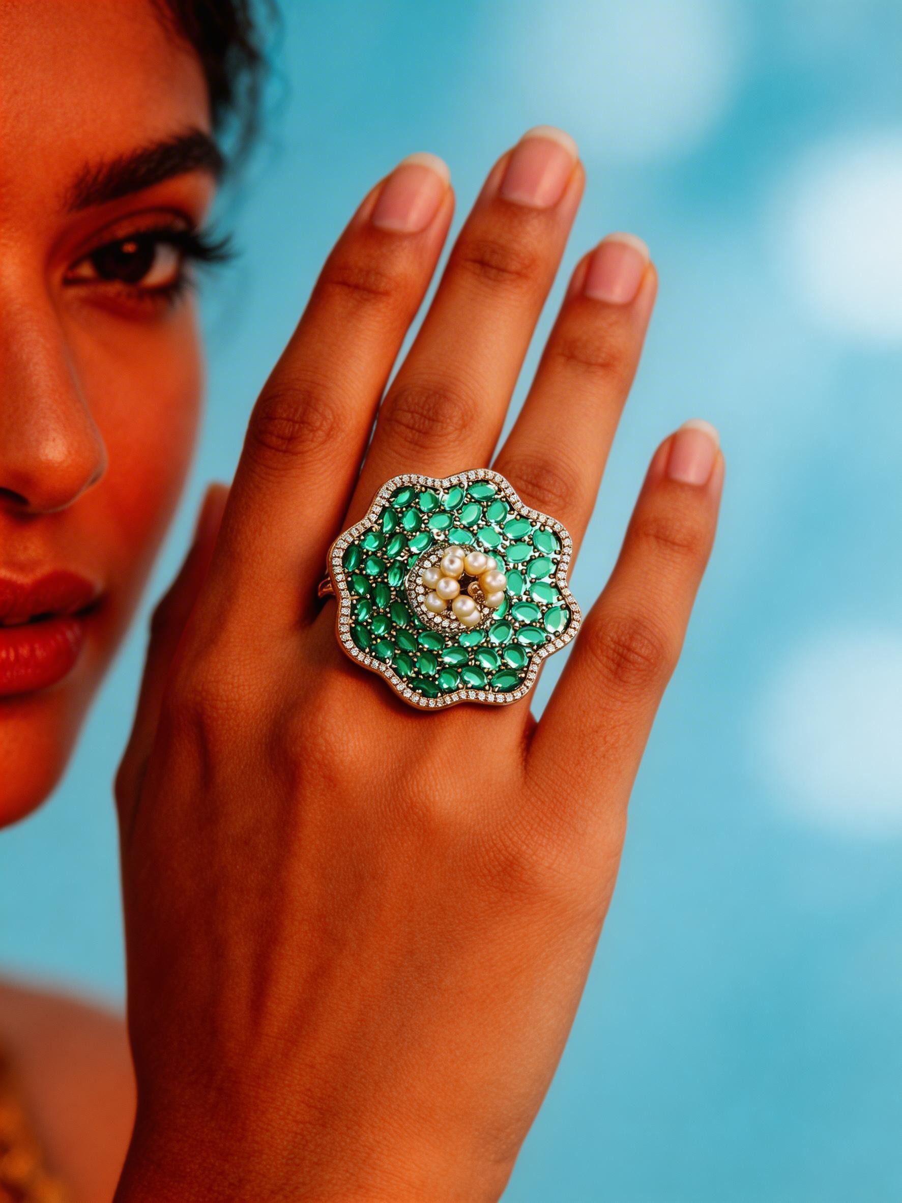 Concentric Floral Cluster American-Diamond Stone Studded Adjustable Ring