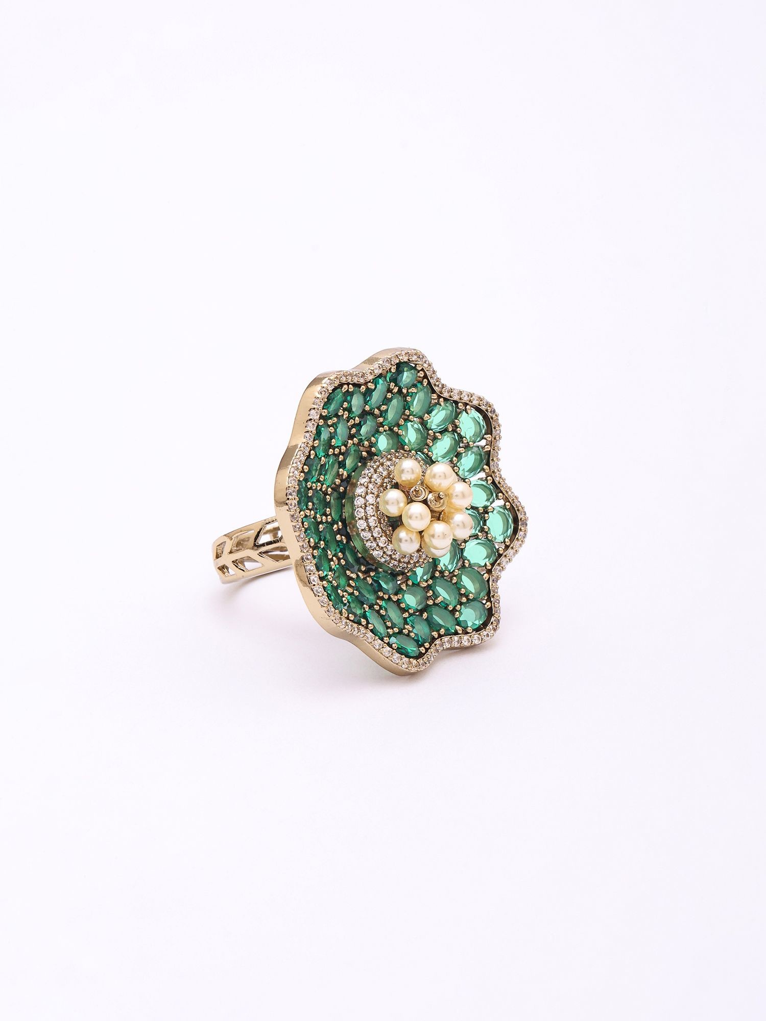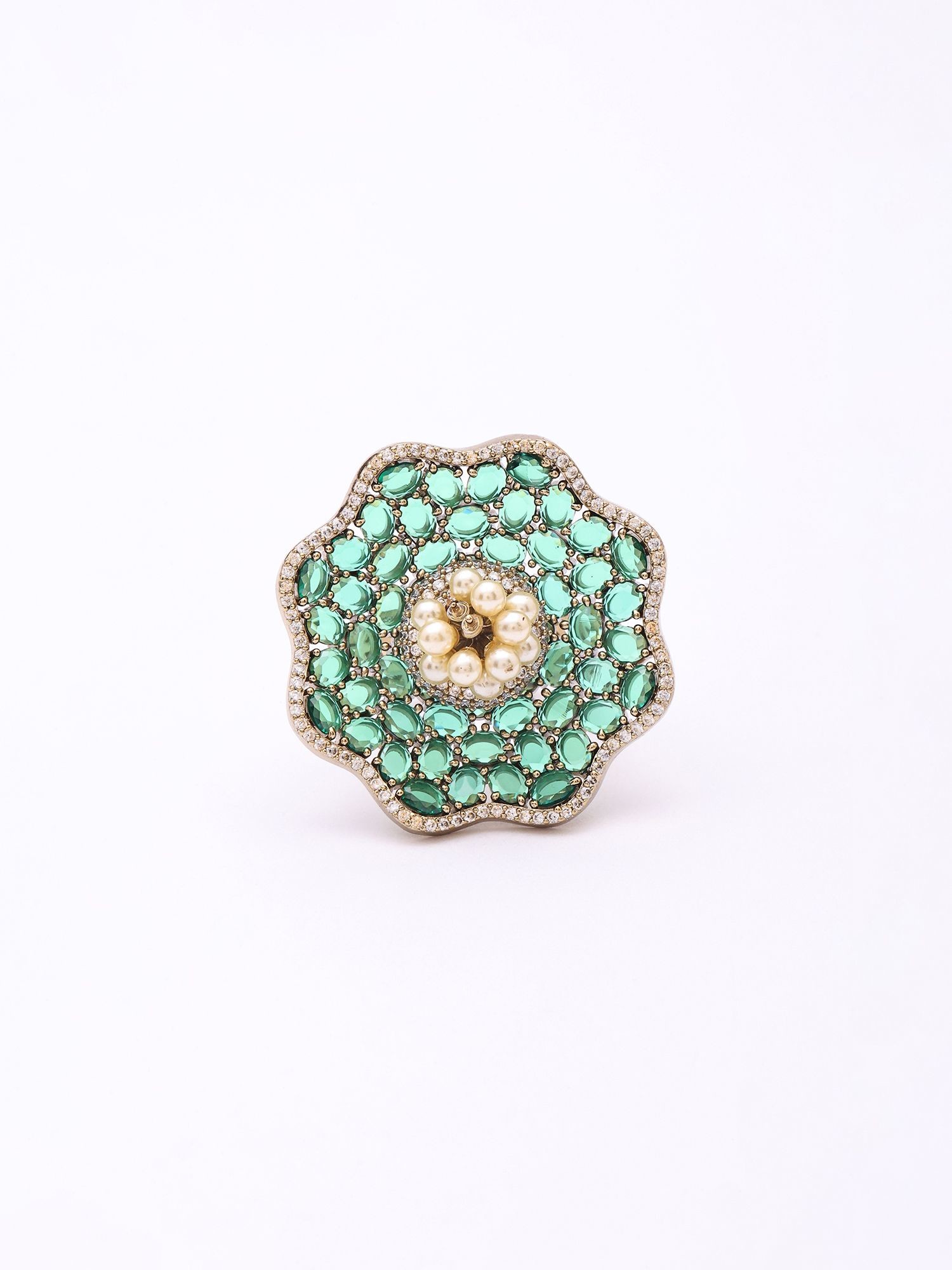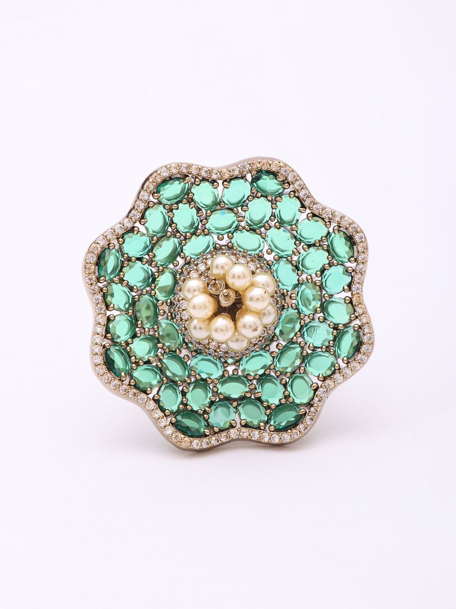 Floral Mandala American Diamond Stone Studded Adjustable Ring