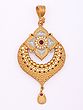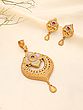 Designer Oval Shaped Stone Studded Pendant Set With Earrings
