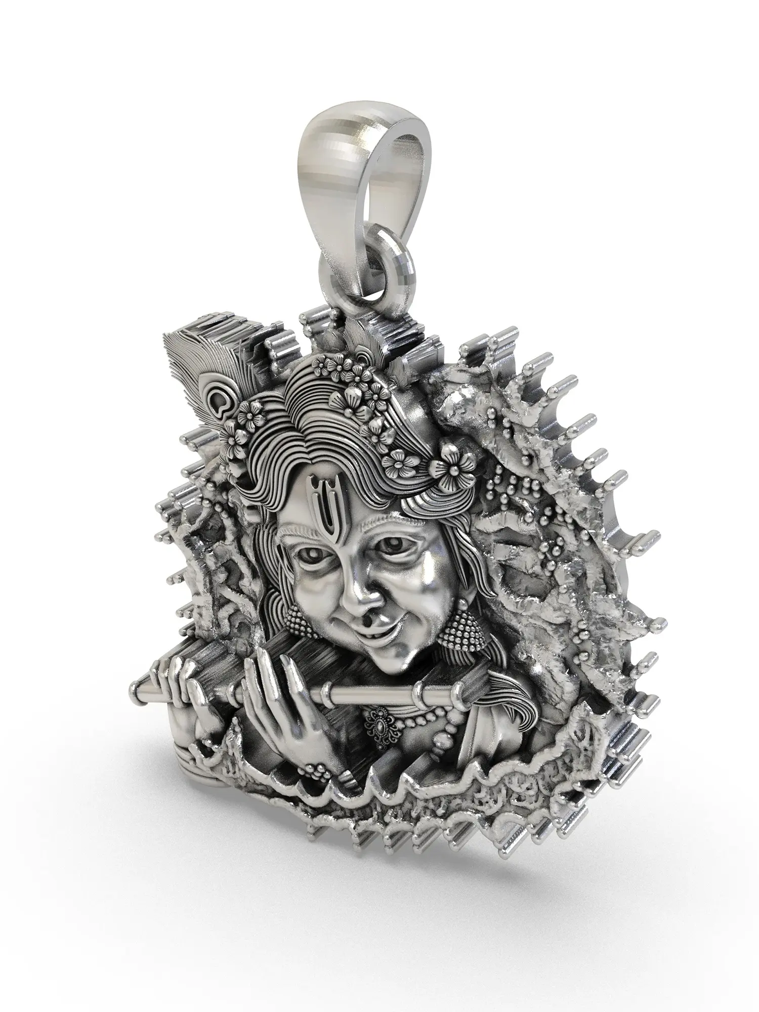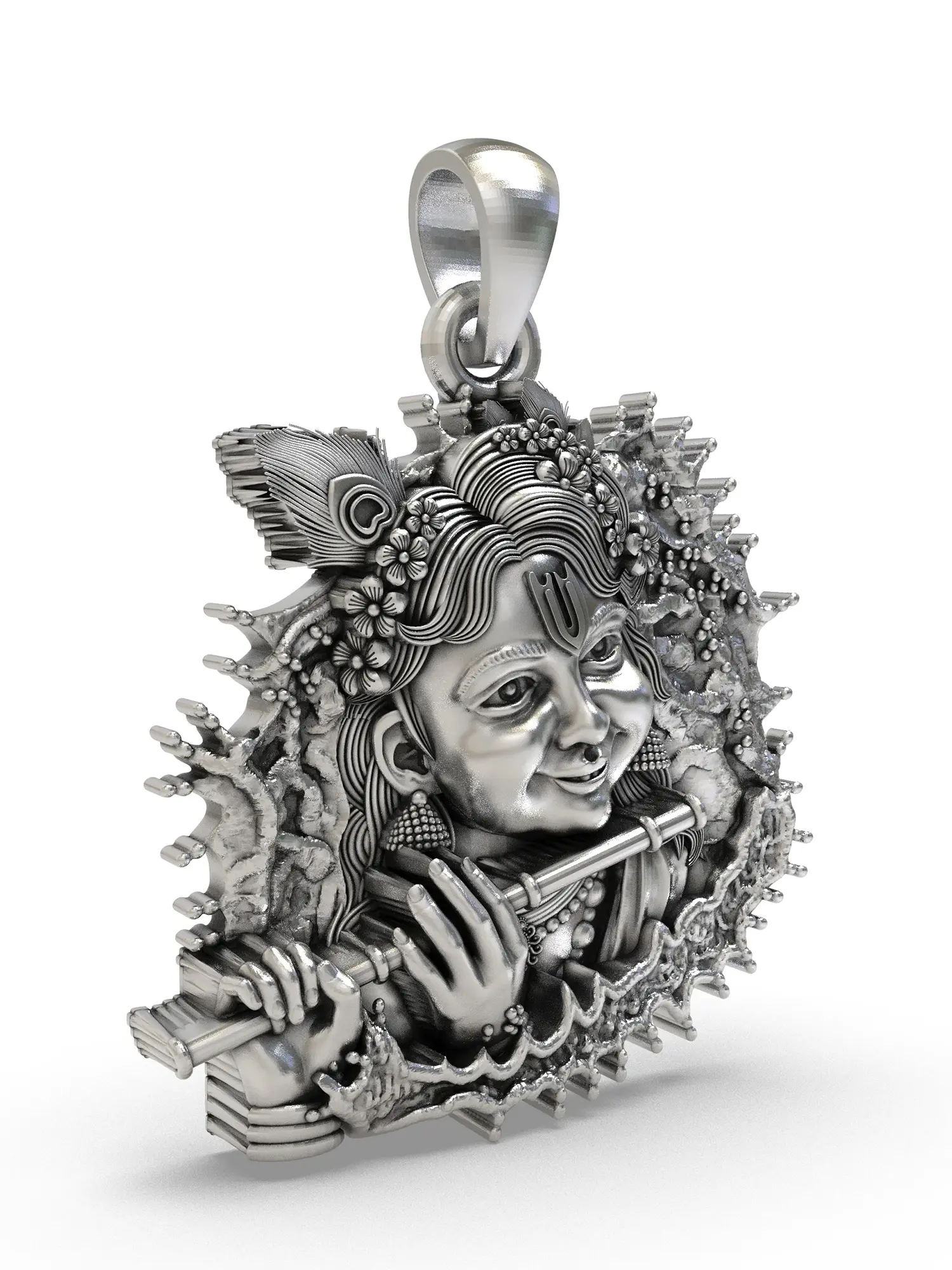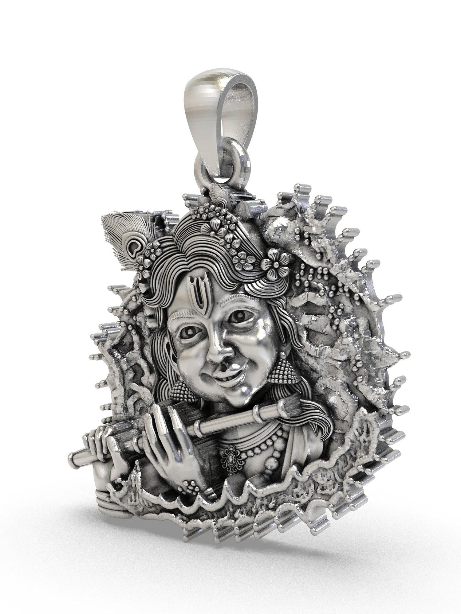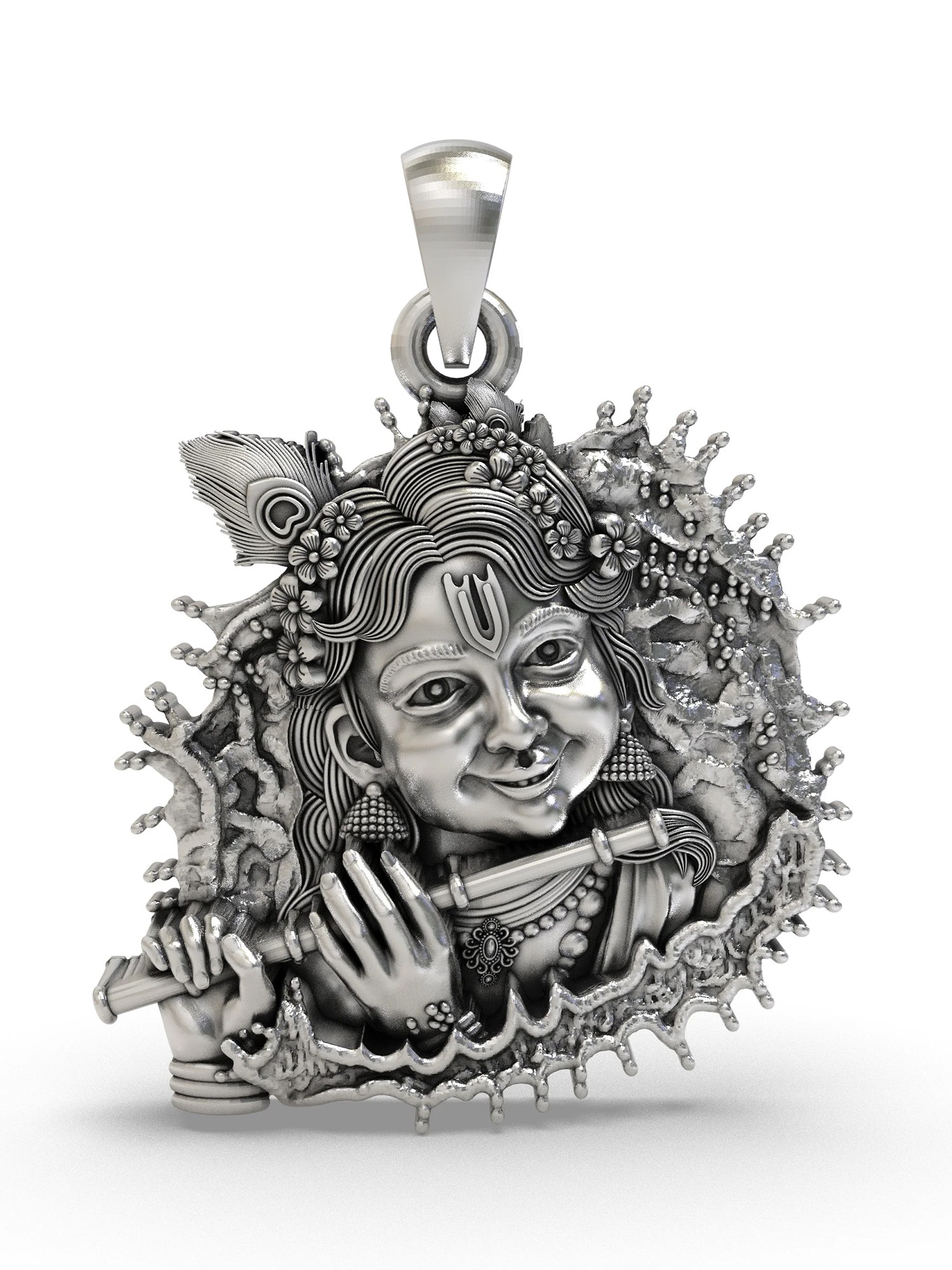 Sterling Silver Fluting Lord Krishna Pendant