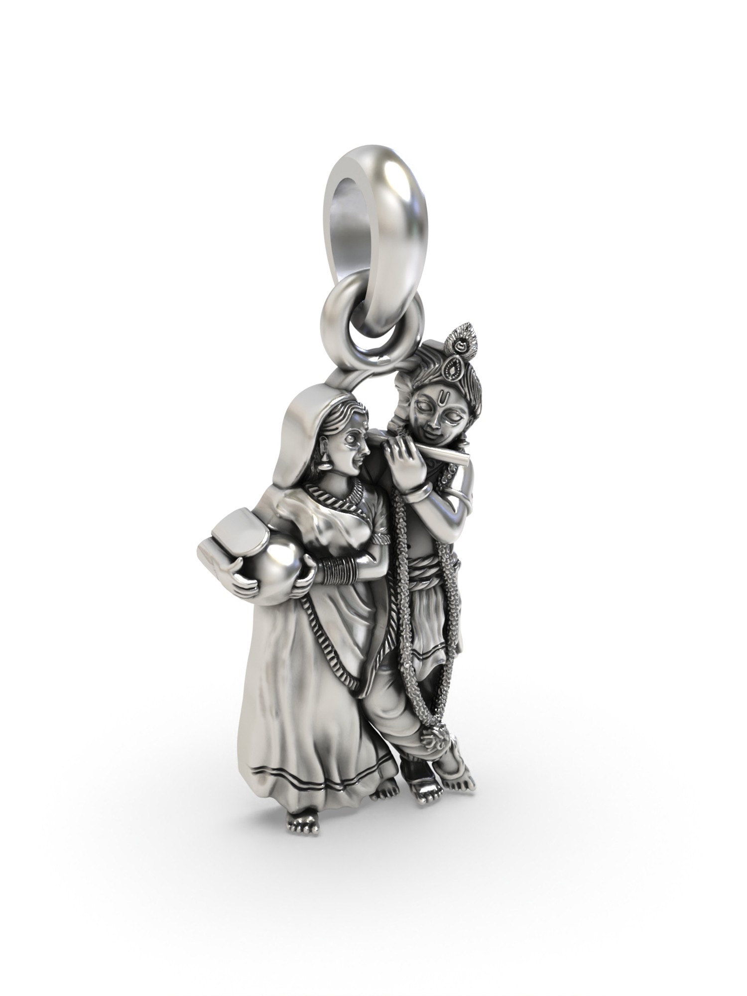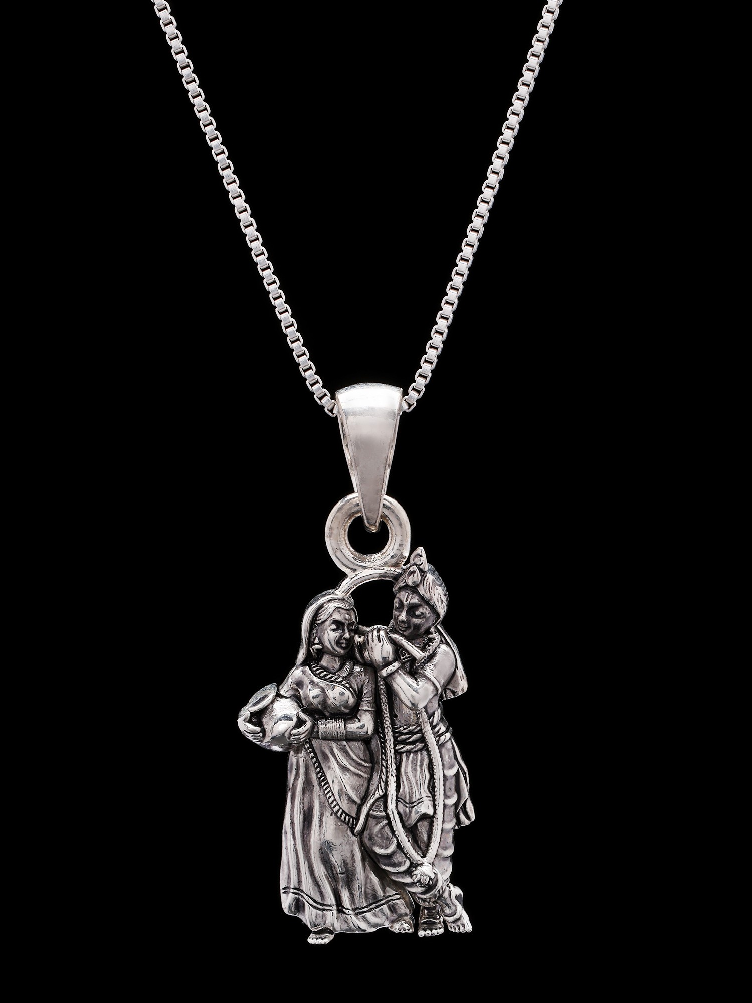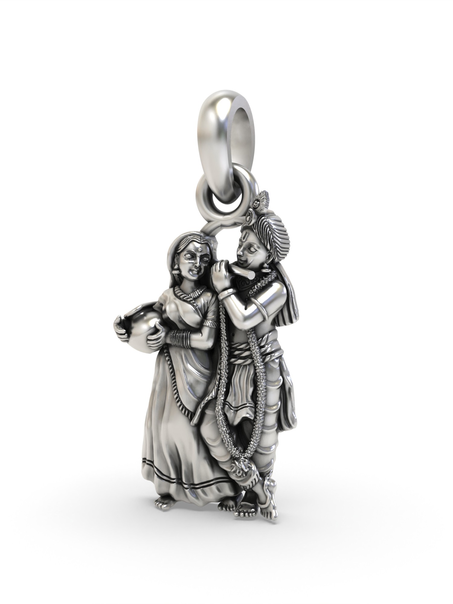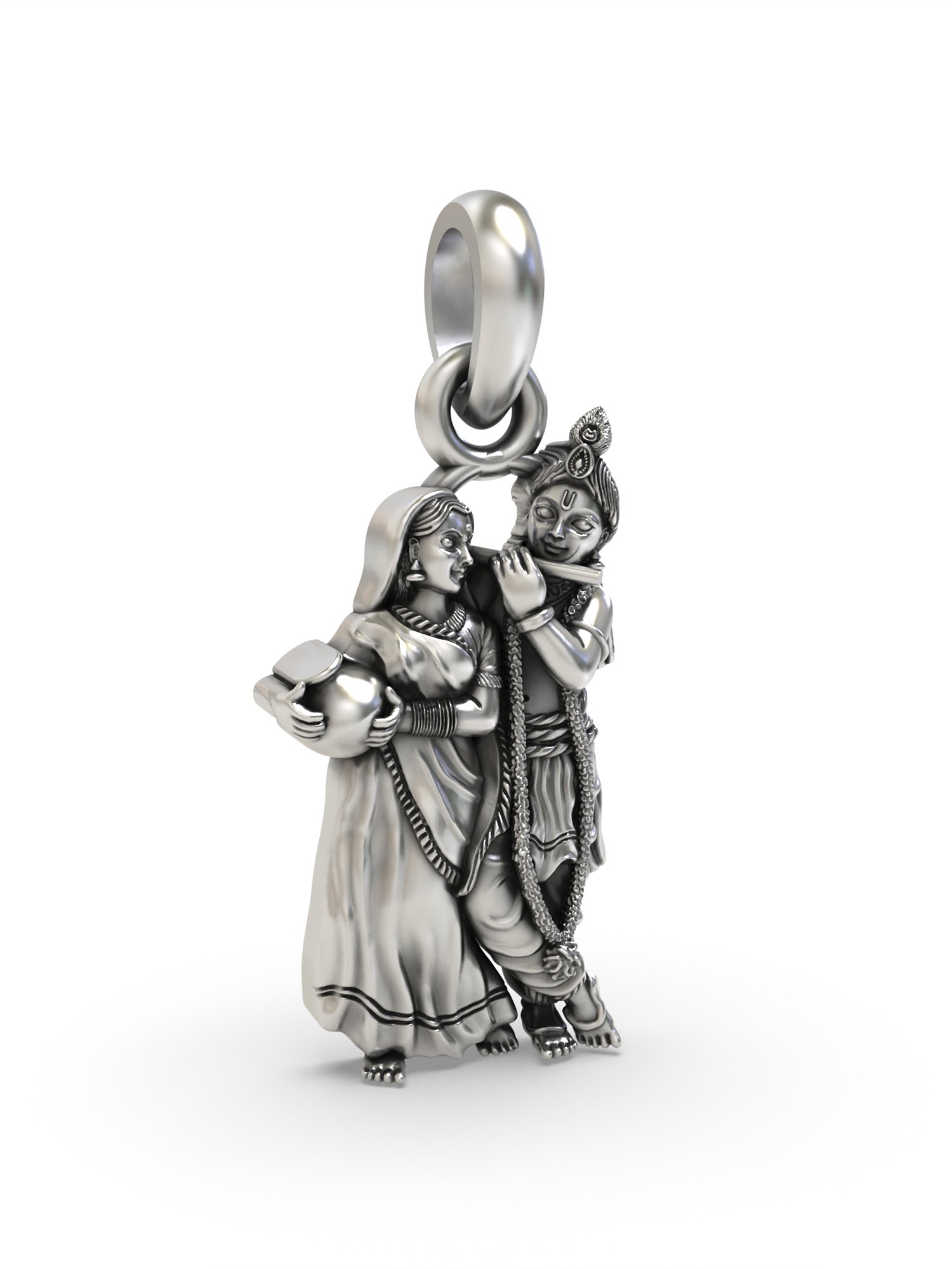 Sterling Silver Murli Pendant with Round Shape Multi Gemstone